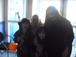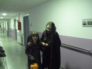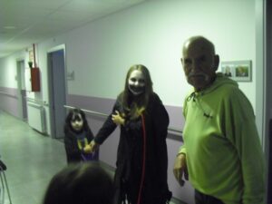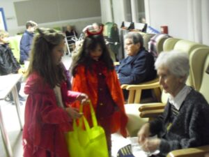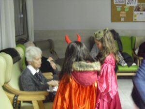 Interrumpo esta noche del jueves para deciros que tenemos lotería de la residencia, el número 2956!! adquirido en la Administración de lotería de Daroca, donde Soraya nos ha preparado todo…gracias por tu eficiencia y simpatía. Pero, hemos firmado un contrato los abuelos y yo en caso de que nos toque la lotería: ellos no abandonarán la residencia y yo tampoco me voy del barco!!!!!!!!! yo lo tengo claro: mejoraría las instalaciones para que estuviesen mejor…. Lo primero ,agradecer a los padres y niños que vinieron disfrazados, esos minutos que regalaron a los abuelos de la residencia. Disfrutaron de su compañía mientras les daban chucherías. Aunque les dí chucherías suficientes para que se pudiesen comer alguna…hubo algún abuelico que se las comía con unas ganas que tuve que volver a darles pues no les iban a llegar… Voy a tener que poner un día de chuches en la residencia, quizás una tarde de las de cine que tienen película!!!!!. También hay que decir que alguna ni las tocó para que les llegasen todas a los niños. También agradecer a Irina que se curró las calabazas para la ambientación de la entrada…estuvo varios días para hacerlas todas. Laura realizó un taller de fastasmitas muy entretenido!!! Además he comprado una cesta para sortearla y dar un poquito de emoción a la Navidad que llega ya!!!!!