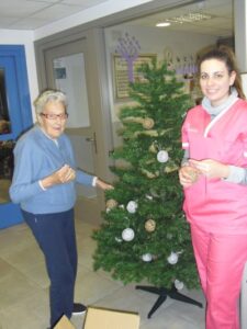 Este año se han encargado Bea y Laura de poner los adornos del árbol de Navidad. También han montado el Belén que Pablo, uno de nuestros abuelitos, cedió a la residencia en las Navidades del 2015. Ellas  consiguen sacar unas sonrisas a nuestros chicos y se respira el ambiente Navideño. Este año nos fuimos a cenar a Calamocha al restaurante de Carlos Arguiñano y después a bailar un poco. No pudieron venir todas las trabajadoras/-es pues faltaron Mª Jesús, Fatima, Zahra, Laura, Inma, Mª Carmen y Antonio. Es una forma de conocernos un poco más fuera del trabajo y darnos cuenta de que somos todas mujeres estupendas!!!!! Aprovecho y pongo la foto del uniforme de Pilar que faltaba el día de las fotos de los uniformes. Feliz Navidad a todos y todas!!!!!!!!!!!!