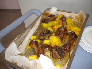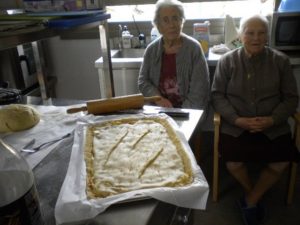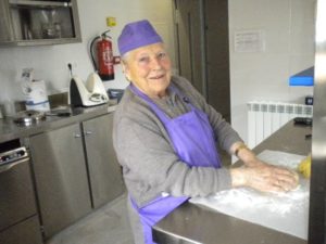 Los domingos que libra la cocinera me toca cocinar a mí y aprovecho para que me ayuden los residentes. Hemos hecho una empanada muy natural y saludable: Nicolasa ha partido el pimiento y la cebolla, ha amasado la empanada, Pablo sólo miraba… Comimos ternasco asado para chuparnos los dedos, después una buena sobremesa con café… Gracias a la maravilla de horno que tenemos cocinamos casi sin aceite. Todas las tardes las auxiliares tienen asignada una hora, de 17:30 a 18:30 para jugar con ellos: bingo, cartas, puzzles…