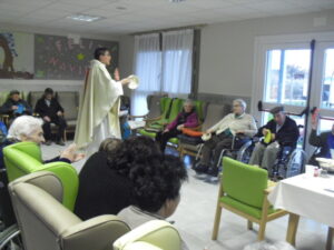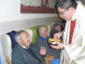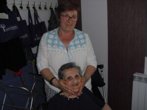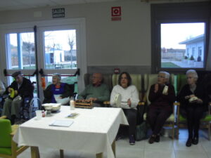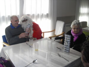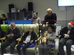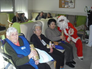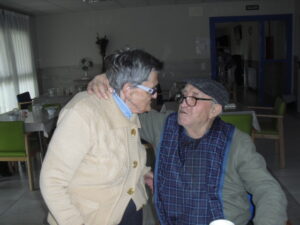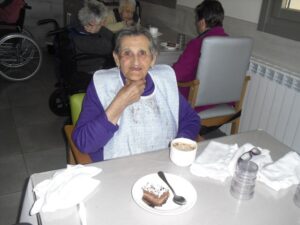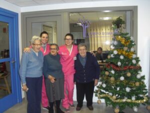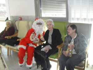 Ayer fue un día difícil pues tuve que despedirme de Rosalía, usuaria de nuestro Centro de Día hace un año y un mes, que estaba esperando para entrar en la residencia y , por fín, ya era la siguiente para entrar pero se puso enferma repentinamente y falleció el sábado 29 de diciembre. Resaltar de ella su gran sonrisa, su buena disposición para todo, su generosidad, su buen corazón y su conformismo para todo. No daba ningún problema y era todo ternura. La podías poner con todo el mundo a comer en el comedor que todo le iba bien…Muchas veces entraba en mi despacho y se colocaba al lado de mi mesa y cuando le preguntaba: qué necesitas Rosalía? Te puedo ayudar? Te ocurre algo? la mayoría de las veces no se acordaba de lo que me quería decir o había perdido su bastón o me preguntaba si tenía que volver a casa. Muchas veces perdía su bastón, le ayudaba a buscarlo y se ponía contentísima cuando lo encontraba. Lo que más me gustaba de ella era su sonrisa. Me encantaba,cuando entraba a la Sala de Día o al comedor o cuando se estaba celebrando la misa los jueves, sentarme enfrente de ella, buscarle la mirada y sonreírla, y ella siempre me devolvía su maravillosa sonrisa, para mí un gran regalo. Hubo un tiempo que me preguntaba: por qué no me dejas quedarme a dormir aquí? y a mí se me rompía el corazón pues le respondía: Rosalía, cariño es que no tenemos plaza pero estamos encantadas de tenerte con nosotras y enseguida te podrás quedar a dormir. Te queremos mucho y estamos deseando que te quedes aquí… Agradezco enormemente a sus hijos, en especial a Ismael y Sole por elegir nuestra residencia para sus padres y esperar pacientemente a una plaza para su madre durante ese año largo, cada día volvía a casa de su hijo con nuestro transporte del centro de día en espera de esa plaza. Un beso y abrazo enorme de todo el equipo para su familia …y Rosalía, sabemos que vas a estar junto a ellos, pero algún ratillo vente por la residencia y entra a mi despacho a verme!!! Espero os gusten estas foticos de vuestra madre. El resto de fotos son de la visita de Papa Noel y de la misa que celebró nuestro cura Federico en Nochebuena con todos nuestros abuelos, trajo panderetas, cantamos villancicos y nos hicimos fotos con Jesús…un día muy enriquecedor para todos. La próxima semana pondremos fotos de la visita de los jóvenes de la Comunidad de Jerusalén procedentes de Madrid, Zaragoza y Cataluña, que compartieron con los abuelos una hora de villancicos y alegría. Adiós Rosalía!!!!!!!!!!!!!!!!