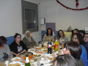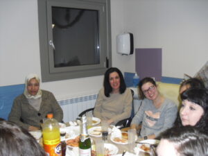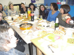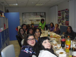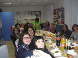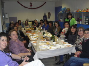 Este año para la cena de empresa decidimos hacerlo de otra manera: haríamos una cena  para el verano y estas Navidades, como no todas podían venir a la cena del restaurante, haríamos una cena en la residencia. Se trataba de pasar un rato juntas y desearnos Feliz Navidad, cada una trajo algo para compartir con las demás: comida o un postre. Casi estuvimos todas!!! y pudimos probar comida marroquí o platos con los  que cada una se sentía identificada. Todas estábamos representadas en la mesa y nos gustó mucho la experiencia. Los platos de Navidad han tenido un poco de todo, platos solicitados por ellos: entremeses, salmón ahumado, langostinos, ternasco asado, merluza en salsa, bacalao al horno, pollo relleno con salsa y patatas, chuletas ternasco y patatas fritas (el plato más votado) y Roscón de Reyes. Despedimos a Miguel, que nos dejó esta semana, ha descansado… Vivía en su mundo, tuvo distintas etapas en las que dentro de su deterioro cognitivo se daba cuenta que vino a su querido pueblo Romanos, algunas veces te conocía, otras te confundía, no paraba ni un segundo quieto pues su cabecica no le dejaba parar…pero era muy tierno y su sonrisa era increíble. Miguel, cuando me sonreías me enternecías el corazón, te hubiese dado lo que hubieses pedido…me encantaba verte sentado en mi despacho. Lo que más me llenó es que, dentro de tus locuras, mi despacho para tí era un refugio, un lugar donde te encontrabas bien y siempre entrabas cuando me veías ahí y me contabas mil y una batallitas…ya sabes que te seguiré esperando, algún día dejas a tu familia, a la que querías mucho y ellos a tí igualmente, y vienes a vernos a la residencia. En tu memoria y la de otros pacientes que hemos tenido con deterioro cognitivo avanzado voy a invertir en una sala sensorial para poder dar un servicio de calidad y poder llegar a vosotros. Os explicaré un día en qué consiste esa sala y los planos de la misma. Dios te tenga en su gloria!!!!!!!! Un fuerte abrazo
