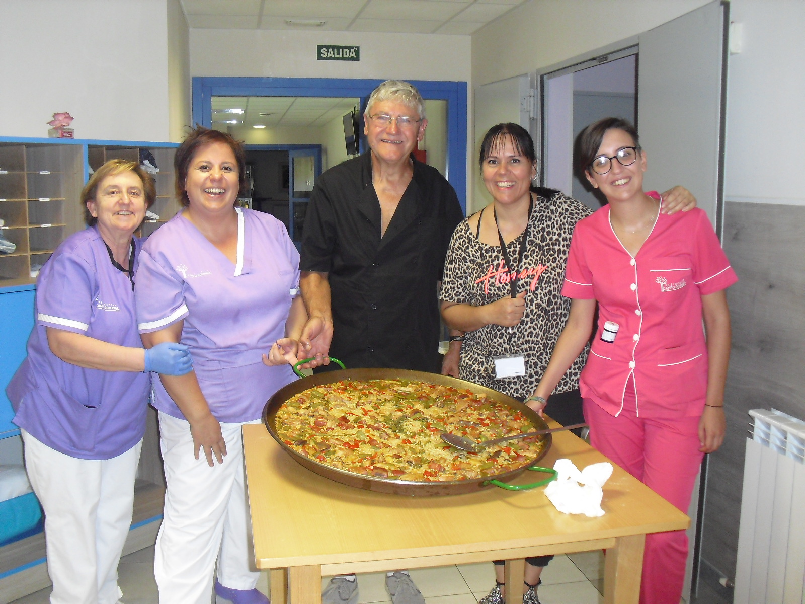 Por poco no publicamos esta semana pues al venir tanta gente al pueblo estos días de verano Movistar no está preparado!!! Agradecer a Fermín, un gran cocinero, su disposición altruista de pasar una mañana en la residencia y elaborar una paella con los abuelos en el jardín. Pudieron ver, en vivo y directo, cómo se hace una paella valenciana de 10!!!. Una gran experiencia para todos ellos, además luego pudieron degustarla en el comedor. Fermín quiso regalarnos un día de convivencia a toda la Residencia. Tenían la oportunidad de comer en el jardín con nosotros, ya que Fermín y algún familiar se quedó a comer en la residencia. Pero los abuelos no se andan con tontadas y les gusta la comodidad del comedor y las sillas!!!!!! son tremendos pero siempre sinceros.
