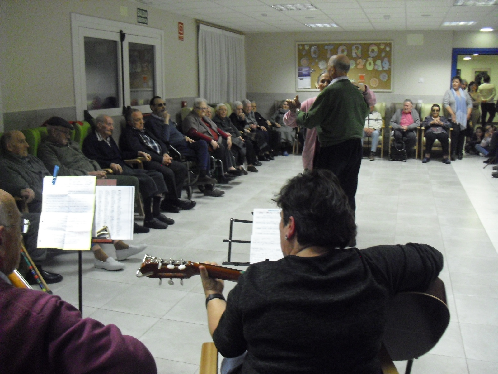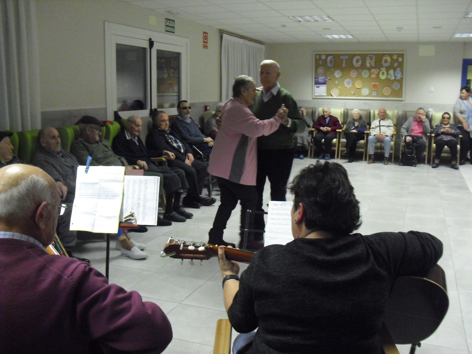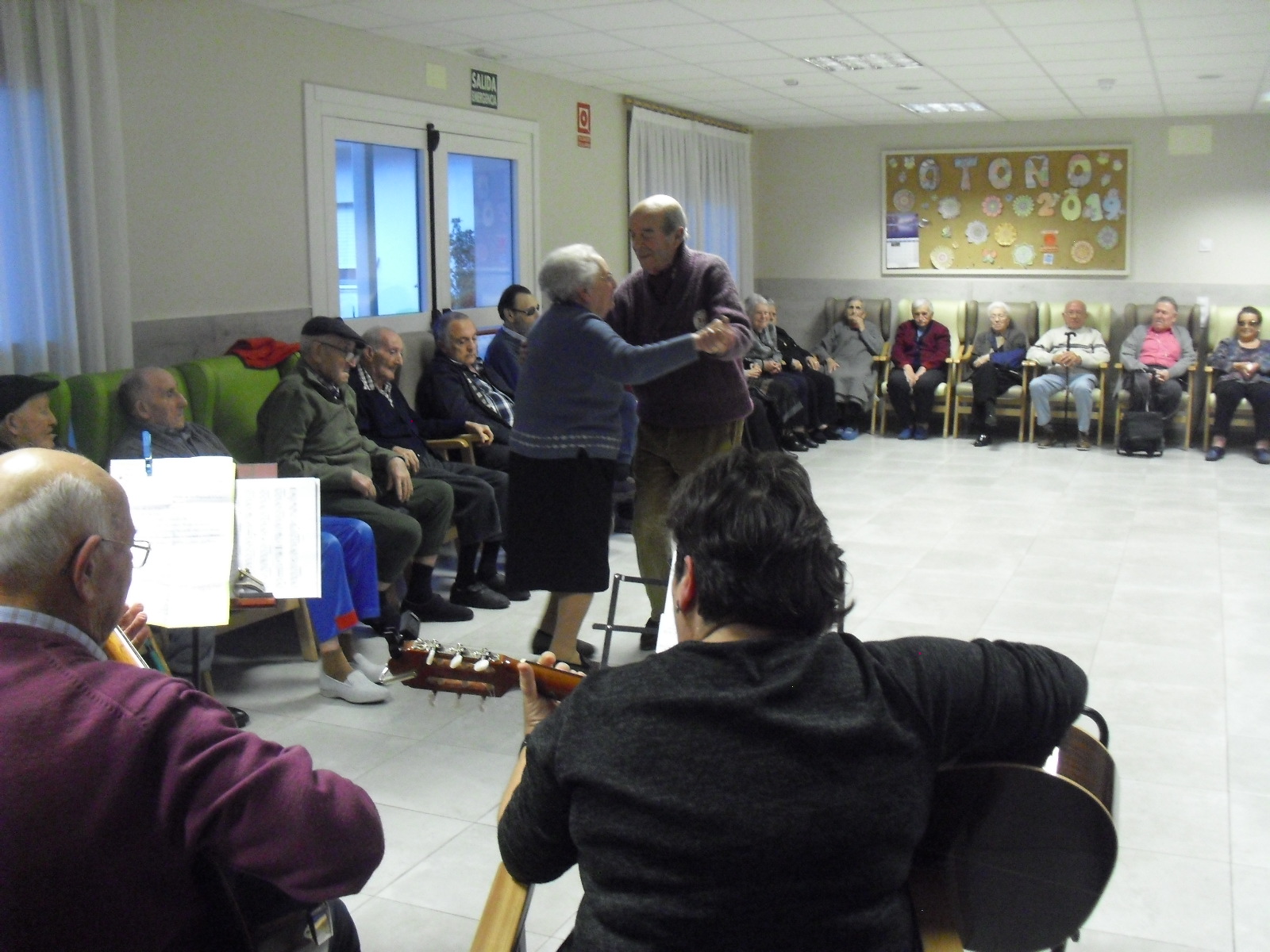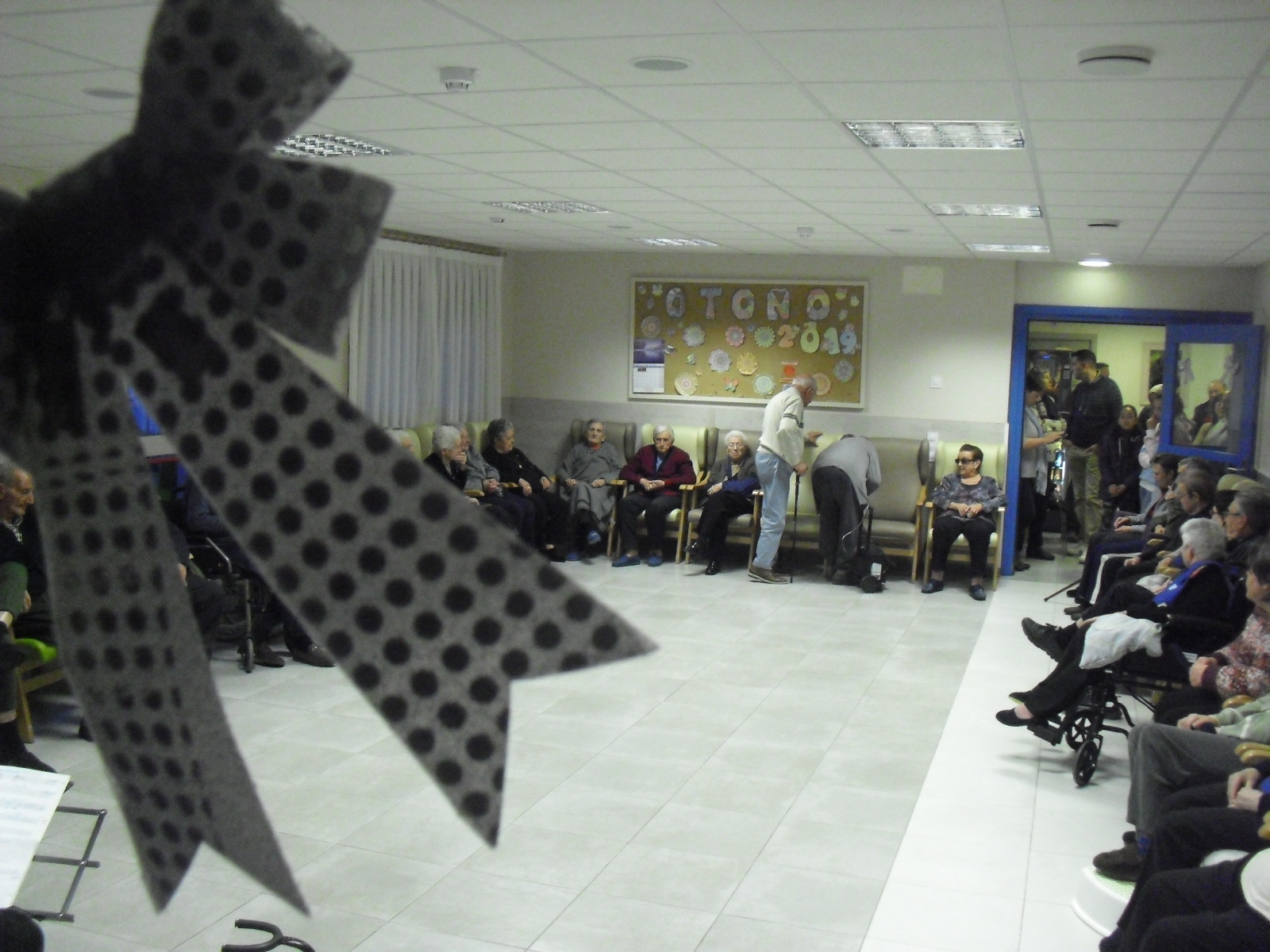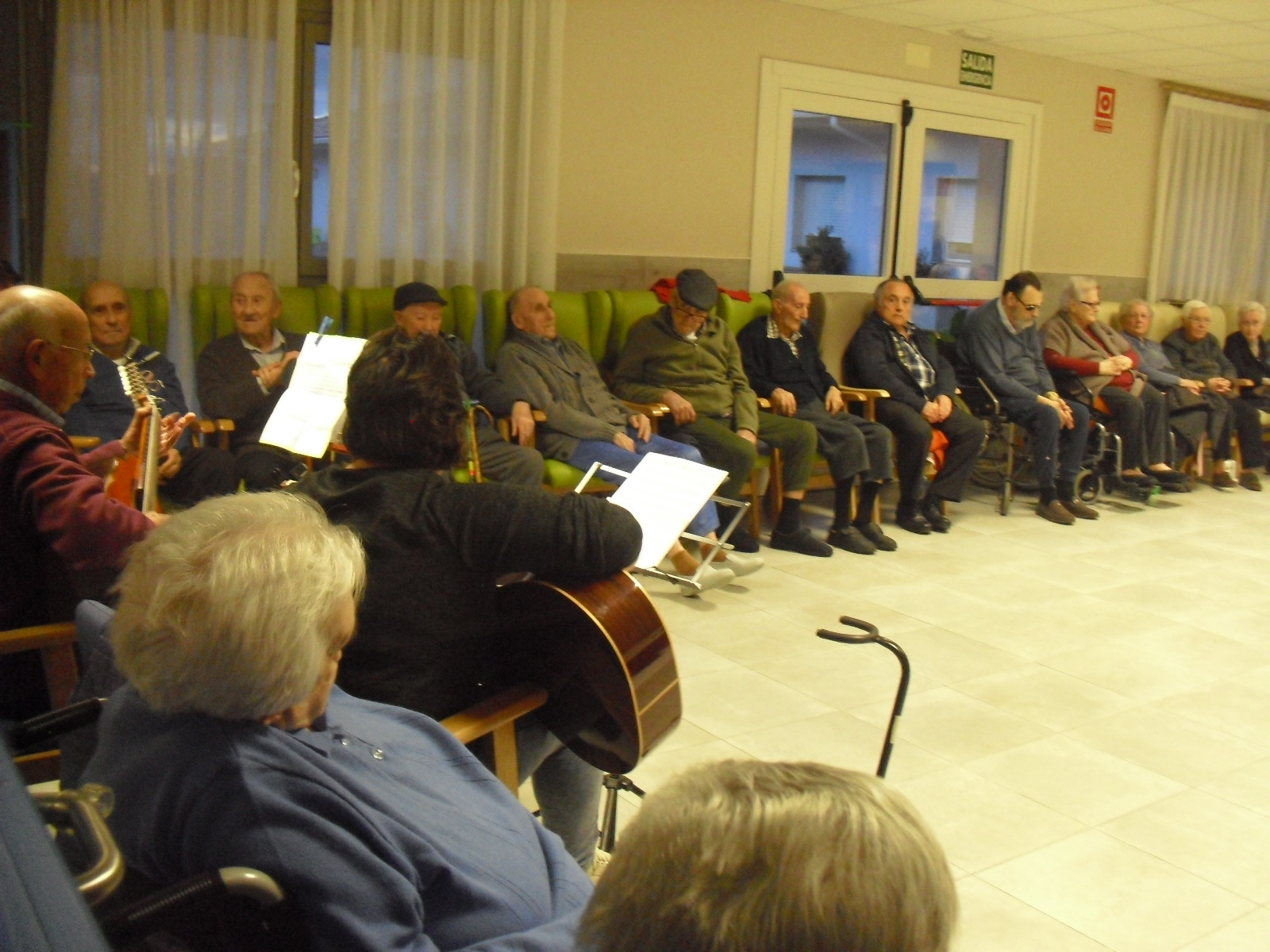 Lo primero disculparme por la tardanza a la hora de publicar, pero Movistar para poder hacer esta publicación me ha tenido dos horas y media!!!!!!!!!!!!!!Este año han hecho unas estrellas con  las pinzas de madera, las que estaban pintando en uno de los talleres y les han quedado preciosas. Además el árbol de Navidad queda muy elegante , os invitamos a que hagáis estas estrellas tan originales. Gracias a Charo, una de mis trabajadoras, quiso regalar a todos los abuelos una velada que les hizo superfelices, ya que trajo a los Amigos de Mainar a deleitar con su actuación a todos. Los componentes son José Gómez, tocó el laúd, Mª Carmen al mando de la guitarra y la voz de Victorino Felipe. Ellos tocaron piezas de baile de los años 50-60: pasodobles, boleros, tangos, jotas y algunos villancicos. Disfrutaron muchísimo e incluso bailaron. Gracias Charo y gracias a los Amigos de Mainar por su generosidad hacia nuestros mayores.