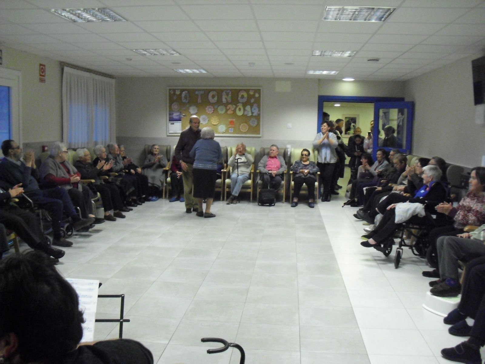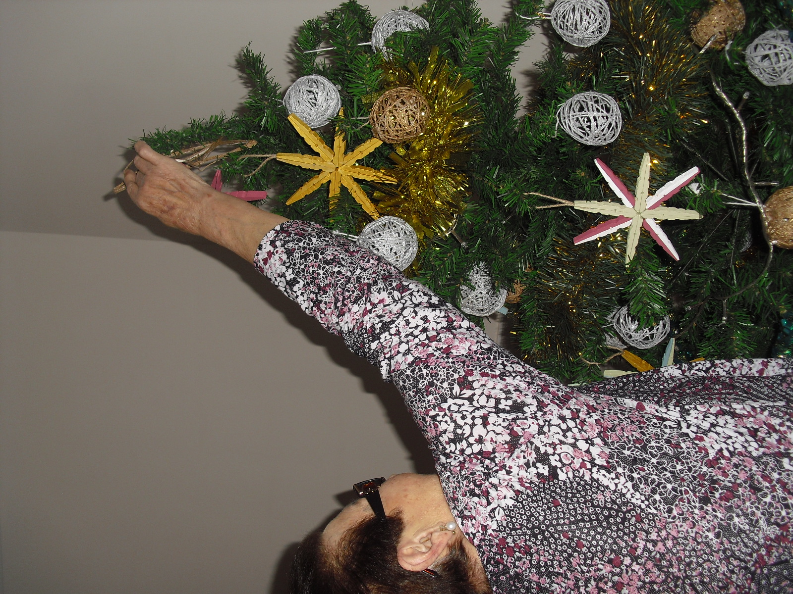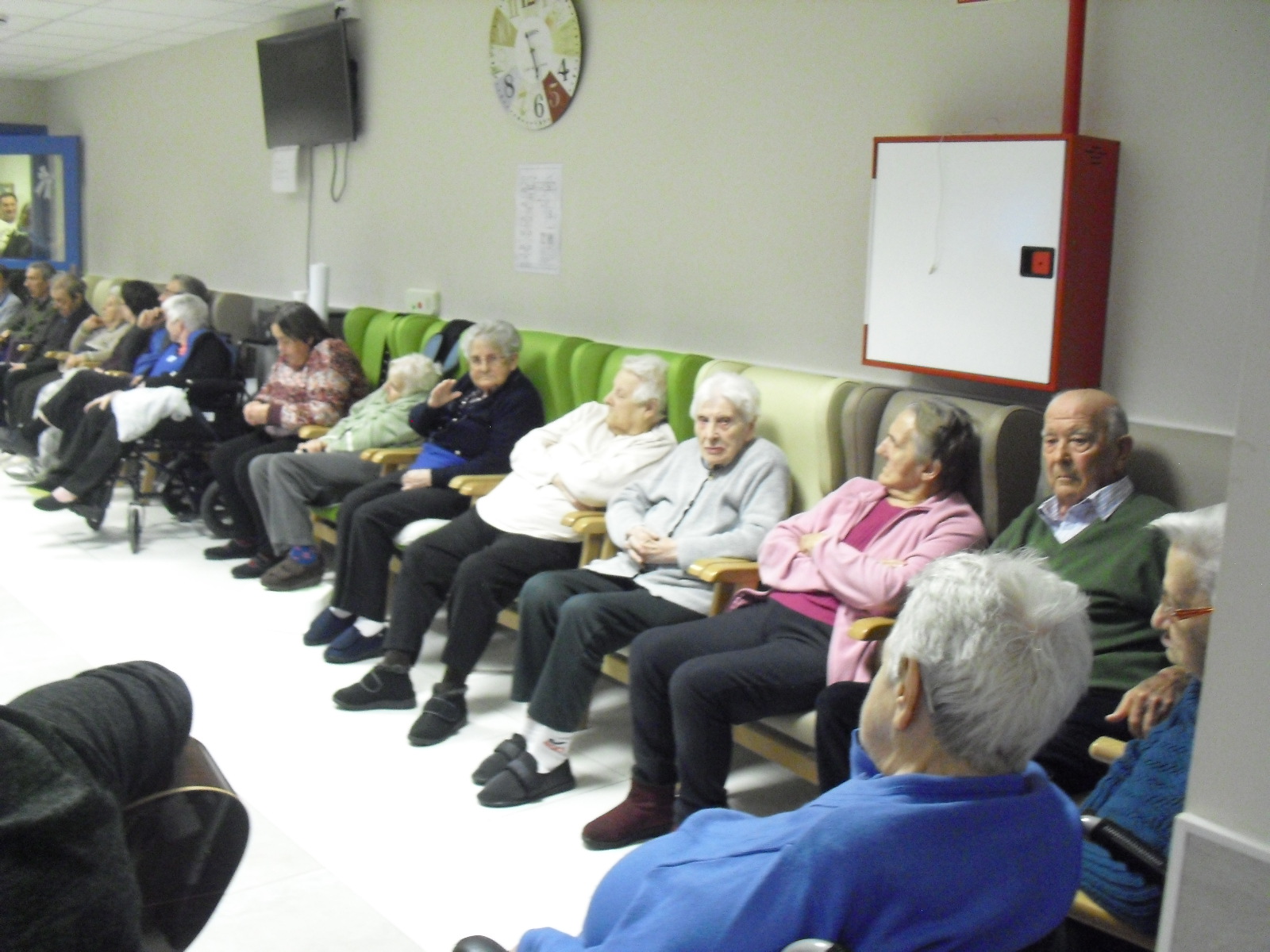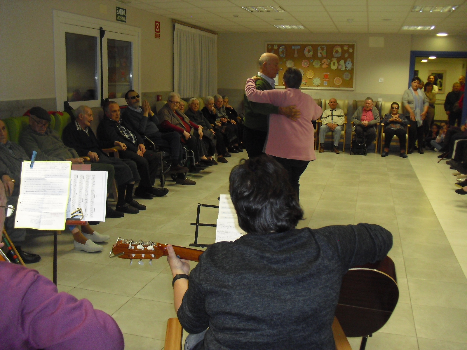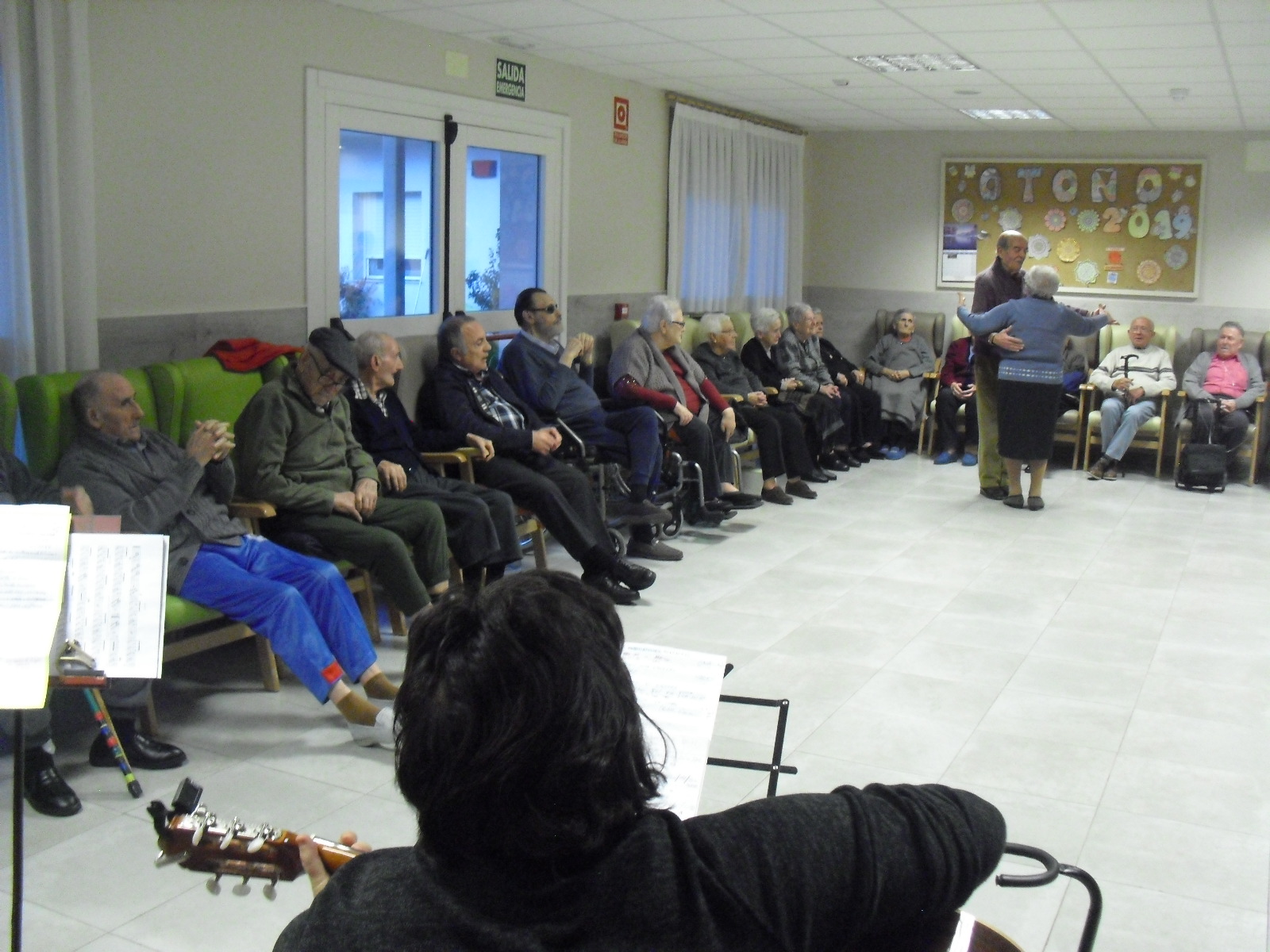Lo primero disculparme por la tardanza a la hora de publicar, pero Movistar para poder hacer esta publicación me ha tenido dos horas y media!!!!!!!!!!!!!!Este año han hecho unas estrellas con  las pinzas de madera, las que estaban pintando en uno de los talleres y les han quedado preciosas. Además el árbol de Navidad queda muy elegante , os invitamos a que hagáis estas estrellas tan originales. Gracias a Charo, una de mis trabajadoras, quiso regalar a todos los abuelos una velada que les hizo superfelices, ya que trajo a los Amigos de Mainar a deleitar con su actuación a todos. Los componentes son José Gómez, tocó el laúd, Mª Carmen al mando de la guitarra y la voz de Victorino Felipe. Ellos tocaron piezas de baile de los años 50-60: pasodobles, boleros, tangos, jotas y algunos villancicos. Disfrutaron muchísimo e incluso bailaron. Gracias Charo y gracias a los Amigos de Mainar por su generosidad hacia nuestros mayores.