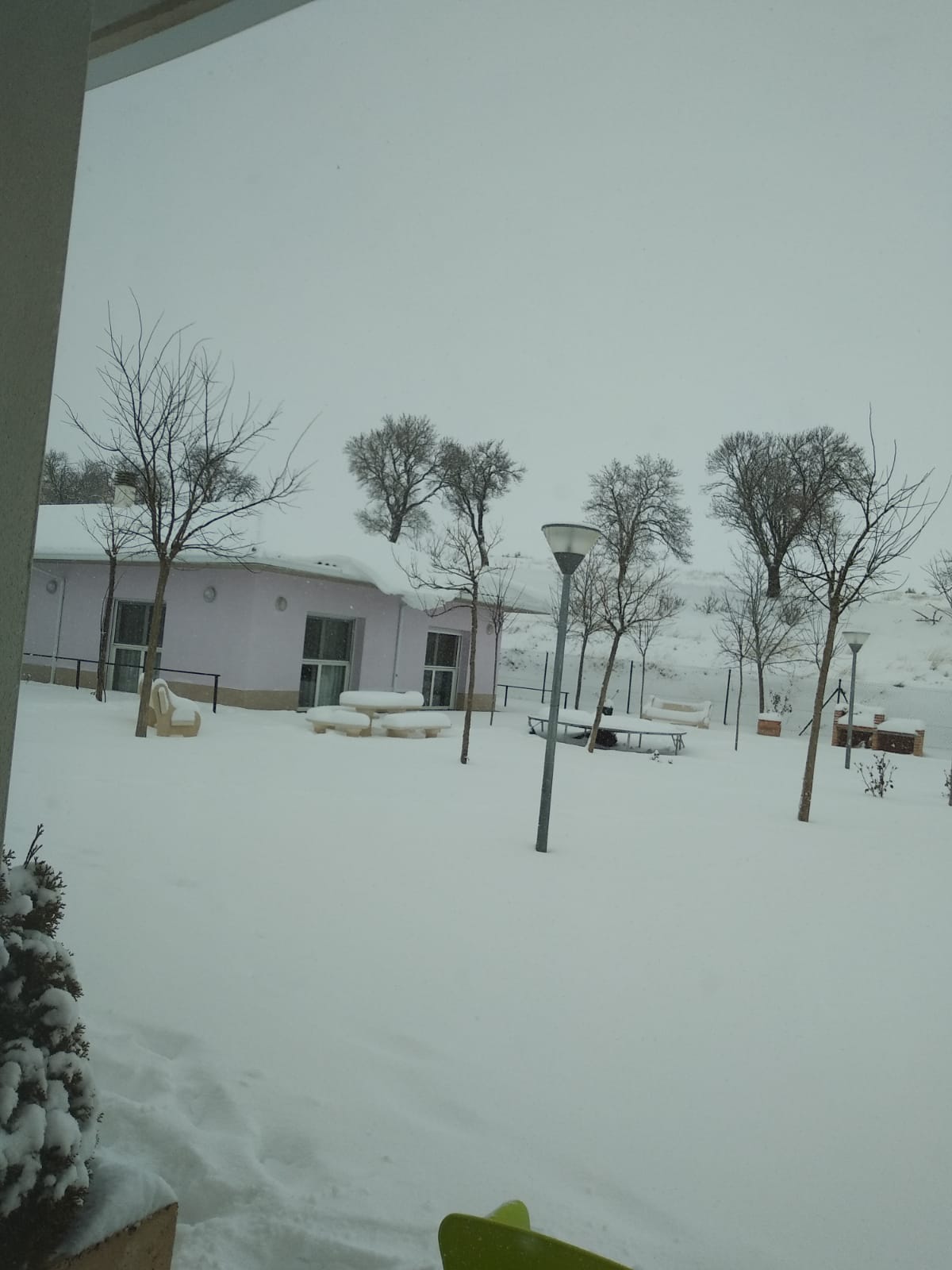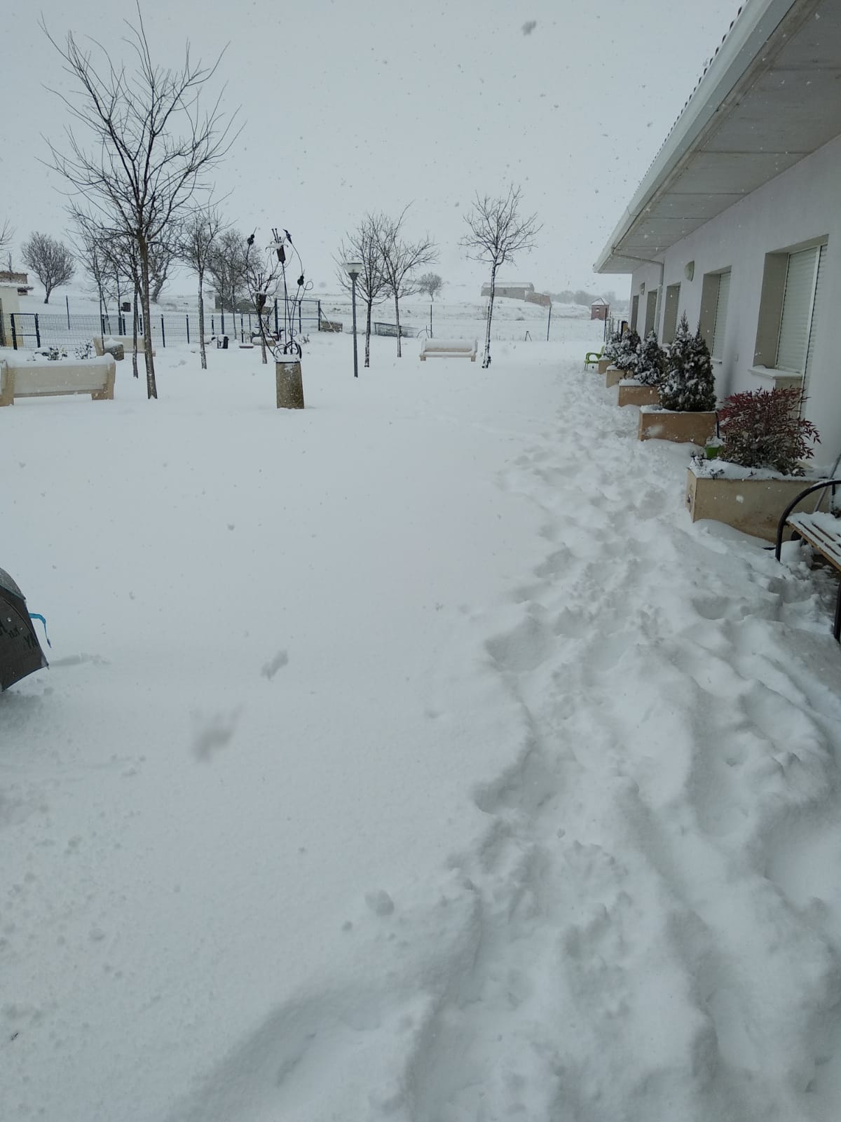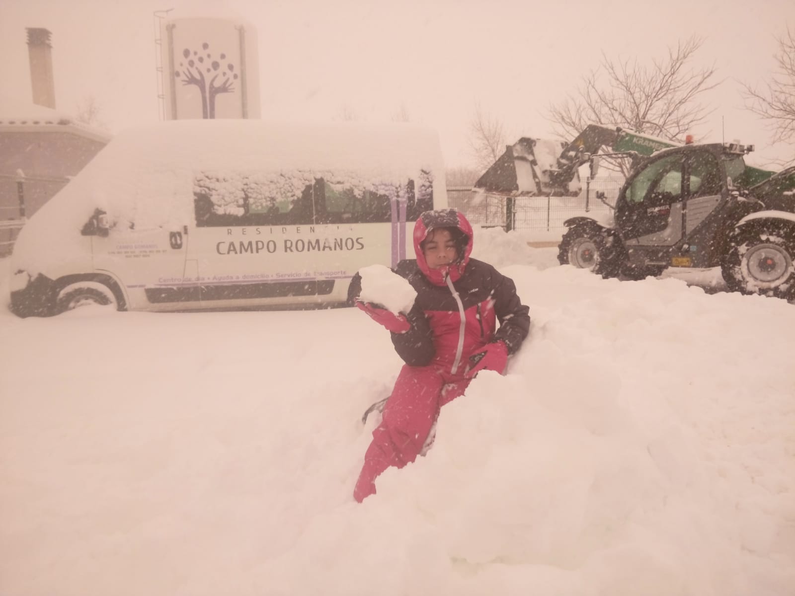 También doy las gracias a las trabajadoras que viven en Romanos, dos de ellas interrumpieron sus vacaciones para venir a trabajar esos días, las otras vinieron con muchísima nieve por las calles calándose hasta la cintura para venir a asistir a los abuelos, Mª Carmen se quedó el domingo y no se fue a Calamocha y se quedó a dormir todos los días durante la tormenta ...Estábamos pocas pero atendimos a los abuelos para que no les faltase de nada. El lunes nos dejaron sin lineas fijas, ni móvil ni Internet hasta el viernes... A mis tíos no les dejé irse a La Rioja ante las previsiones de la tormenta e hicieron una gran labor quitando nieve con la pala y ayudando en la residencia. El panadero de Daroca nos subió pan el jueves... También quiero transmitir tranquilidad a los familiares de mis abuelos que SIEMPRE VOY A ESTAR AL PIE DEL CAÑÓN Y NUNCA LOS DEJARÉ SOLOS O ABANDONADOS ANTE SITUACIONES ASÍ. Aunque no puedan comunicarse con nosotros pueden estar tranquilos pues Dios también nos protege. La que se lo pasó genial fue mi hija con la nieve, también tuvo que ayudar con los abuelos en las cenas repartiendo pan, agua, dando de cenar a una de nuestros abuelos asistidos...comparto fotos de la residencia nevada, del parking, Javi limpiando la nieve....