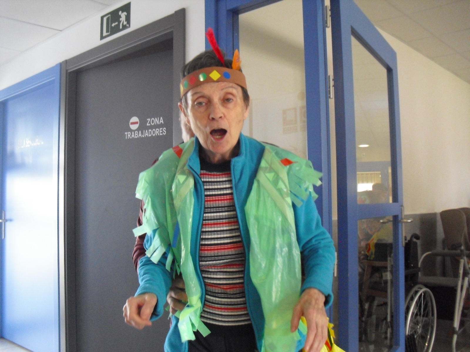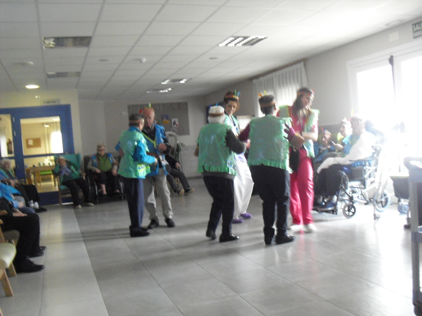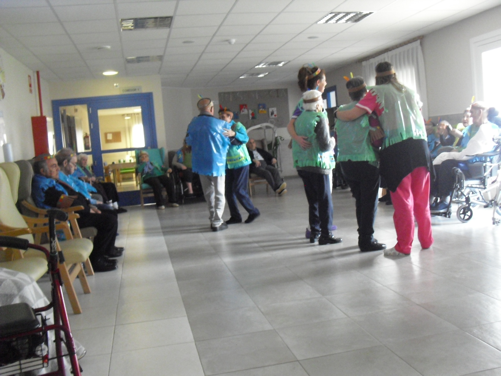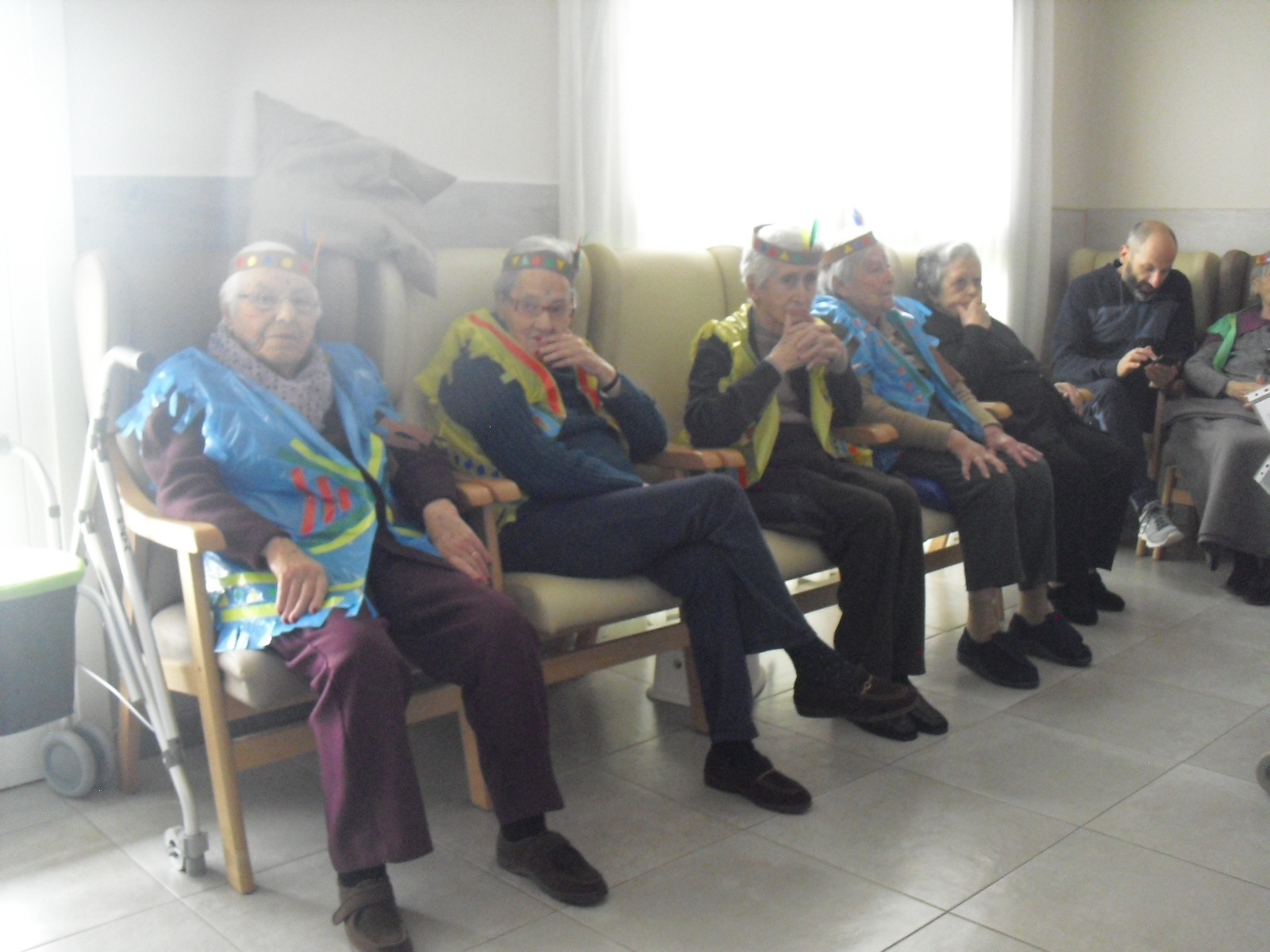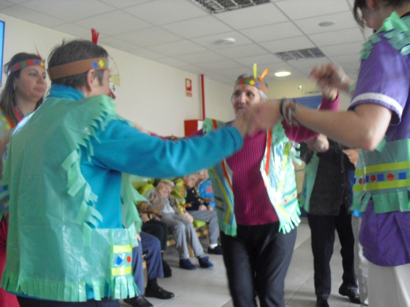 Os mandamos ánimo a todos y todas!!. Tenía pendiente poneros las fotos de la fiesta de disfraces de indios que hicimos justo antes del estado de alarma. Salen todos los usuarios del centro de día y vinieron algunos familiares. No sabemos cuándo se podrán repetir momentos así, pero cuando lleguen los saborearemos aún mejor. Hubo baile y lo que más les gusta a todos: merienda con refrescos!!!!!! y así lo hicimos. En cuanto pase esto vamos a organizar una fiesta en el jardín con puestos de comida y de exposición de las manualidades para que puedan venir los familiares...eso sí con mascarillas y gel para desinfectar!!!!!!!!!! Este sábado decidí llamar a todos los familiares para tranquilizarles, transmitirles que estamos bien y darles mi apoyo pero casi fue peor pues al recibir una llamada de la residencia más de uno se asustó. Seguiré enviándoles wasap y mensajes a los móviles para no asustarles...que bastantes preocupaciones tenemos ya todos.