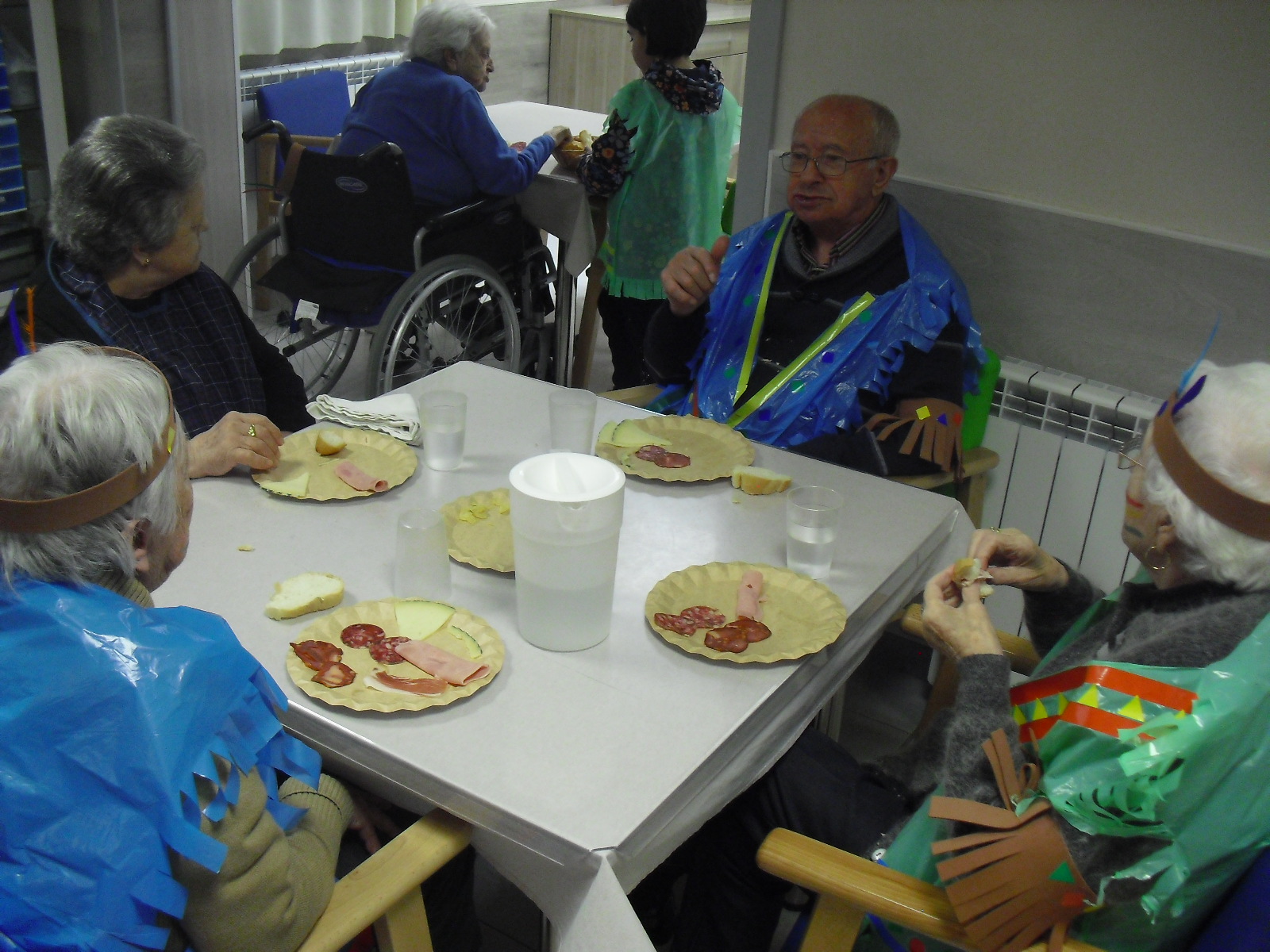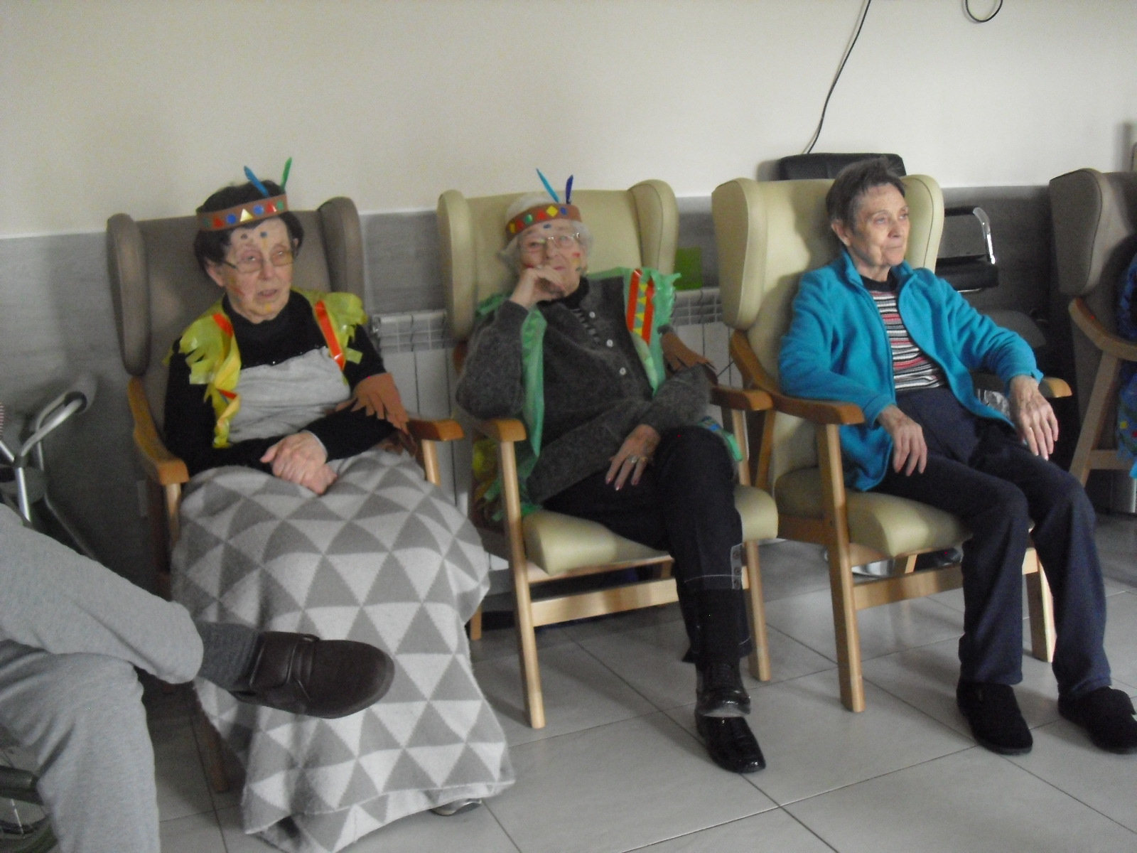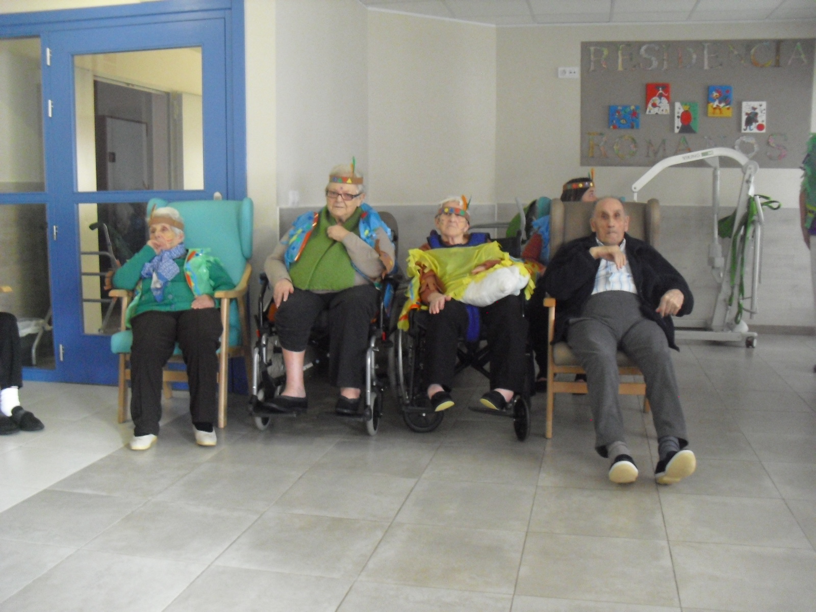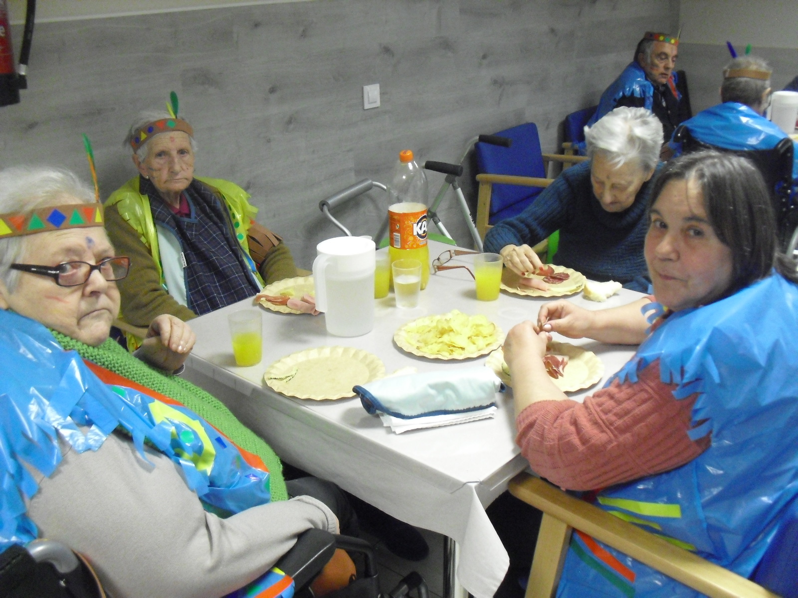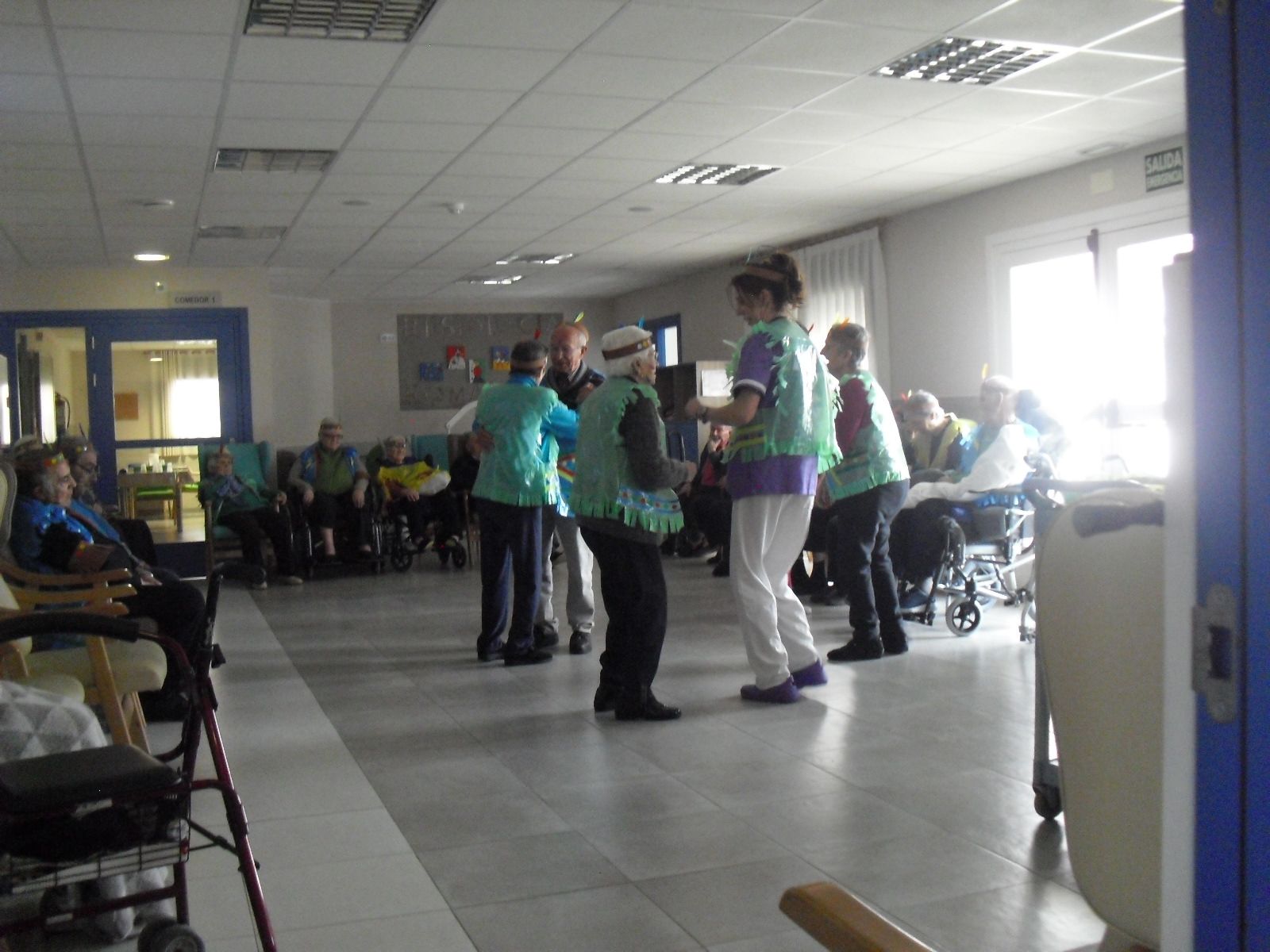 Os mandamos ánimo a todos y todas!!. Tenía pendiente poneros las fotos de la fiesta de disfraces de indios que hicimos justo antes del estado de alarma. Salen todos los usuarios del centro de día y vinieron algunos familiares. No sabemos cuándo se podrán repetir momentos así, pero cuando lleguen los saborearemos aún mejor. Hubo baile y lo que más les gusta a todos: merienda con refrescos!!!!!! y así lo hicimos. En cuanto pase esto vamos a organizar una fiesta en el jardín con puestos de comida y de exposición de las manualidades para que puedan venir los familiares...eso sí con mascarillas y gel para desinfectar!!!!!!!!!! Este sábado decidí llamar a todos los familiares para tranquilizarles, transmitirles que estamos bien y darles mi apoyo pero casi fue peor pues al recibir una llamada de la residencia más de uno se asustó. Seguiré enviándoles wasap y mensajes a los móviles para no asustarles...que bastantes preocupaciones tenemos ya todos.