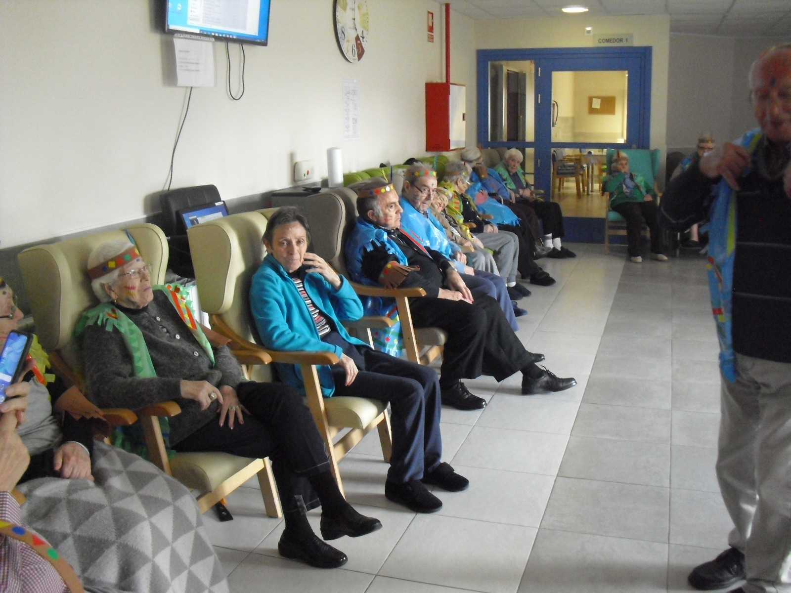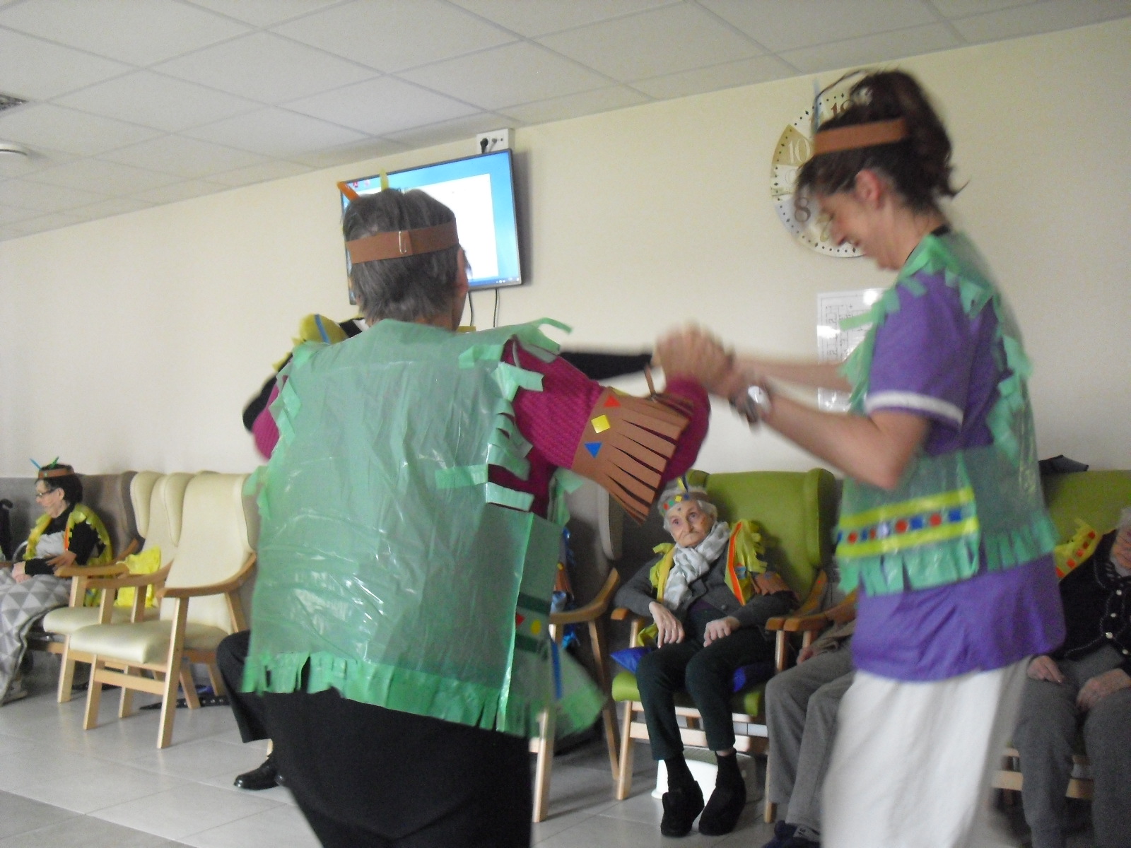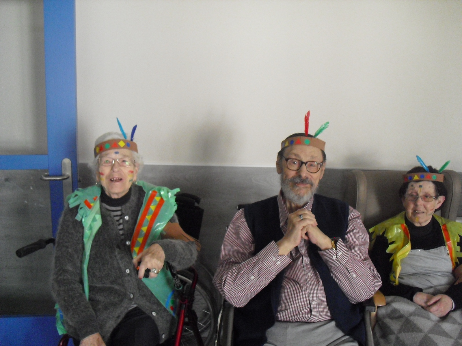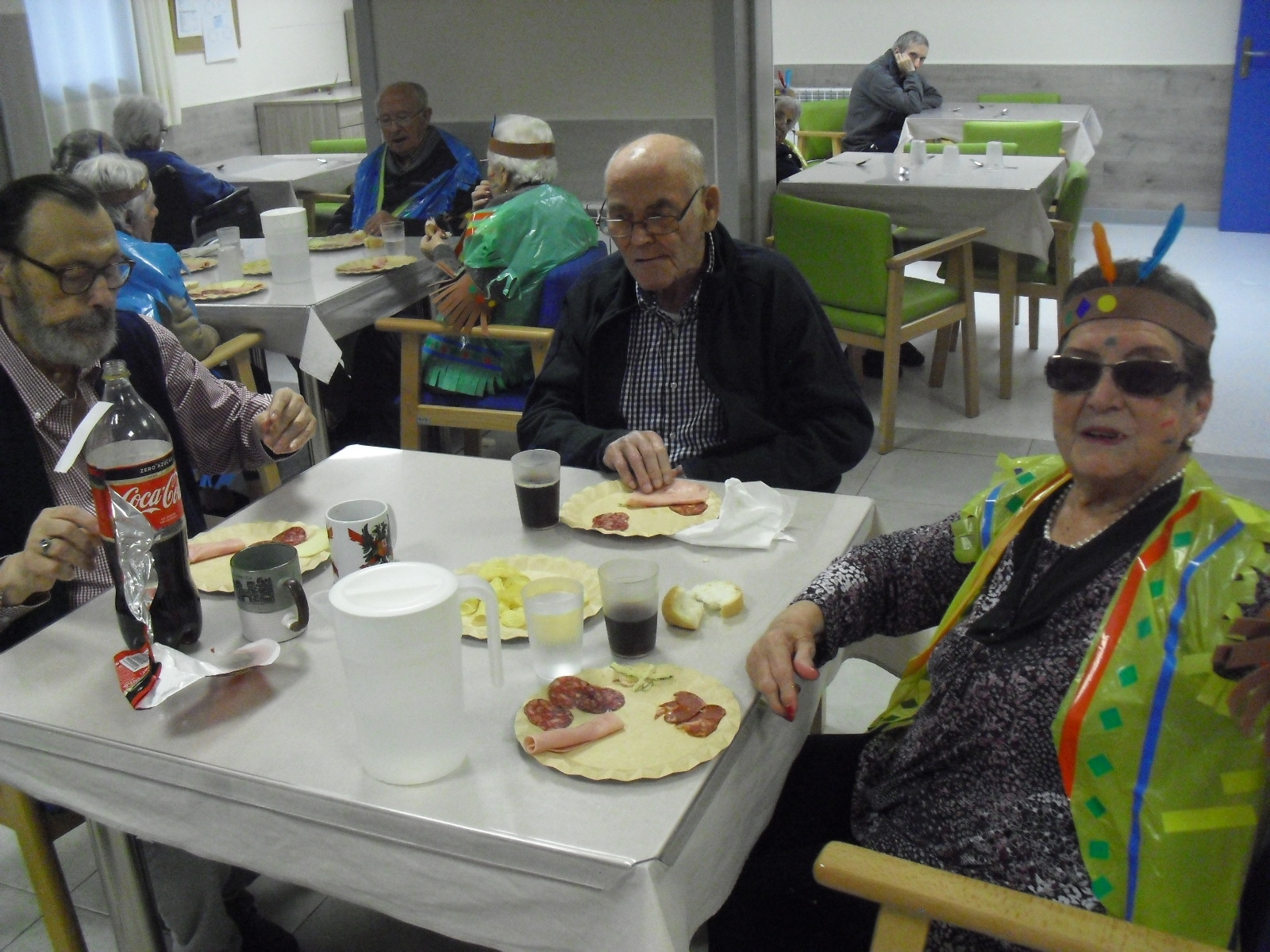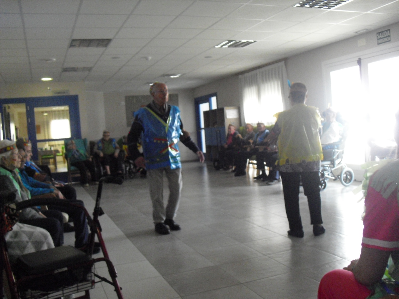 Os mandamos ánimo a todos y todas!!. Tenía pendiente poneros las fotos de la fiesta de disfraces de indios que hicimos justo antes del estado de alarma. Salen todos los usuarios del centro de día y vinieron algunos familiares. No sabemos cuándo se podrán repetir momentos así, pero cuando lleguen los saborearemos aún mejor. Hubo baile y lo que más les gusta a todos: merienda con refrescos!!!!!! y así lo hicimos. En cuanto pase esto vamos a organizar una fiesta en el jardín con puestos de comida y de exposición de las manualidades para que puedan venir los familiares...eso sí con mascarillas y gel para desinfectar!!!!!!!!!! Este sábado decidí llamar a todos los familiares para tranquilizarles, transmitirles que estamos bien y darles mi apoyo pero casi fue peor pues al recibir una llamada de la residencia más de uno se asustó. Seguiré enviándoles wasap y mensajes a los móviles para no asustarles...que bastantes preocupaciones tenemos ya todos.