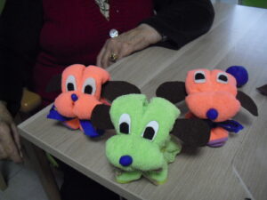 Maribel preparó un taller de perritos que se hace con bayetas y unas golondrinas con cartulina negra que les quedaron preciosas. Han adornado el mural de la Sala de Día enmarcando el cartel de la primavera y con los dibujos de flores y mariposas. Les encanta hacer cosas y estar entretenidos. Enseguida empezaremos a salir a los jardines para hacer la gimnasia en el exterior y disfrutar del aire libre. El buen tiempo hará posible tener más visitas y ampliar el horario de las  mismas, Un abrazo a todos y todas!!!