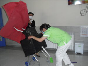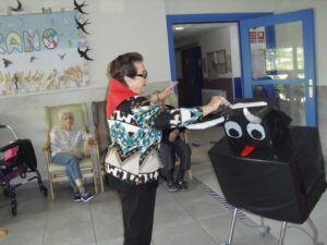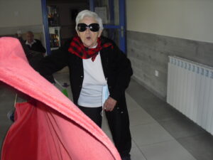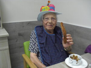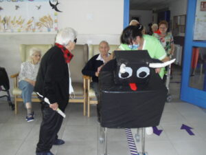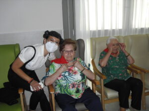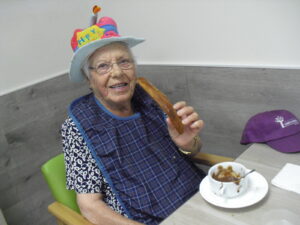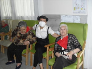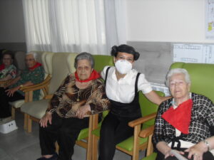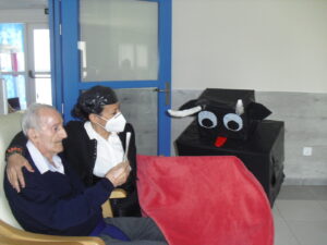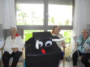 Maribel no deja de sorprendernos y ha elaborado un toro para San Fermín, y como no podía ser de otra manera también va en su andador.... Ensayó con los abuelos la oración y todos llevaban su periódico enrollado, no faltaba ningún detalle. Maribel se vistió de torero e Inma manejó el toro. Empezaron con la oración a San Fermín y después se inició el encierro por el pasillo de las habitaciones. Nos lo pasamos genial y ellos más y sobre todo Lina, que agarró el capote y toreó al toro un  montón de veces!!! Este mes de junio y julio hay muchos cumpleaños, iremos poniendo las fotos cada semana. Adelina eligió para celebrar el suyo, tortas y chocolate a la taza y su deseo se cumplió...como no podía ser de otra manera, ya que sus deseos son órdenes!! y más en un día tan especial como es cumplir una año más. También realizaron una actividad muy especial para la Noche de San Juan, que os explicaré en la próxima publicación!!!