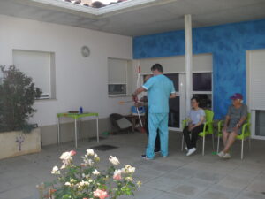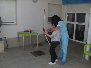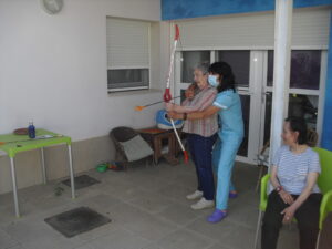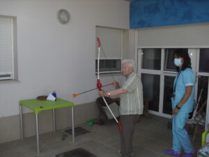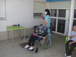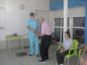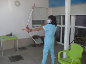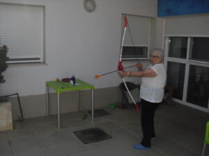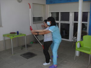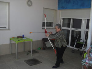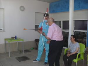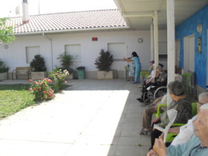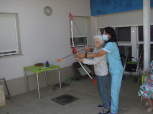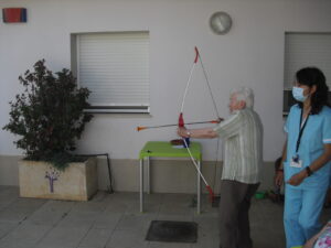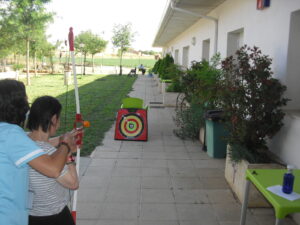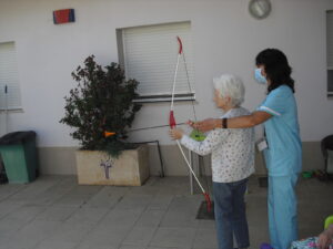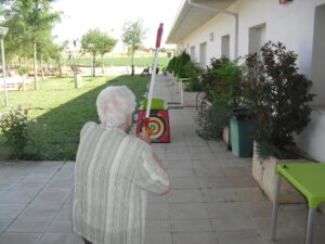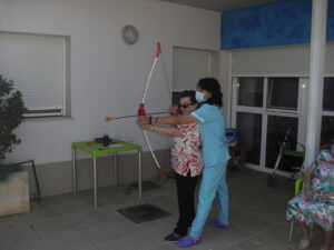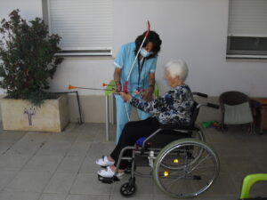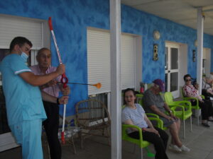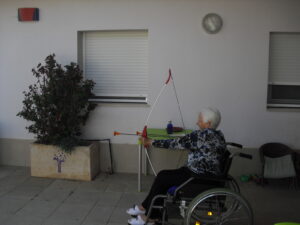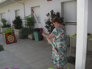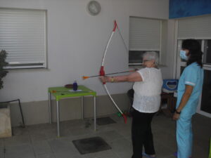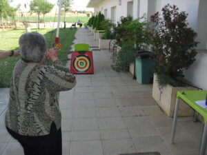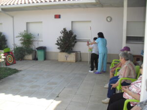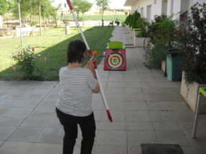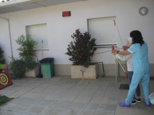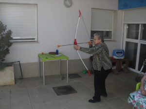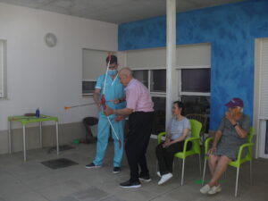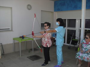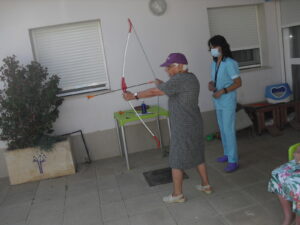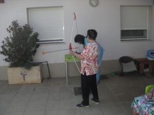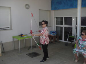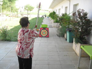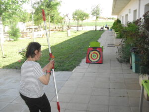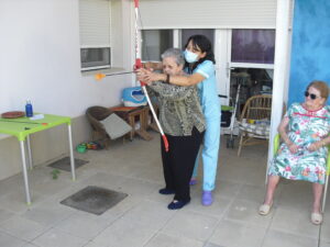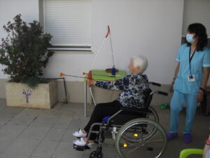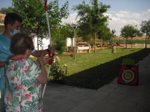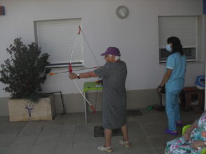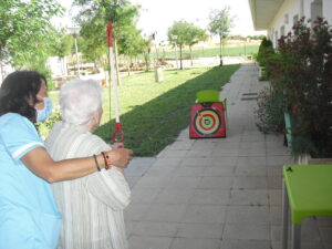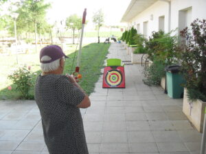 Maribel preparó diferentes pruebas para que los abuelos se clasificaran en nuestras Olimpiadas y se los pasaron muy bien. El tiro al arco les motivó muchísimo y repitieron en varias ocasiones, también tuvieron lanzamiento de jabalina, de disco y de bola. Con el buen tiempo se aprovecha mucho el jardín para las actividades en el exterior. Tenemos este viernes 24 la despedida del verano con Charanga incluida, en la próxima publicación os haremos partícipes de esta actividad. Esperamos que acuda también nuestro cura Federico, pues cuida a todos nuestros mayores cada semana con la celebración de la misa.