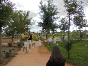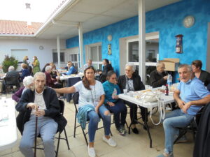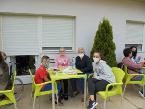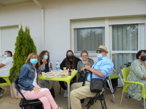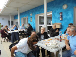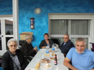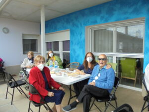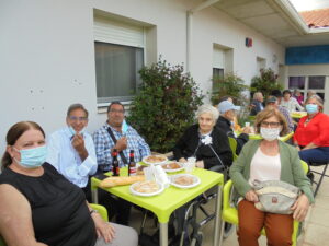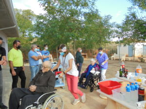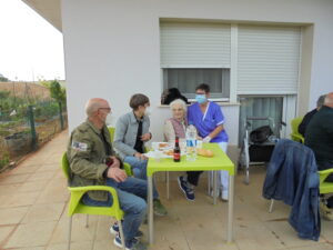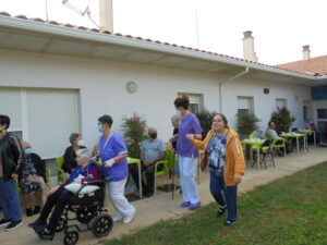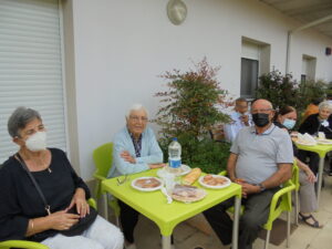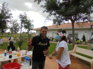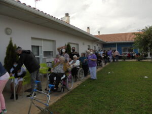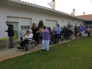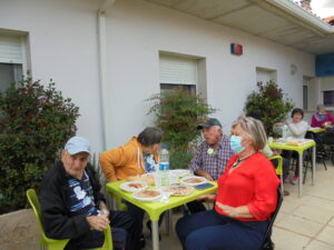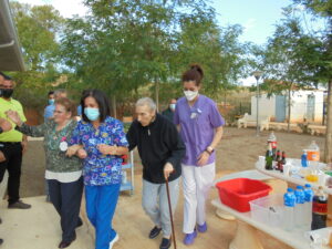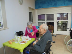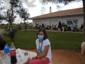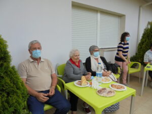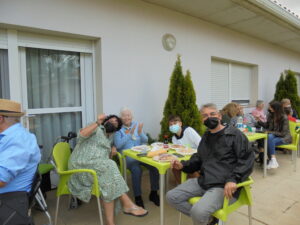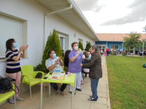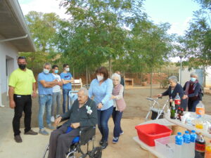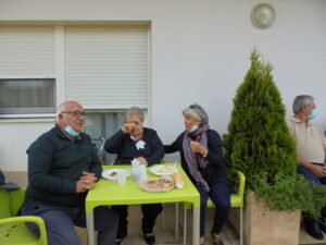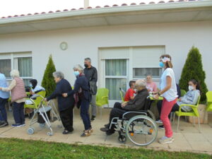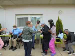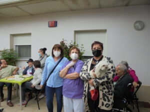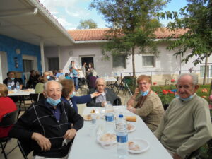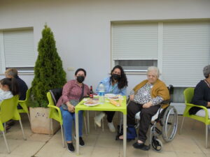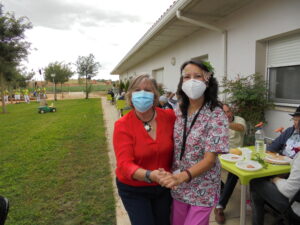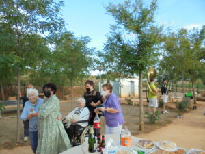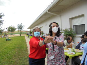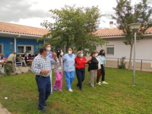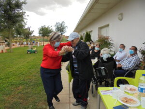 La fiesta de fin de verano se hizo el viernes 24 de septiembre a petición de algunos de los familiares que al estar lejos venían ese día de visita. Los abuelos esperaban ese día con ilusión y muchas ganas, ya que iba a ser un Día de Encuentro entre familiares y abuelos!!. Desde la pandemia sólo habíamos tenido la fiesta del Día de las Tapas, con un número más reducido y se iba a producir el viernes 24!!!!!!!!!!! Nuestro alcalde de Romanos también pasó a vernos ese día!! Todo estaba programado y organizado. La primera recepción de familiares se producía en la puerta con desinfección, toma de temperatura y comprobación de la utilización de mascarillas. En este chequeo estábamos Gustavo y yo. La entrada se produjo en 30 minutos escalonadamente para evitar aglomeraciones. Segunda recepción: Pilar y Maribel, distribución familiares en las mesas asignadas en la que estaba esperando su abuelo. Y recogida de las  bebidas. Todo se realizó en el exterior, en nuestros jardines. La comida estaba emplatada individualmente por mesas para evitar contacto... La gran protagonista: la Charanga de Daroca llegó a las 16:30 y comenzó la fiesta!!!!!!!! bailamos, reímos...y mi  equipo de trabajo formado por Olga, Mª Carmen, Esther, Monica, Mª Jose, Manuela, Pilar V., Pilar A., Maribel y Jordina pusieron todo de su parte para que fuese un día especial para todos. Hemos decretado por unanimidad absoluta que todos los años se va a repetir la Fiesta de las Tapas y la Fiesta de Fin de Verano!! Qué mejor día que hoy para poner la placa de agradecimiento que nos ha regalado la familia de Pilar Royo, que la pandemia nos arrebató... En este día de celebración me acordé de todos mis abuelos y ellos seguro nos estaban observando!!!!!!!!!!!
