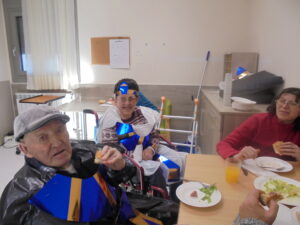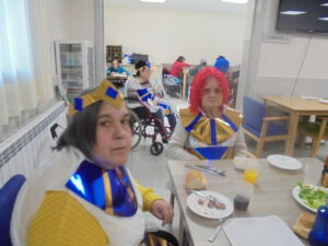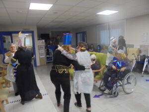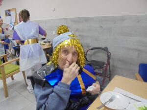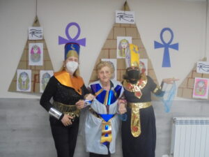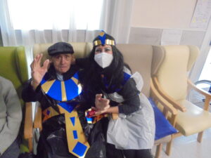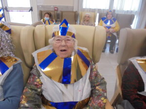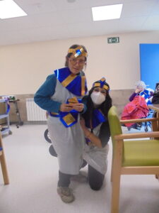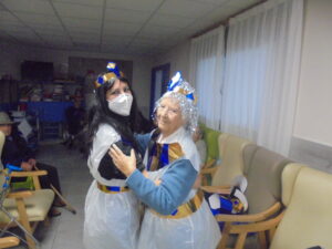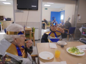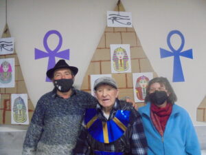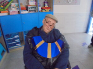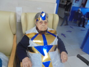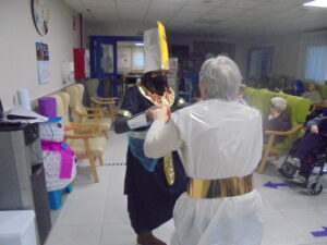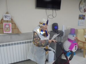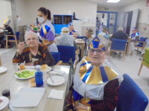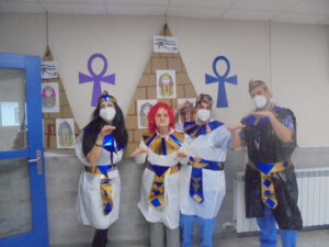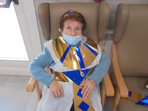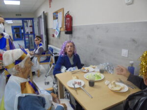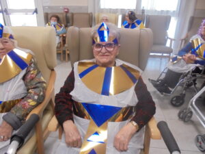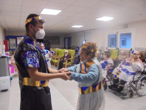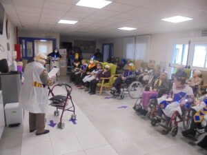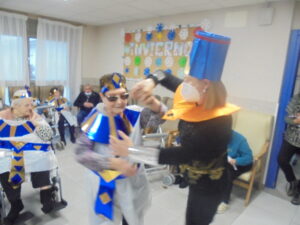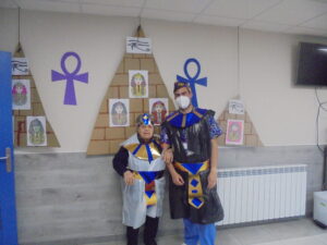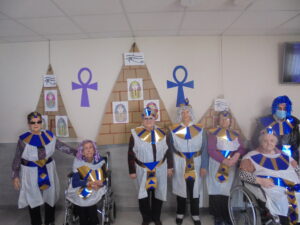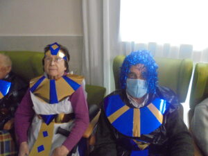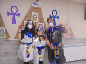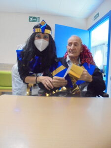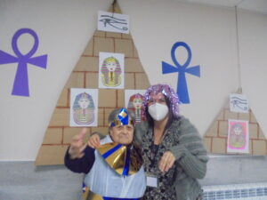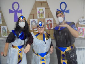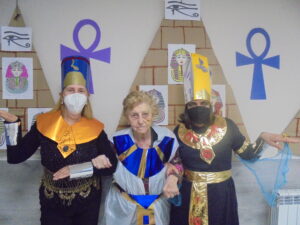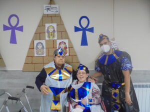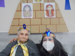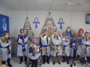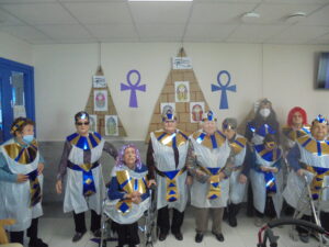 Vaya tarde más amena!! Juan y Maribel disfrazaron a todos los abuelos de egipcios, tuvimos merienda con longaniza, algunos familiares pudieron estar también con nosotros, música, baile, fotos...Mari nos recitó poesía y Anselmo cantó. Otro día pondremos las fotos de la preparación de los disfraces pues los confeccionaron con ellos. Ya estamos preparando otro encuentro familiar con los abuelos: baile en línea!!!