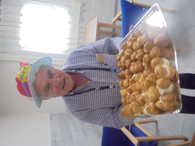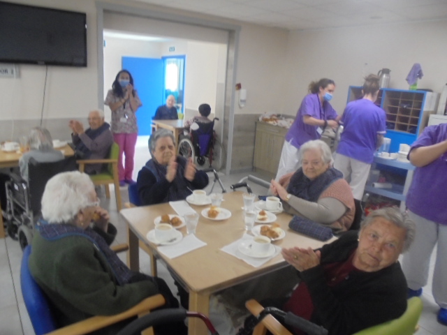 Este mes de mayo tenemos muchos cumpleañeros, esta semana publicaremos el de Mariano y Juan Antonio, que todo les parecía poco para invitar a todos. Mariano encargó bocaditos de nata sin conocimiento y Juan Antonio bizcochos, pastas de té y chocolateros!!! tremendos los dos, yo les dije que éste no era su último cumpleaños, que faltaban muchos más...pero ellos dijeron que por si acaso!!!!! Ya podemos controlar el azúcar bien este mes porque con tanto cumpleaños...estamos acondicionando el jardín con más recorridos para andar, también vamos a poner unos aparatos de gimnasia exterior para ellos...que quemen esas calorías tan alegremente añadidas!!! El viernes 27 de mayo tenemos otro día de encuentro entre familiares y usuarios con juegos y animación a cargo de Cambirola, con merienda incluida. Os mantenemos informados.