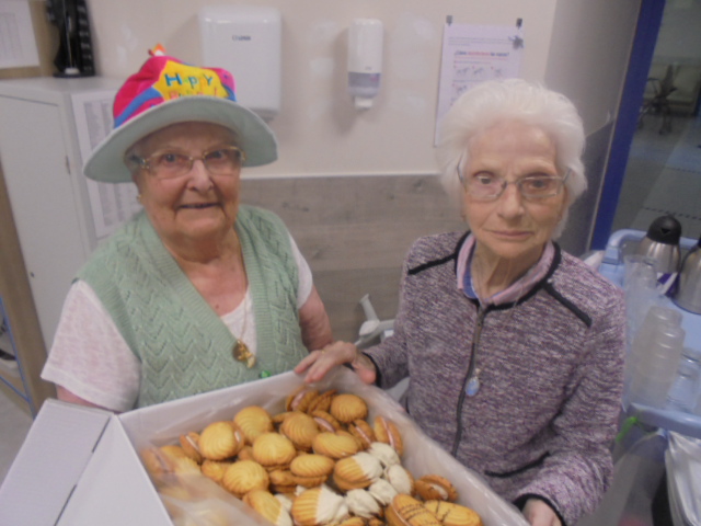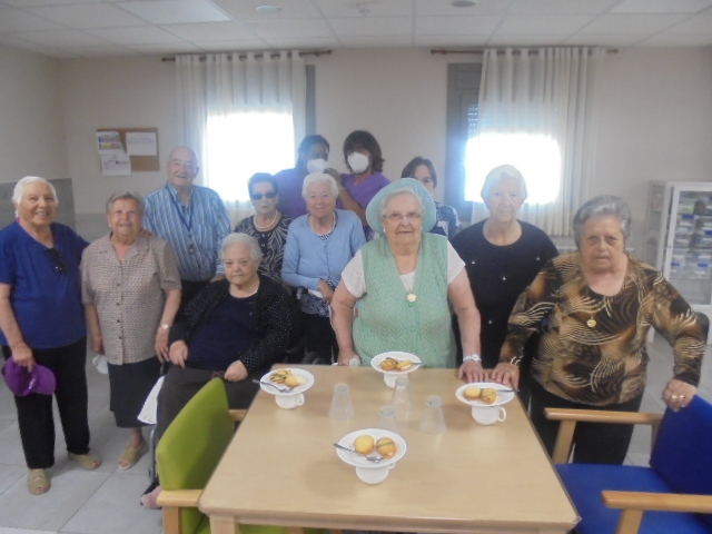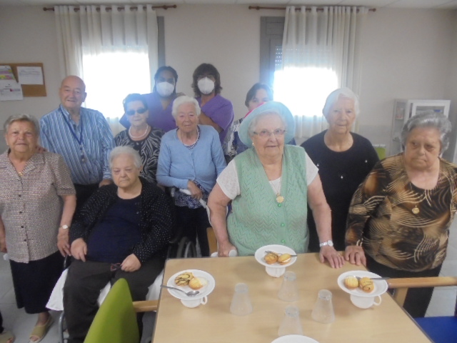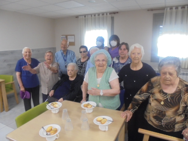 Seguimos con el cumpleaños de Esther, su hijo trajo un bizcocho de Santiago que elaboró artesanalmente para todos y Hermitas invitó a pastas de té. Todos contentos de poder compartir ese día tan especial como es cumplir años con los compañeros de la residencia. Ya estamos calentando motores para la fiesta de las tapas y este mes los abuelos están haciendo un taller muy chulo del juego de la oca, que os contaré en la próxima publicación.