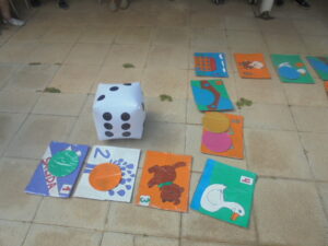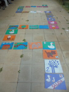 Tenía pendiente poner las fotos del juego de la oca que María y Juan han preparado en los talleres a lo largo del mes de julio y parte de agosto. Es increíble lo precioso que ha quedado: primero dibujaron  cada casilla en cartón, después las pintaron en los talleres y por último las han plastificado. Una manera de preparar un juego a lo grande!!!!!!!!!!!! Este juego no podemos perderlo nunca pues las horas de trabajo que han pasado, la ilusión de terminarlo y poder jugar con él no tiene precio.