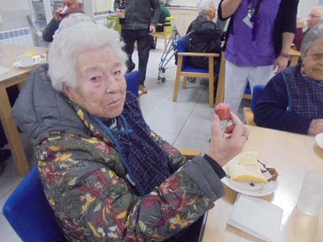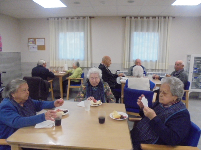 Queremos compartir con vosotros la celebración de San Antón, de Santa Águeda con la degustación de la teta y los cumpleaños de Joaquina y Salvador. En San Antón quisimos también que participaran los familiares y se hizo una merienda con longaniza y morcilla y con baile para todos. Al día siguiente ya estaban preguntando cuándo habría baile otra vez!!!!!!!!!!!!! son inagotables. Pero no penséis que estamos todo el día de celebraciones...que también hacen muchos talleres como el de la campana. El próximo día tenemos la misa de San Blas, muchos talleres, el concierto de viola y muchas más cosas!!!!!!!!!!!!!!