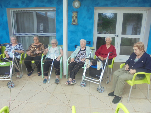 Tenemos que seguir trabajando diariamente con ellos en los talleres porque es importante seguir activos, debemos continuar el proyecto de vida de cada uno de ellos cumpliendo sus objetivos. Los objetivos que ellos quieren cumplir, de eso se trata  el modelo de Atención Centrada en la Persona: ellos son los protagonistas. Varios talleres voy a exponer: el taller de la cuerda en el que van tejiendo como una tela de araña al ir pasándose de unos a otros el ovillo de lana, el taller de la pelota que le encanta a Ana y un taller de hojas en la que van haciendo un árbol. Mari celebró su santo con un bizcocho de chocolate para compartir con todos sus compañeros y recibió un precioso ramo de flores de su familia. Tenemos muchas ganas de que llegue el buen tiempo para que puedan pasear por los jardines todos y pedaleen  en las bicicletas del gimnasio exterior!!!!!!!