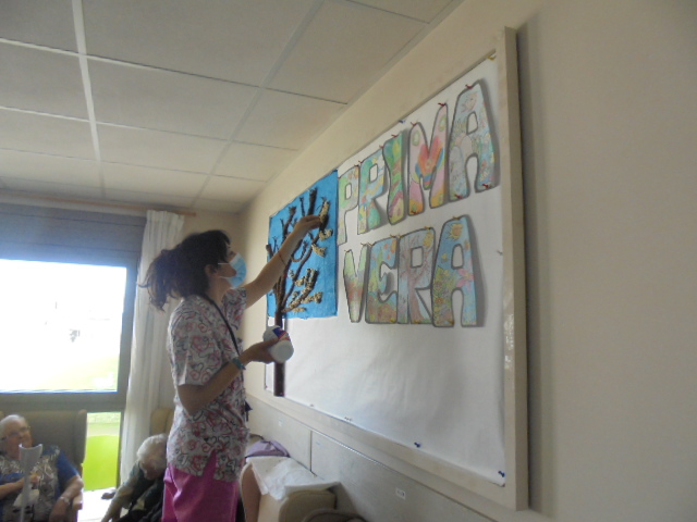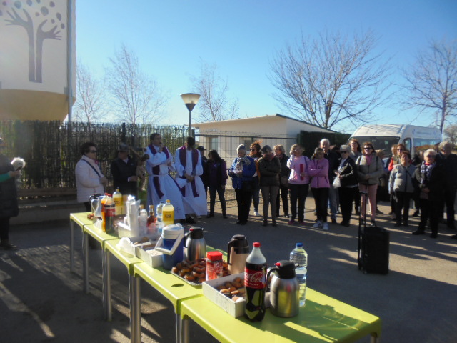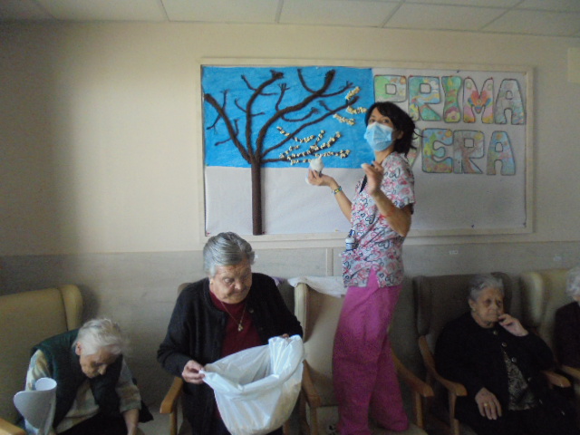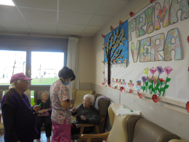 Nuestro cura Federico siempre se acuerda de nuestros abuelos y de la Residencia Campo Romanos y el domingo 2 de abril  vino  con la Cofradía de Cristo en la Agonía de Daroca. Salieron desde Badules andando con el Cristo y  tocando los tambores  llegaron al parking de la residencia.  Lástima que el tiempo no acompañó y nuestros abuelos no pudieron salir todos a verles pero la intención es lo que vale y ellos quedaron igualmente agradecidos. Las mujeres de Romanos colaboraron para preparar un refrigerio para todos: Feli, Mª Luz y Tere hicieron rosquillas, trajeron café, bizcochos...Fina hizo torrijas, la residencia ayudó con la leche, pastas, bizcochos... Además el jueves Federico volvió a visitarnos de nuevo y celebró la misa del Domingo de Ramos y bendijo las ramitas de olivo que trajo para cada uno. Muchísimas gracias Federico por dar la misa cada semana ya que para ellos es muy importante ese momento de fe. También compartimos con todos vosotros el mural de primavera tan bonito que han elaborado y la frase para el mural típica de esta época, ya estamos esperando los primeros brotes de las hojas de los árboles y contemplando las flores de los almendros y de algunas macetas....la primavera ya está aquí!!!!!!!!!!