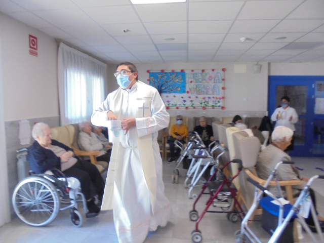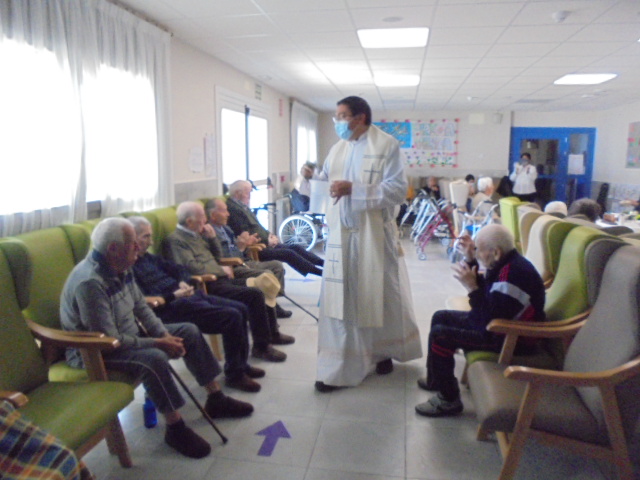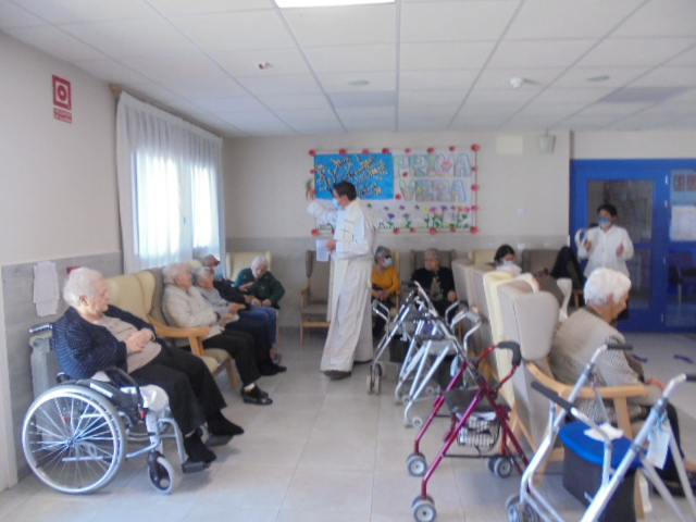 Nuestro cura Federico estuvo celebrando la misa con la ayuda de dos mujeres que cantaron y  tocaron la guitarra junto a los abuelos. Una mañana mágica para todos nuestros abuelos gracias a la dedicación de Federico, gracias!!!. También colorearon los abuelos los Pasos de Semana Santa y los expusimos en la Sala de Día. También aprovecho para poner las fotos de algunas de las meriendas y comidas de esta Semana Santa: chocolate con bizcochos, torrijas y u n potaje de garbanzos con espinacas y bacalao!!!!!!!! muy contentos han pasado estos días!!!!!!!!!!