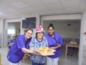 Como este mes hemos hecho dos despedidas vamos a publicar también varios cumpleaños por alegrar un poco estos días. Teníamos pendiente el cumpleaños de María, una de las trabajadoras que quiso ponerse el gorro y celebrarlo con ellos. También tenemos el cumple de Mª Carmen con tarta de zanahoria y el de Mª Luz con tarta de chocolate. El próximo día publicaremos las fotos del concurso de tapas  donde Manolo se lo pasó fenomenal junto a su familia y así terminamos de despedirnos de él.
