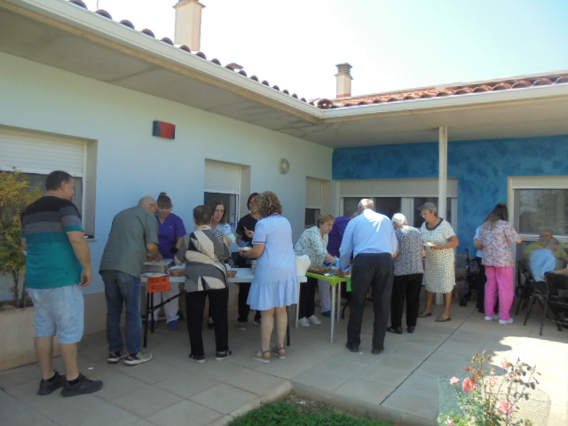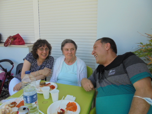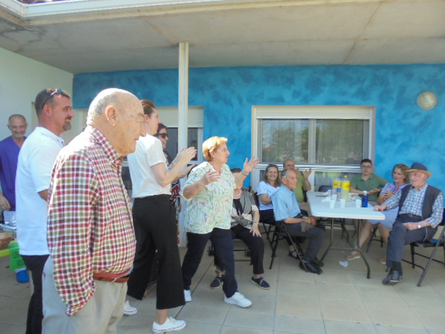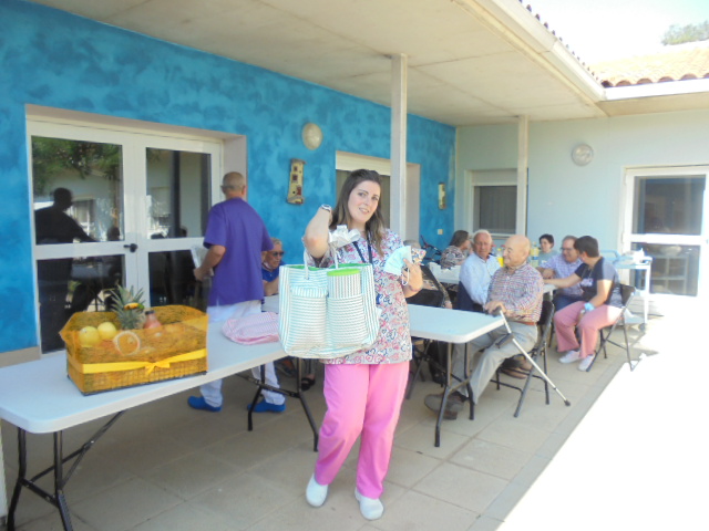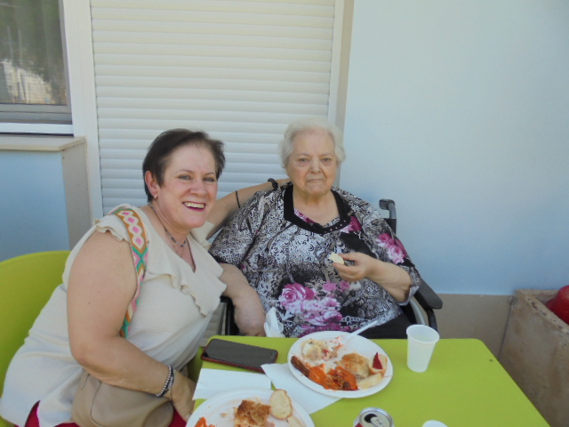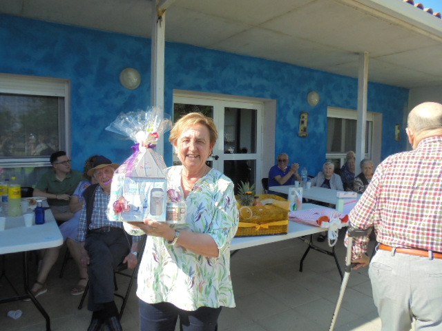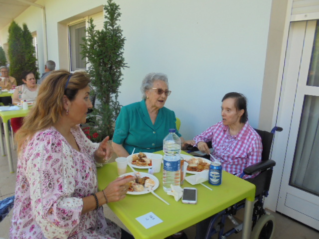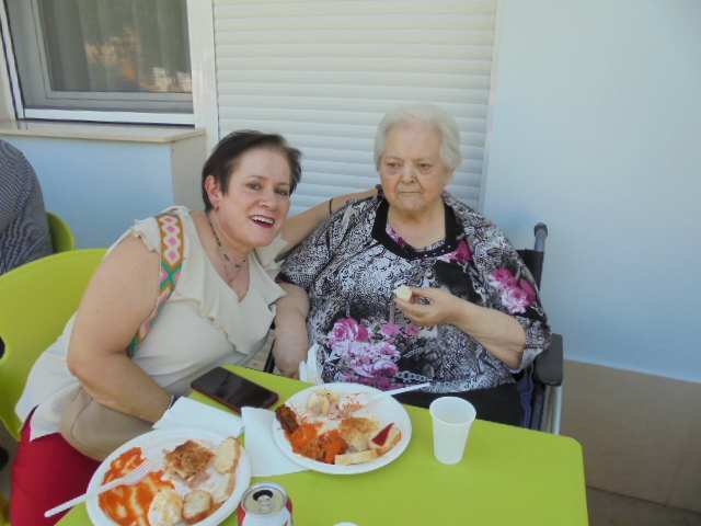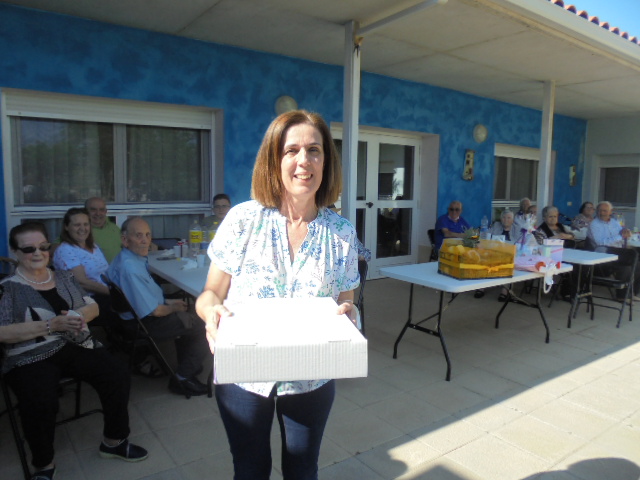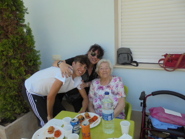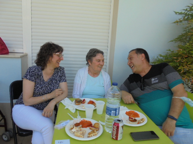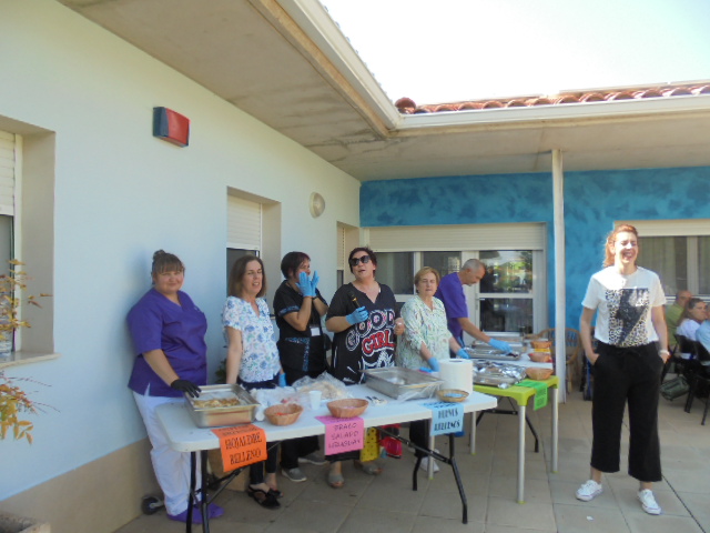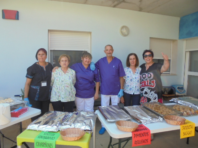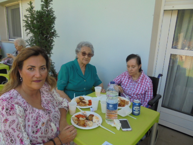 Nuestro concurso de tapas es la fiesta más esperada de todas ya que es un día de encuentro entre familiares, trabajadores y residentes. Algunos de los trabajadores hacen una tapa en cantidad suficiente para la degustación de todos los presentes y luego se hará una votación para elegir qué tapa es la que más ha gustado. Todas tienen premio. Se reparten tickets de cada una de las tapas que cada uno entrega cuando va a las mesas a buscarlas y luego vota las dos tapas que más le gustan dejando esos dos tickets de nuevo en su mesa correspondiente. Finalmente se cuentan todos los tickets y el ganador elige el premio que más le gusta y así sucesivamente hasta que todos los participantes cogen un premio. La residencia paga todos los ingredientes pero el esfuerzo es de los trabajadores que quieren participar y es de agradecer, muchísimas gracias!!!!!!!!!!!!! Tapas de este año: Mª Carmen hizo champiñones rellenos, Irina hizo hojaldre relleno de queso y jamon york, yo hice huevos rellenos, Eduardo hizo pimientos rellenos de gambas, Maria hizo hamburguesas veganas, Mónica hizo brazo salado de Uruguay, Esther hizo croquetas de bacalao, A los abuelos les encanta esta fiesta de las tapas porque  son muy elaboradas y les saben buenísimas, refrescos para todos y música para bailar!!!!!!!! qué más se puede pedir. Sale Manolo y su familia, le seguimos teniendo presente!!! Teníamos pendiente las fotos del cumple de Ana que ya las ponemos, una super sonrisa conseguimos ese día de Anita, qué mejor regalo!!!!!!!!!