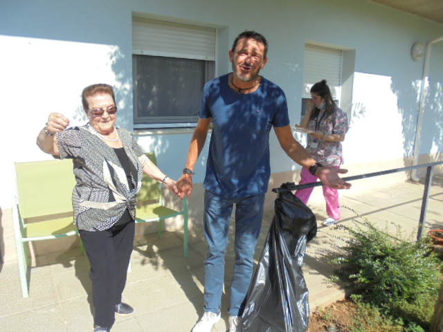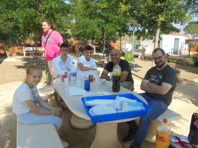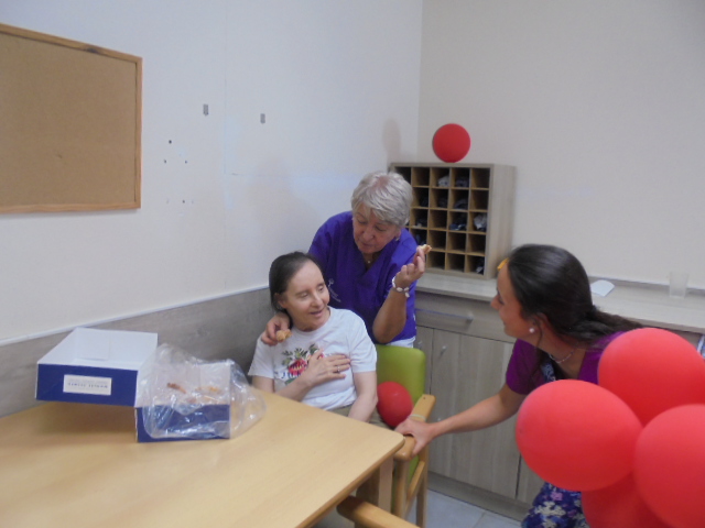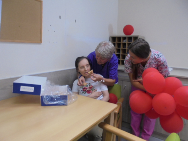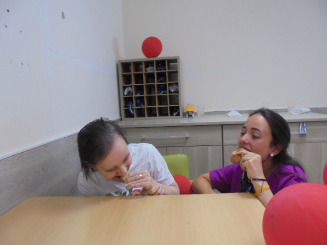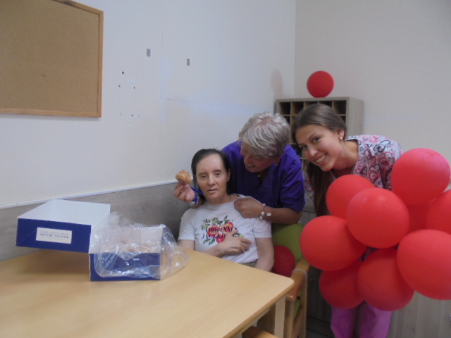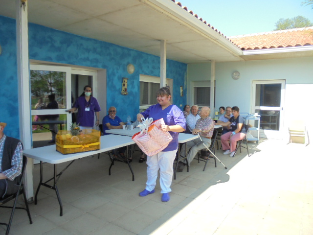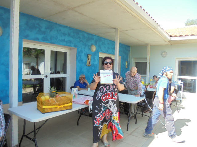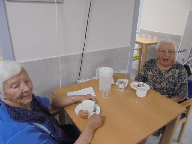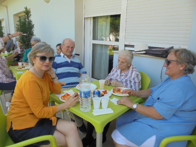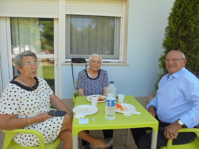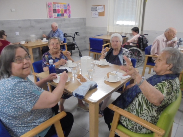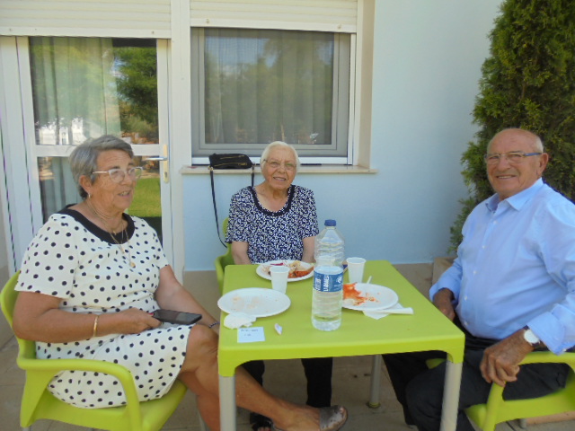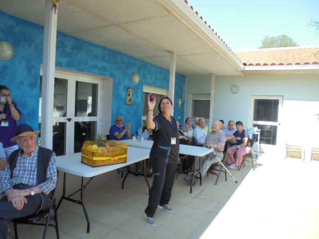 Nuestro concurso de tapas es la fiesta más esperada de todas ya que es un día de encuentro entre familiares, trabajadores y residentes. Algunos de los trabajadores hacen una tapa en cantidad suficiente para la degustación de todos los presentes y luego se hará una votación para elegir qué tapa es la que más ha gustado. Todas tienen premio. Se reparten tickets de cada una de las tapas que cada uno entrega cuando va a las mesas a buscarlas y luego vota las dos tapas que más le gustan dejando esos dos tickets de nuevo en su mesa correspondiente. Finalmente se cuentan todos los tickets y el ganador elige el premio que más le gusta y así sucesivamente hasta que todos los participantes cogen un premio. La residencia paga todos los ingredientes pero el esfuerzo es de los trabajadores que quieren participar y es de agradecer, muchísimas gracias!!!!!!!!!!!!! Tapas de este año: Mª Carmen hizo champiñones rellenos, Irina hizo hojaldre relleno de queso y jamon york, yo hice huevos rellenos, Eduardo hizo pimientos rellenos de gambas, Maria hizo hamburguesas veganas, Mónica hizo brazo salado de Uruguay, Esther hizo croquetas de bacalao, A los abuelos les encanta esta fiesta de las tapas porque  son muy elaboradas y les saben buenísimas, refrescos para todos y música para bailar!!!!!!!! qué más se puede pedir. Sale Manolo y su familia, le seguimos teniendo presente!!! Teníamos pendiente las fotos del cumple de Ana que ya las ponemos, una super sonrisa conseguimos ese día de Anita, qué mejor regalo!!!!!!!!!