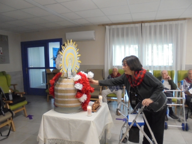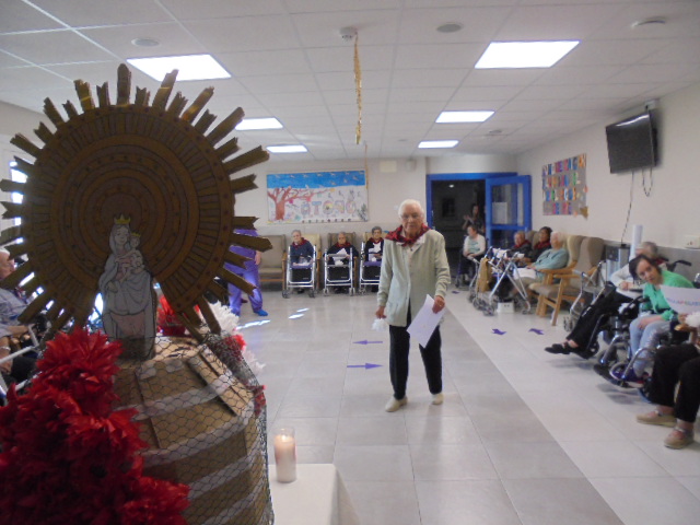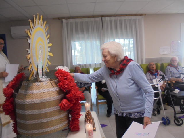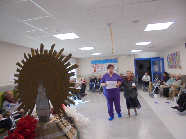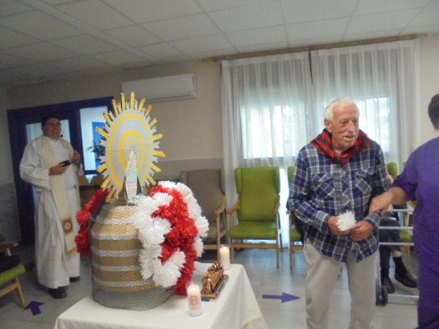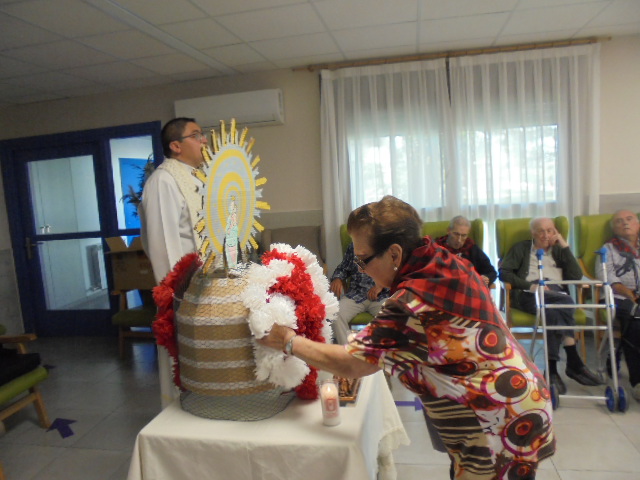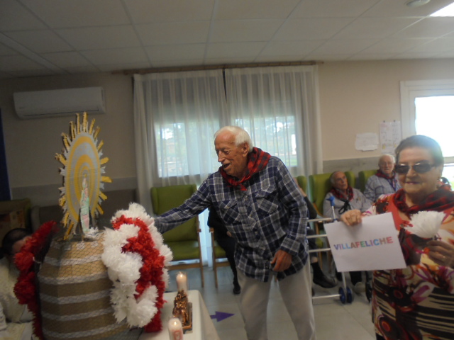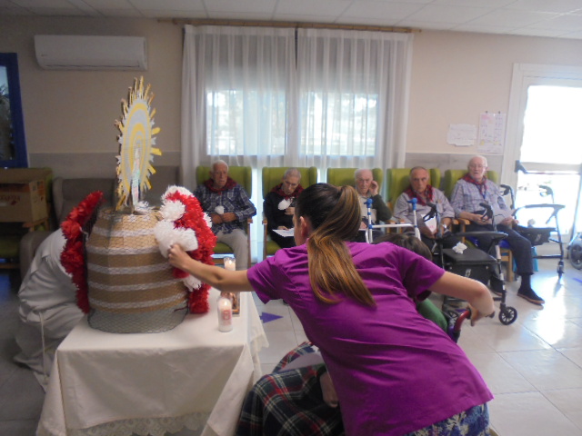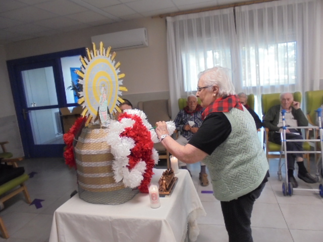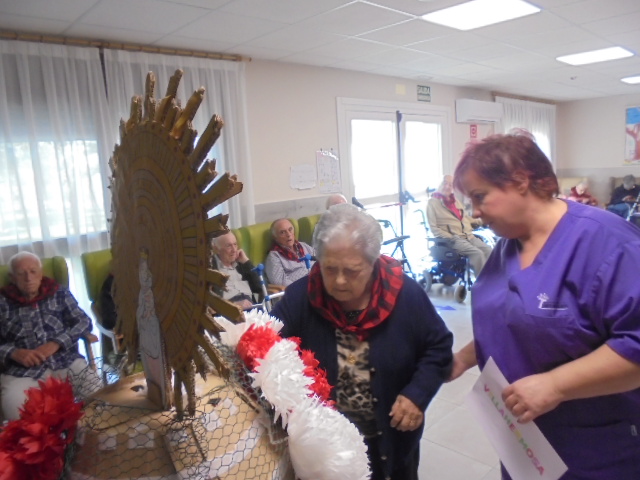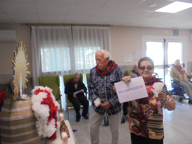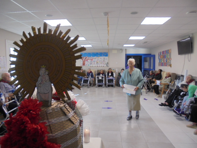 Como todos los años nuestra ofrenda de flores a la Virgen del Pilar se vive con mucha ilusión. Comienzan los preparativos la semana de antes confeccionando las flores para el manto y se preparan los carteles de cada pueblo. Aprovecho también para poner las fotos de Elena, la terapeuta ocupacional, que vino vestida de baturra como fue en la ofrenda,  para que los abuelos pudiesen verla, un gran detalle que animó a todos. Nuestro cura Federico pone la guinda del pastel ofreciéndoles a todos nuestros mayores una misa que no olvidarán en todo el año. Gracias Federico y Viva la Virgen del Pilar!!!! La próxima semana os pondremos los talleres del Pilar y la comida de ese día tan especial....