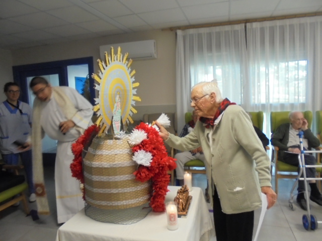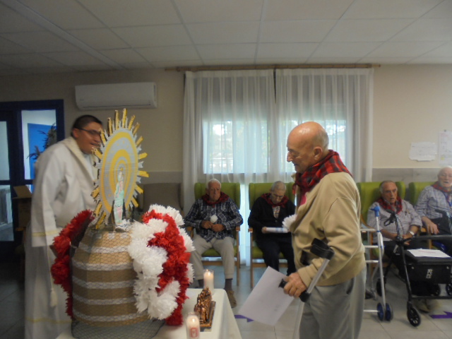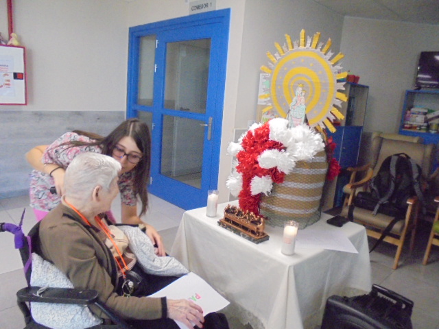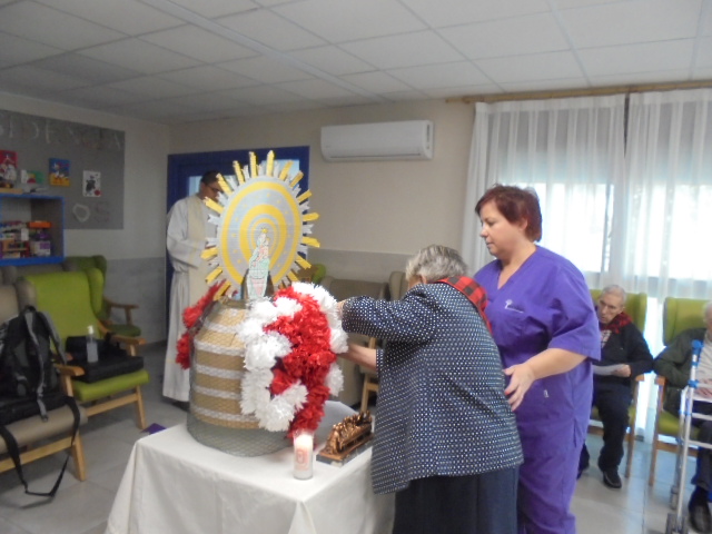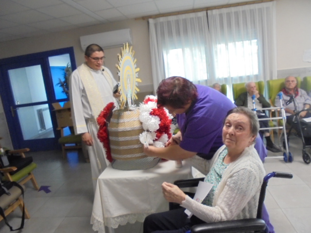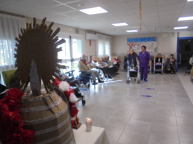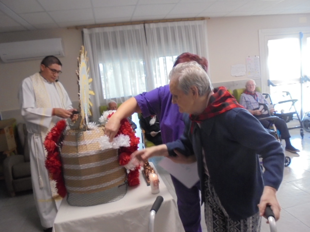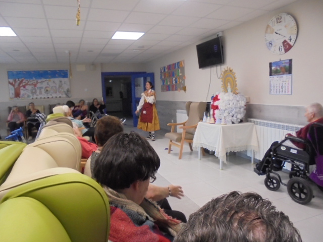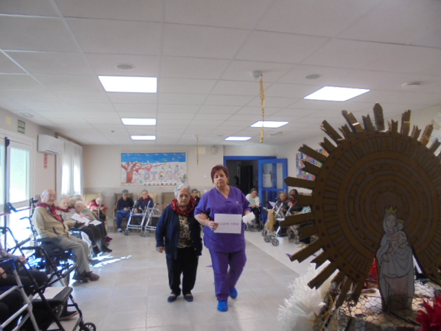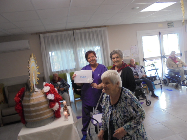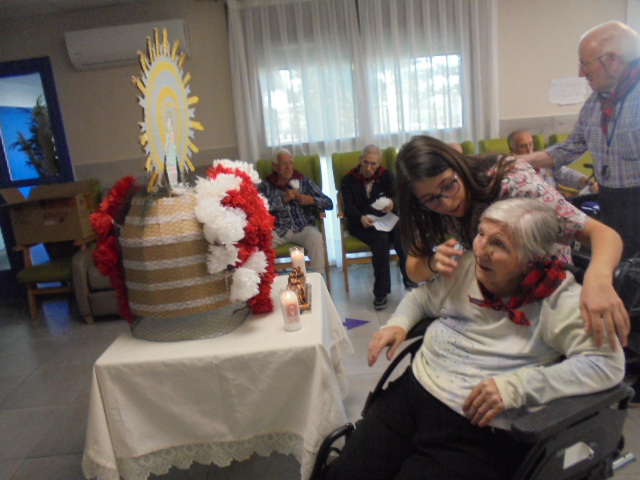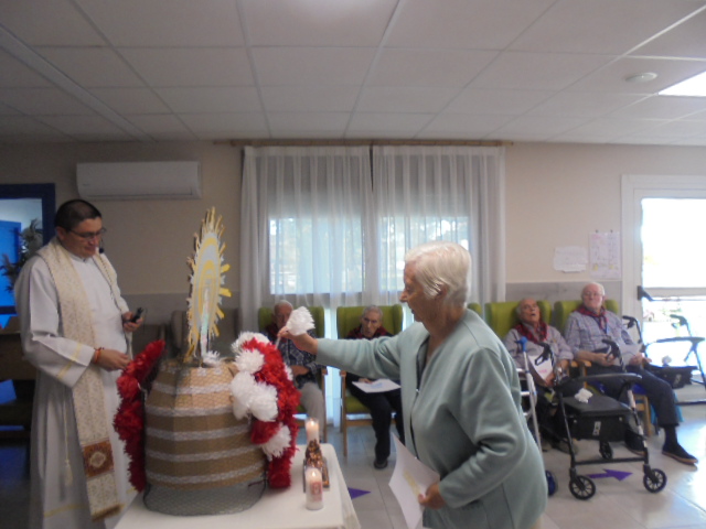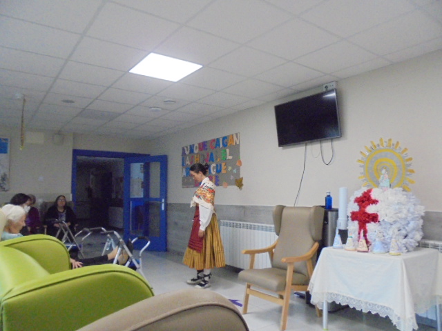 Como todos los años nuestra ofrenda de flores a la Virgen del Pilar se vive con mucha ilusión. Comienzan los preparativos la semana de antes confeccionando las flores para el manto y se preparan los carteles de cada pueblo. Aprovecho también para poner las fotos de Elena, la terapeuta ocupacional, que vino vestida de baturra como fue en la ofrenda,  para que los abuelos pudiesen verla, un gran detalle que animó a todos. Nuestro cura Federico pone la guinda del pastel ofreciéndoles a todos nuestros mayores una misa que no olvidarán en todo el año. Gracias Federico y Viva la Virgen del Pilar!!!! La próxima semana os pondremos los talleres del Pilar y la comida de ese día tan especial....
