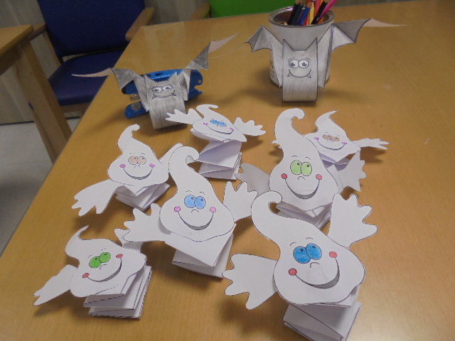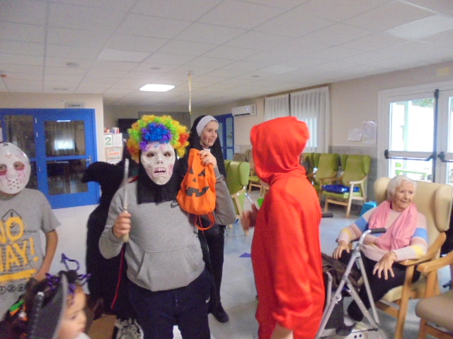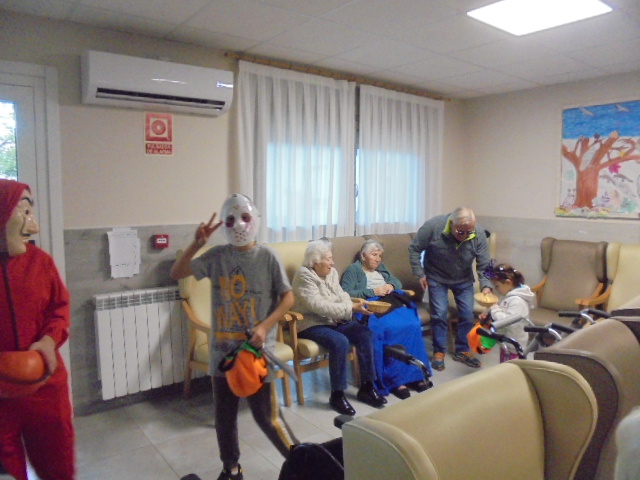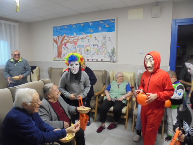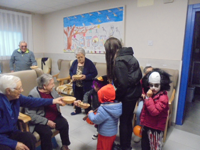 Agradecemos a la Asociación Virgen de los Remedios que viniesen los niños disfrazados este Halloween a recoger los caramelos, pues estaban todos los abuelos esperándolos. También aprovecharon a comer caramelos mientras llegaban.... También realizaron varios talleres para ambientar la residencia con murciélagos y fantasmas!!!!!! También ha sido el cumpleaños de Consuelo, que trajo su hijo unos brazos de gitano de la panadería de su pueblo en Nuévalos,  y de  Manuel que invitó a bizcochos de chocolate!!!