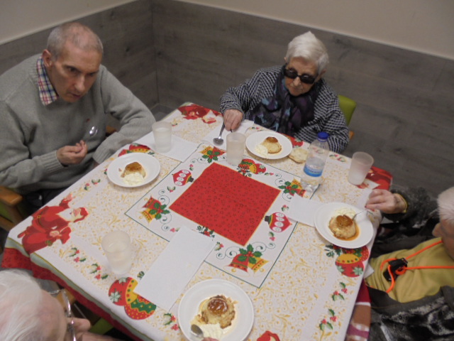 Hemos preparado este año los menús de Navidad con mucha ilusión para sorprenderles y que disfrutaran de esos días. Nochebuena: Cóctel de gambas y Lubina al orio, Flan de Huevo, Turrones y  mazapán, Cava y sidra. Navidad: Canapés variados y langostinos, Ternasco asado con patatas panadera, Tiramisú, Turrón y mazapán,  Cava y sidra. Como todos los años los familiares que quieren pueden venir a comer o cenar con ellos, siempre son bienvenidos y forman parte de nuestra gran familia. Siempre les explicamos el menú a todos y lo hablamos con ellos para saber su opinión, también les preguntamos tras la degustación y parece ser que nos ponen buena nota!!! Uno de los talleres que han hecho es el de los árboles de Navidad con manteles que compartimos con vosotros. También han hecho las flores de Pascua que quedaron geniales y lo publicamos en el Instagram de la residencia. Feliz Año a todos y todas desde Residencia Campo Romanos!!!!!!!!!!!!!!!1