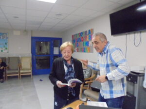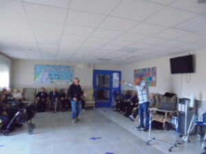 Nos ha visitado Pedro Enguita, que con su teclado nos   cantó en directo  boleros, pasodobles y  rumbas. Hizo trucos de magia,  regaló cartas y su libro " Abrazos virtuales y entusiasmo a raudales".  Se animó también Anselmo con las jotas y dedicó una  a las trabajadoras y otra a mí.  Mari recitó, Josefina leyó unas líneas del libro de Pedro y Maria cantó....una tarde muy entretenida. Muchas gracias a Pedro y su mujer por ser tan generosos con nuestros mayores y además les invitaron a pastas!!!!!!!!!!! Tenemos también un taller chulísimo para la confección de unas flores de Pascua increíblemente bonitas!!!