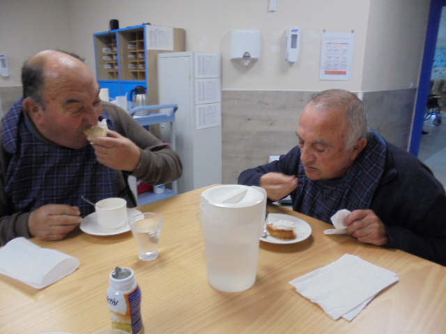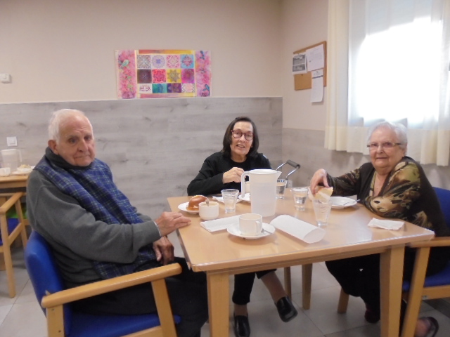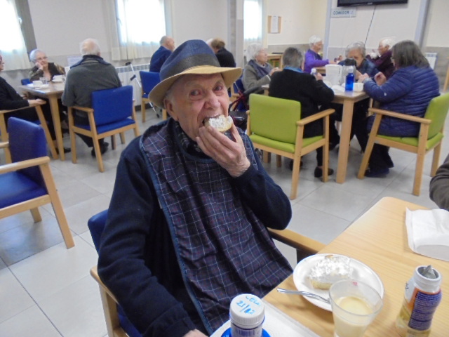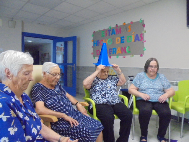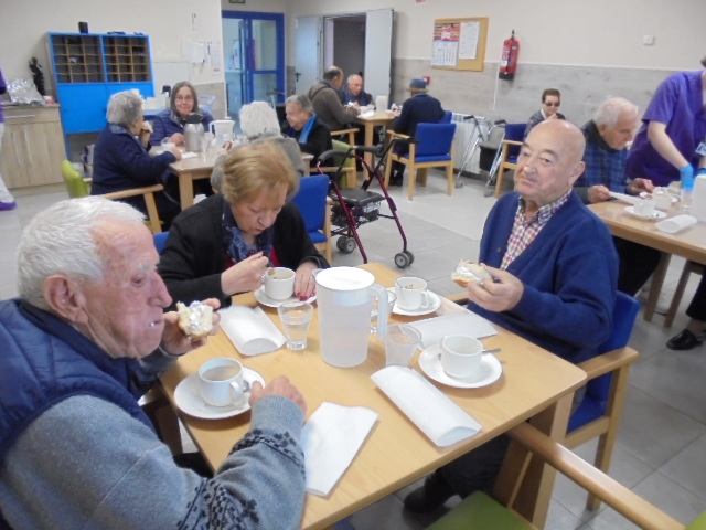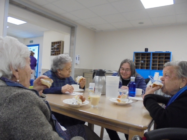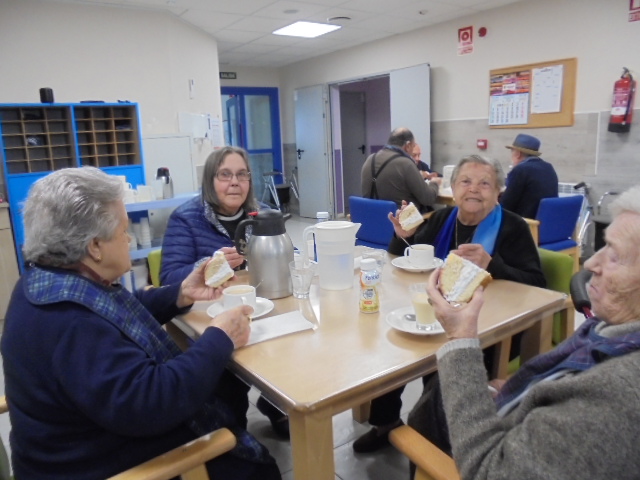 Vamos con retraso y teníamos pendiente las fotos de la merienda de Santa Águeda y he rescatado dos talleres que tenía las fotos sin poner y salen personas que ya no están y forman parte de nuestra familia. Nos acordamos de todos ellos porque siempre están presentes. Elena los moviliza con un taller con la pelota grande de goma y con el cono.