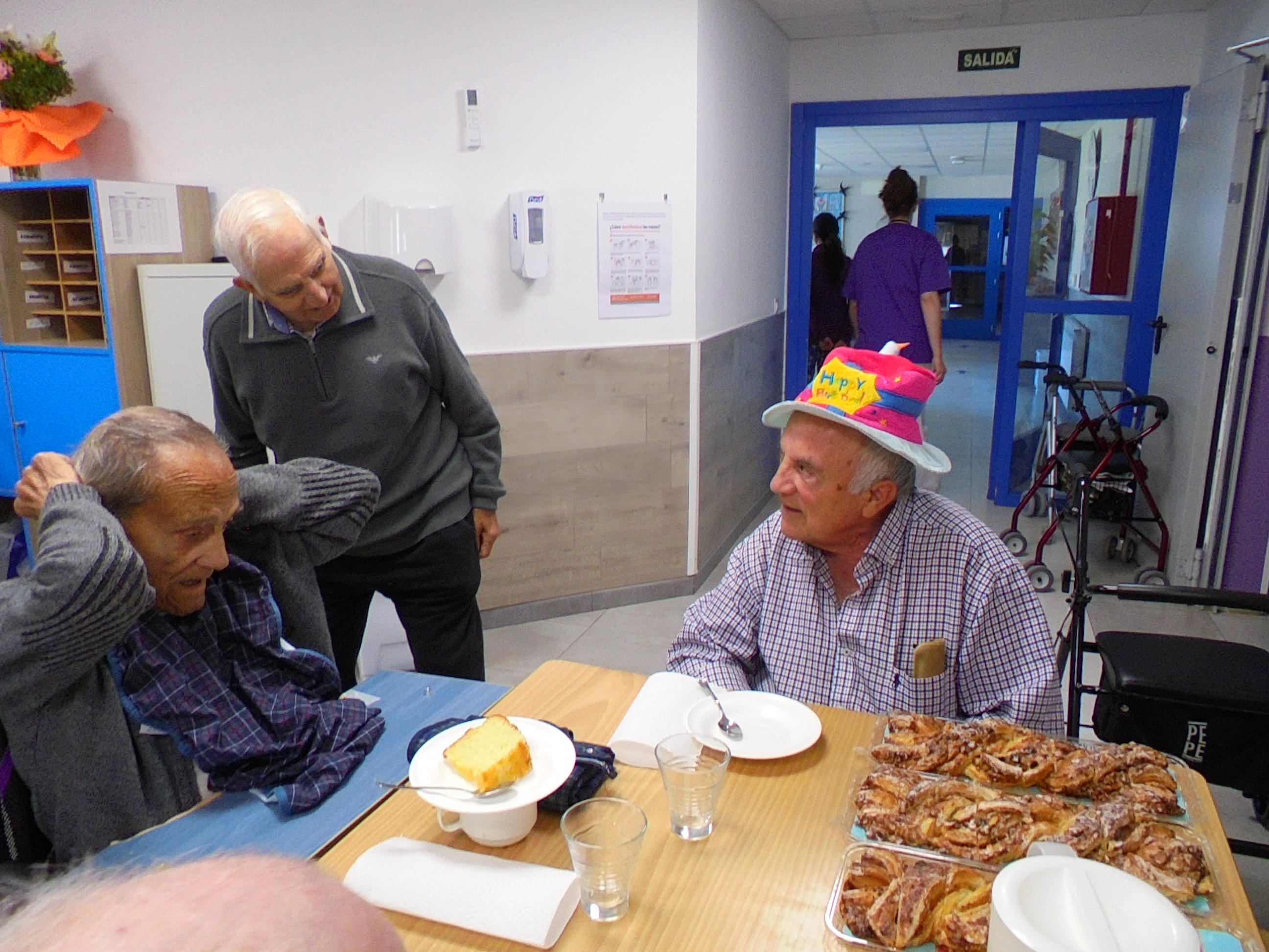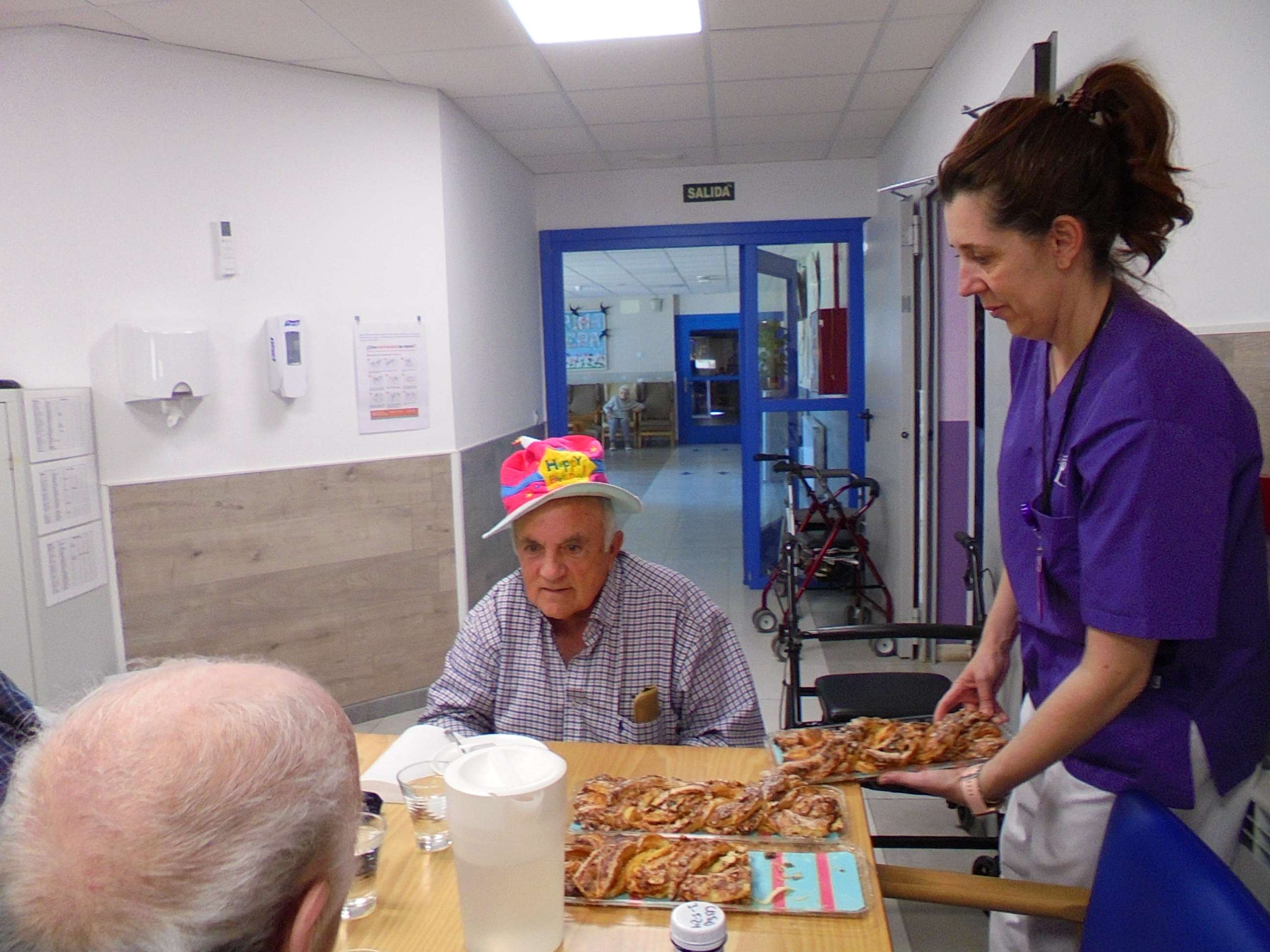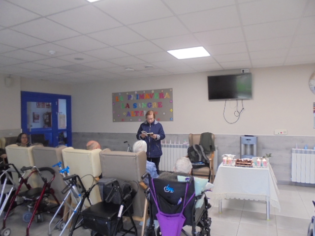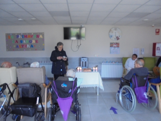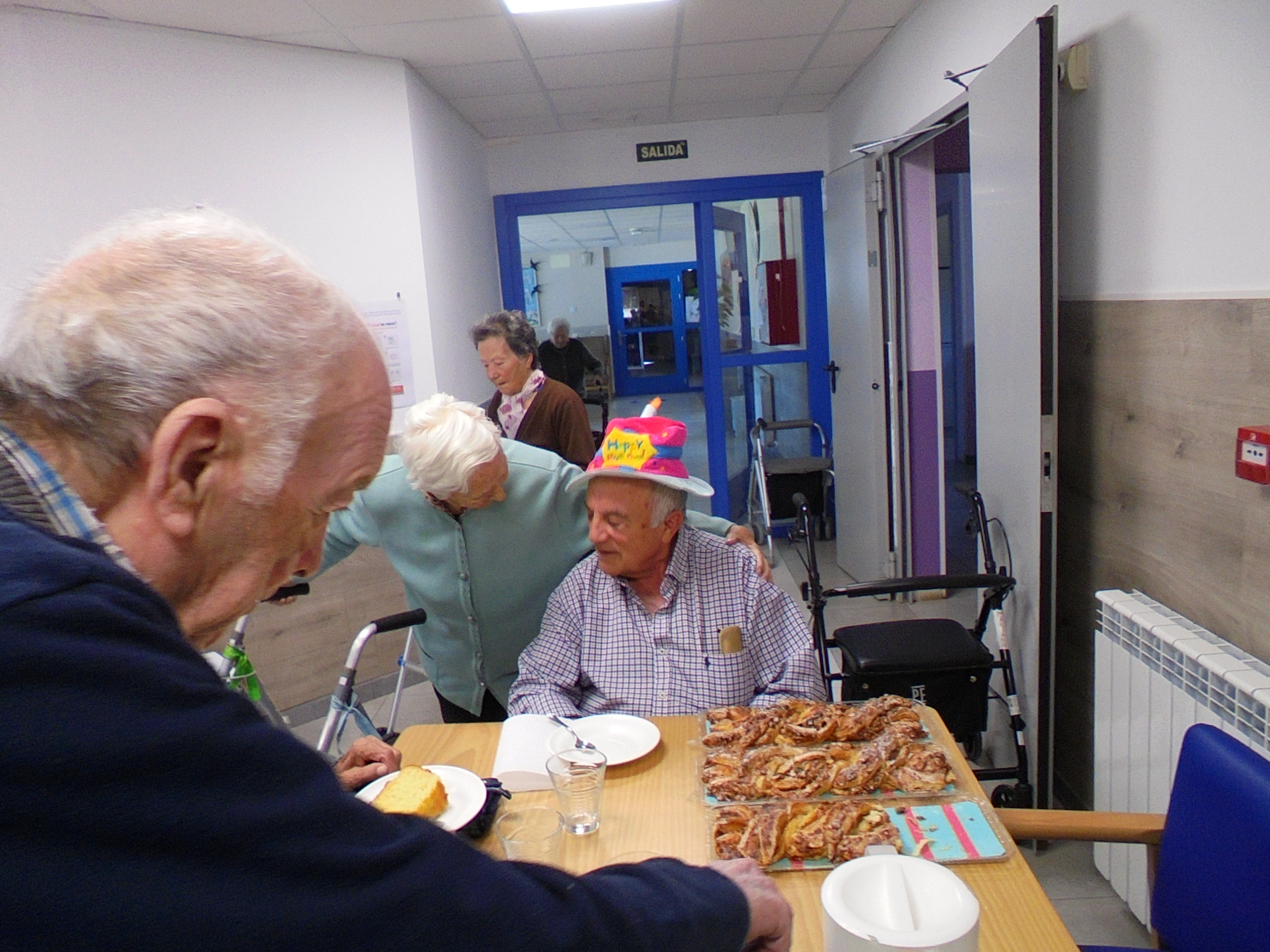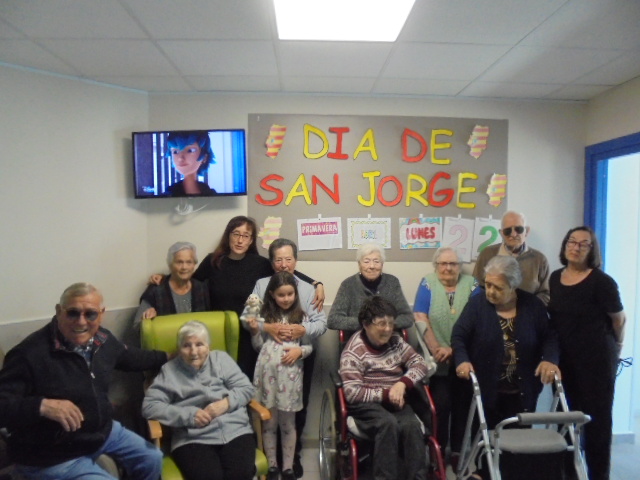 Para San Jorge elaboraron un taller y adornaron el mural con Carolina,  les quedó chulísimo!! También cumplieron años tres de nuestros usuarios:  Mariano con bizcocho y trenzas,  Carmen con un tarta y  Juan Antonio con tortas y chocolate a la taza. Vamos que no paramos!!!!!!! Y tenemos que agradecer a nuestro cura Federico y a las monjas Hijas de la Caridad de Zaragoza que el 30 de marzo celebraron la Pascua con nuestros mayores, con música en directo y sus guitarras. Quedaron encantados con esa tarde tan especial que nos ofrecieron. Muchas gracias Federico y sus acompañantes!!!!!!!!!!!!