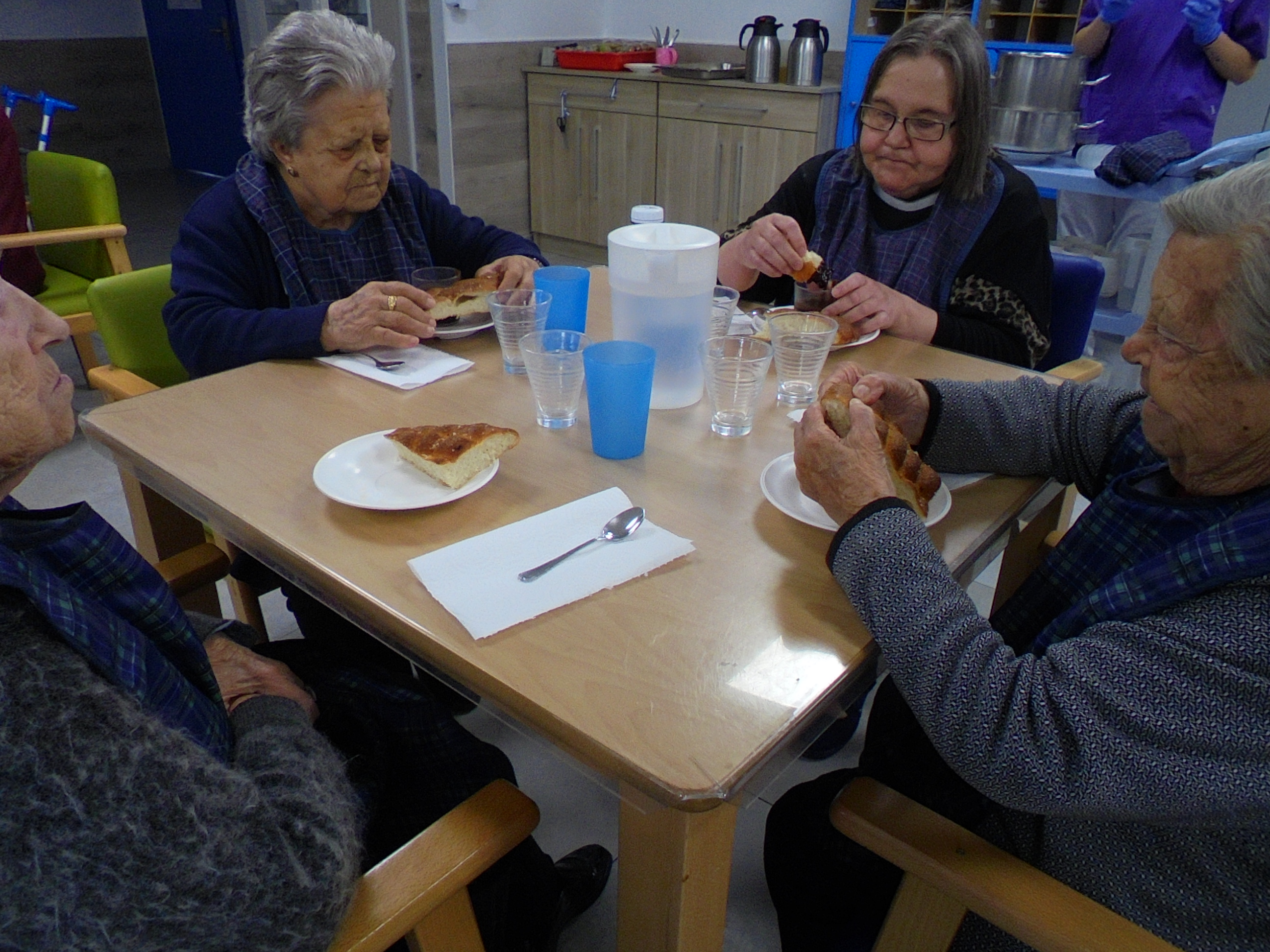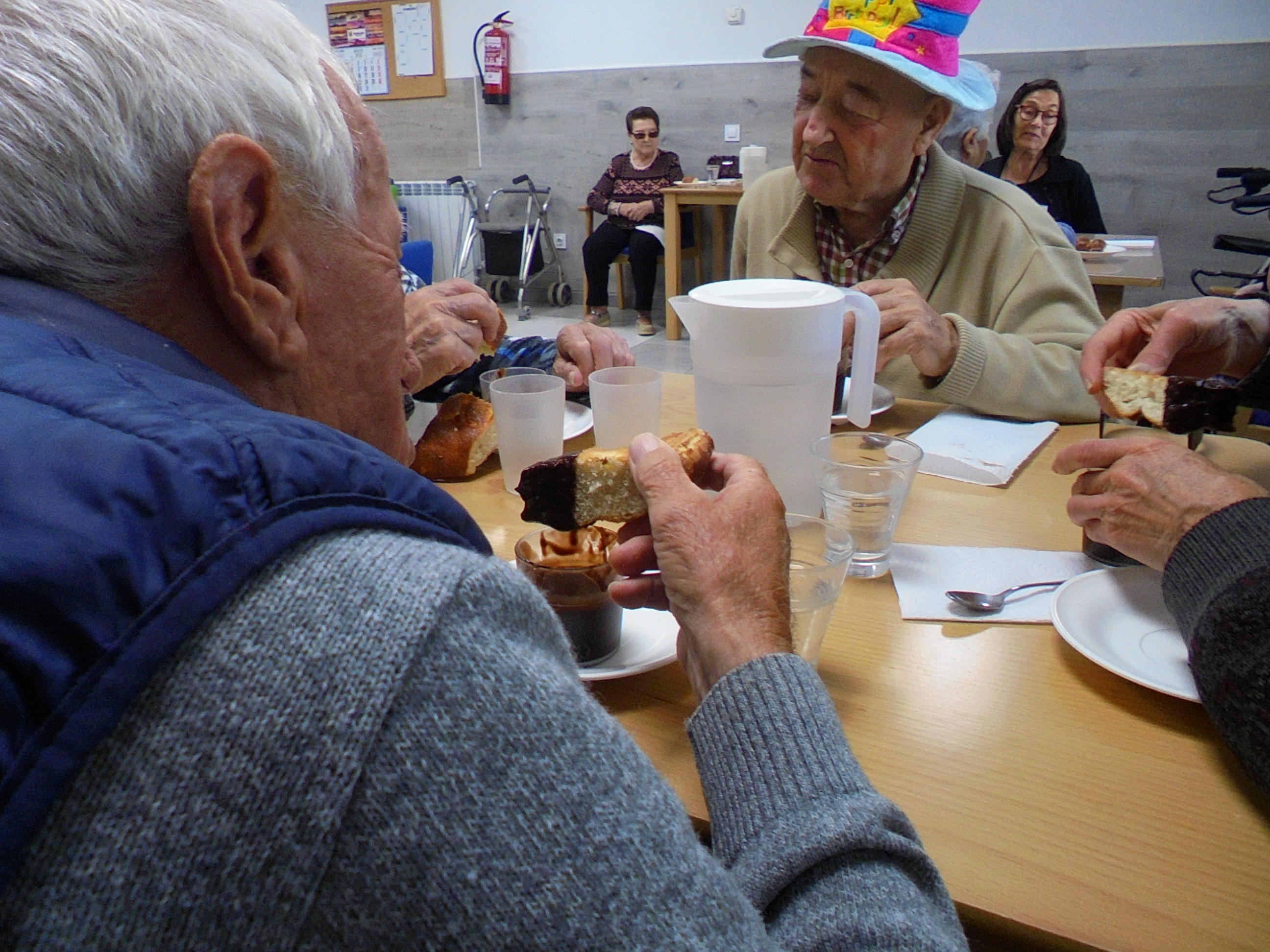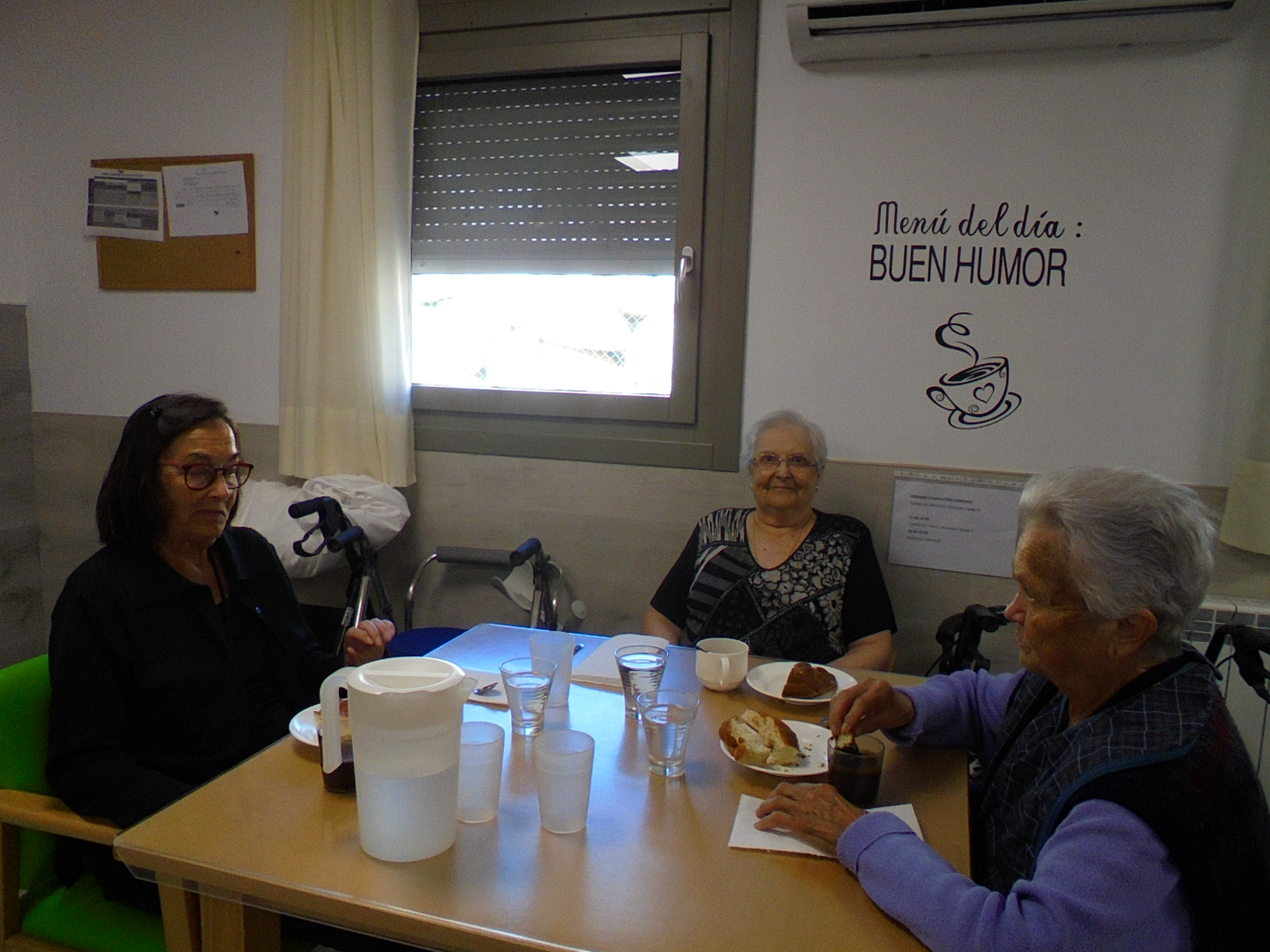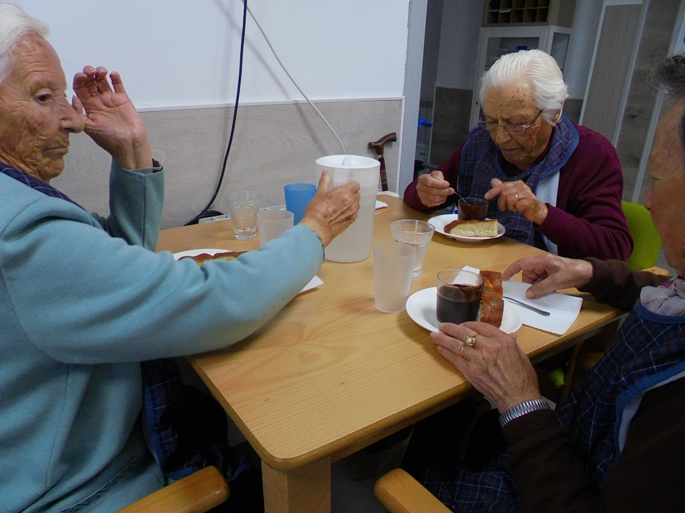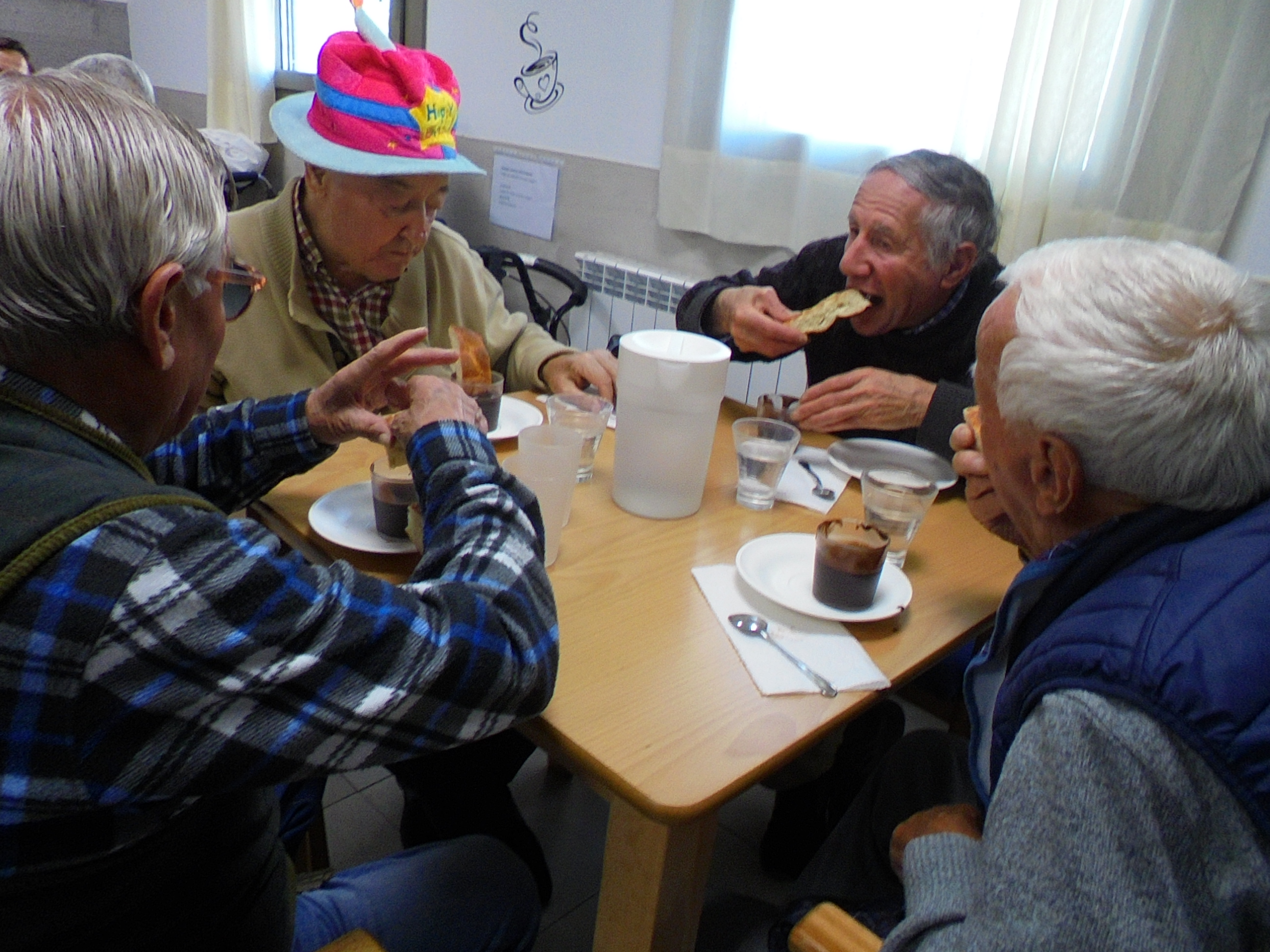 Para San Jorge elaboraron un taller y adornaron el mural con Carolina,  les quedó chulísimo!! También cumplieron años tres de nuestros usuarios:  Mariano con bizcocho y trenzas,  Carmen con un tarta y  Juan Antonio con tortas y chocolate a la taza. Vamos que no paramos!!!!!!! Y tenemos que agradecer a nuestro cura Federico y a las monjas Hijas de la Caridad de Zaragoza que el 30 de marzo celebraron la Pascua con nuestros mayores, con música en directo y sus guitarras. Quedaron encantados con esa tarde tan especial que nos ofrecieron. Muchas gracias Federico y sus acompañantes!!!!!!!!!!!!