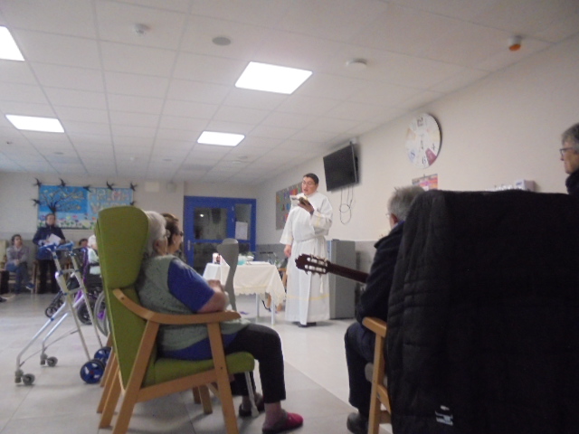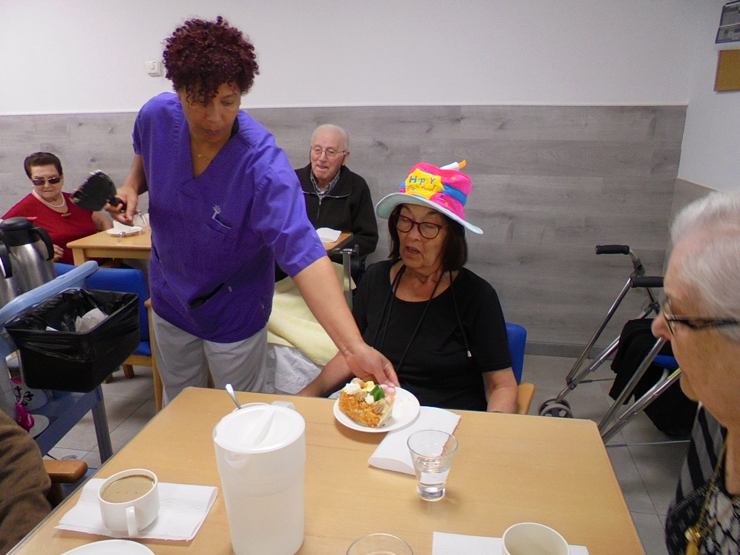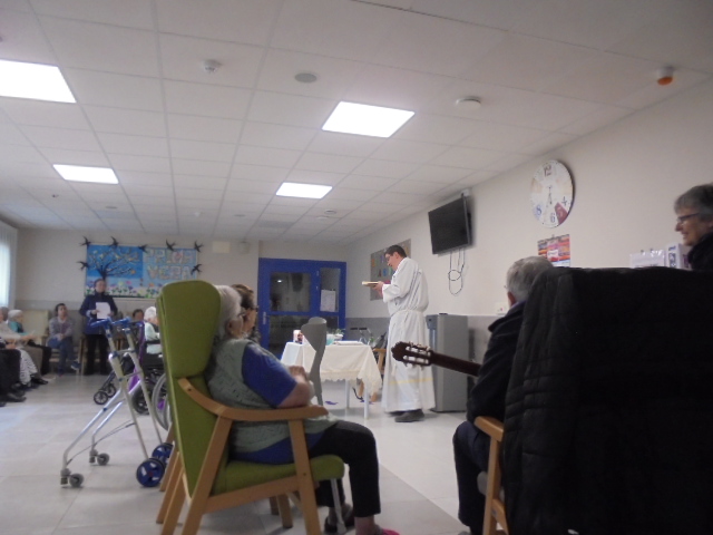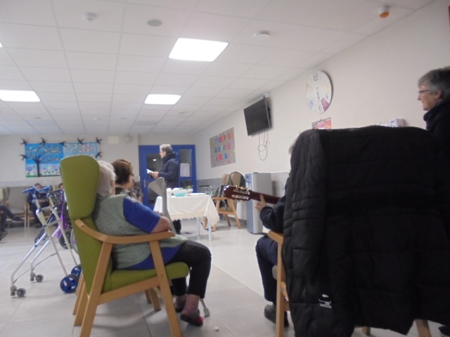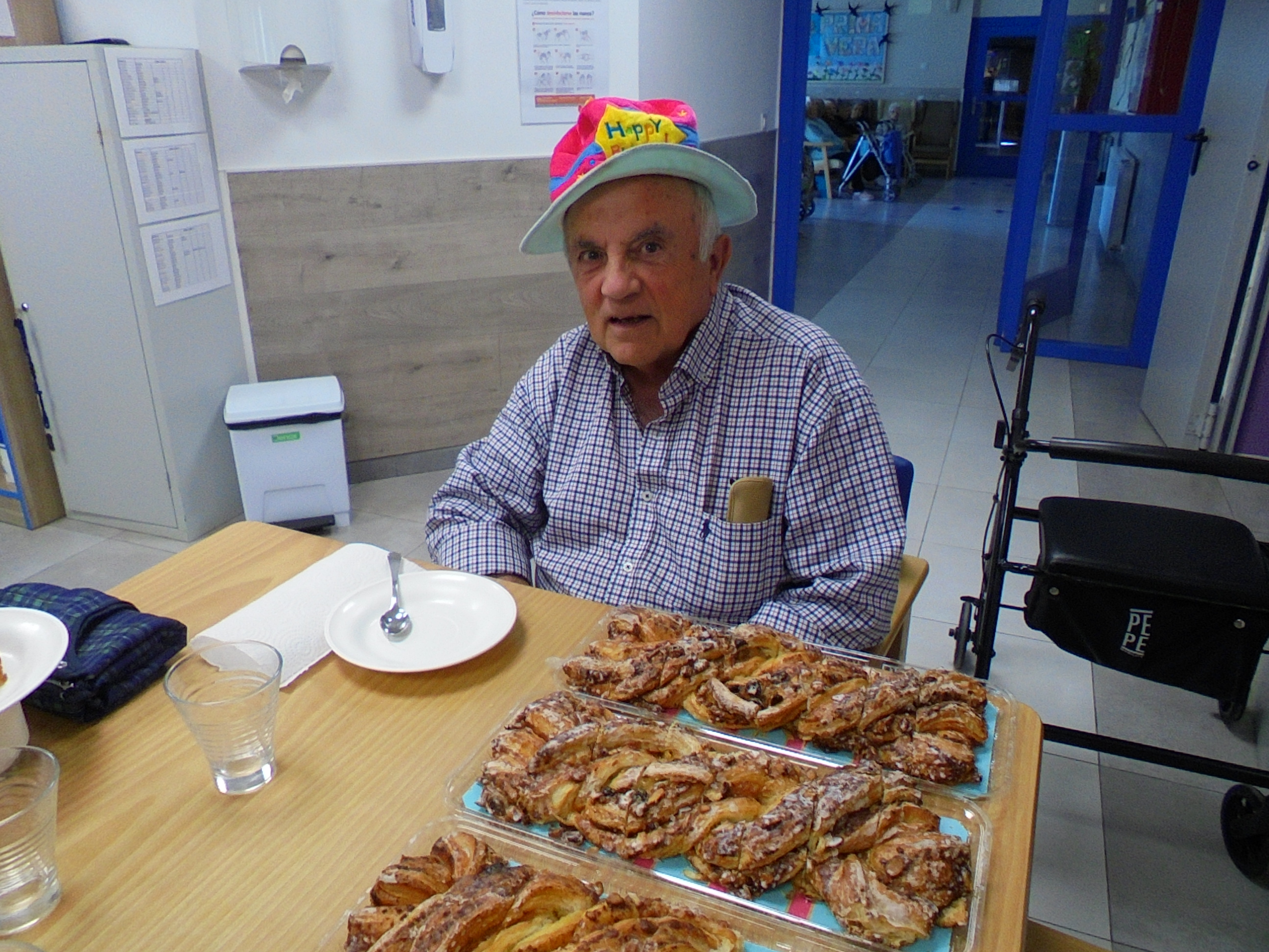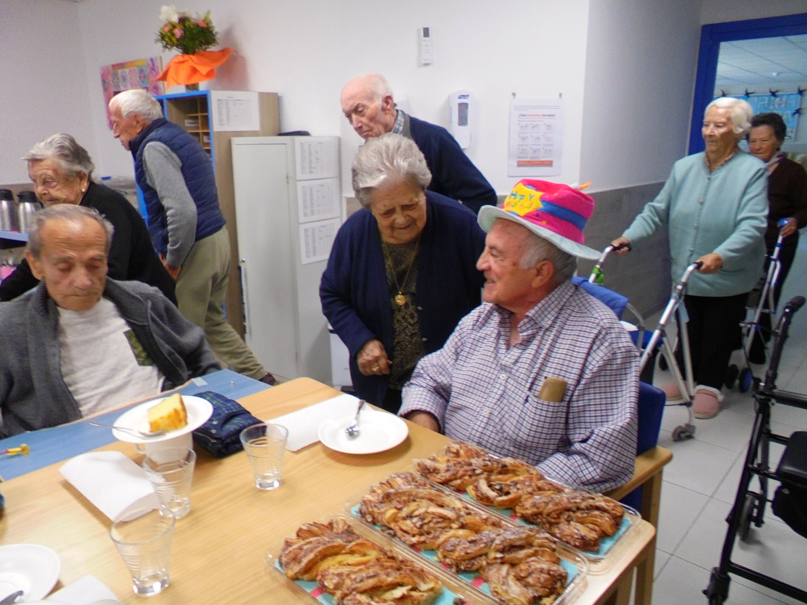 Para San Jorge elaboraron un taller y adornaron el mural con Carolina,  les quedó chulísimo!! También cumplieron años tres de nuestros usuarios:  Mariano con bizcocho y trenzas,  Carmen con un tarta y  Juan Antonio con tortas y chocolate a la taza. Vamos que no paramos!!!!!!! Y tenemos que agradecer a nuestro cura Federico y a las monjas Hijas de la Caridad de Zaragoza que el 30 de marzo celebraron la Pascua con nuestros mayores, con música en directo y sus guitarras. Quedaron encantados con esa tarde tan especial que nos ofrecieron. Muchas gracias Federico y sus acompañantes!!!!!!!!!!!!