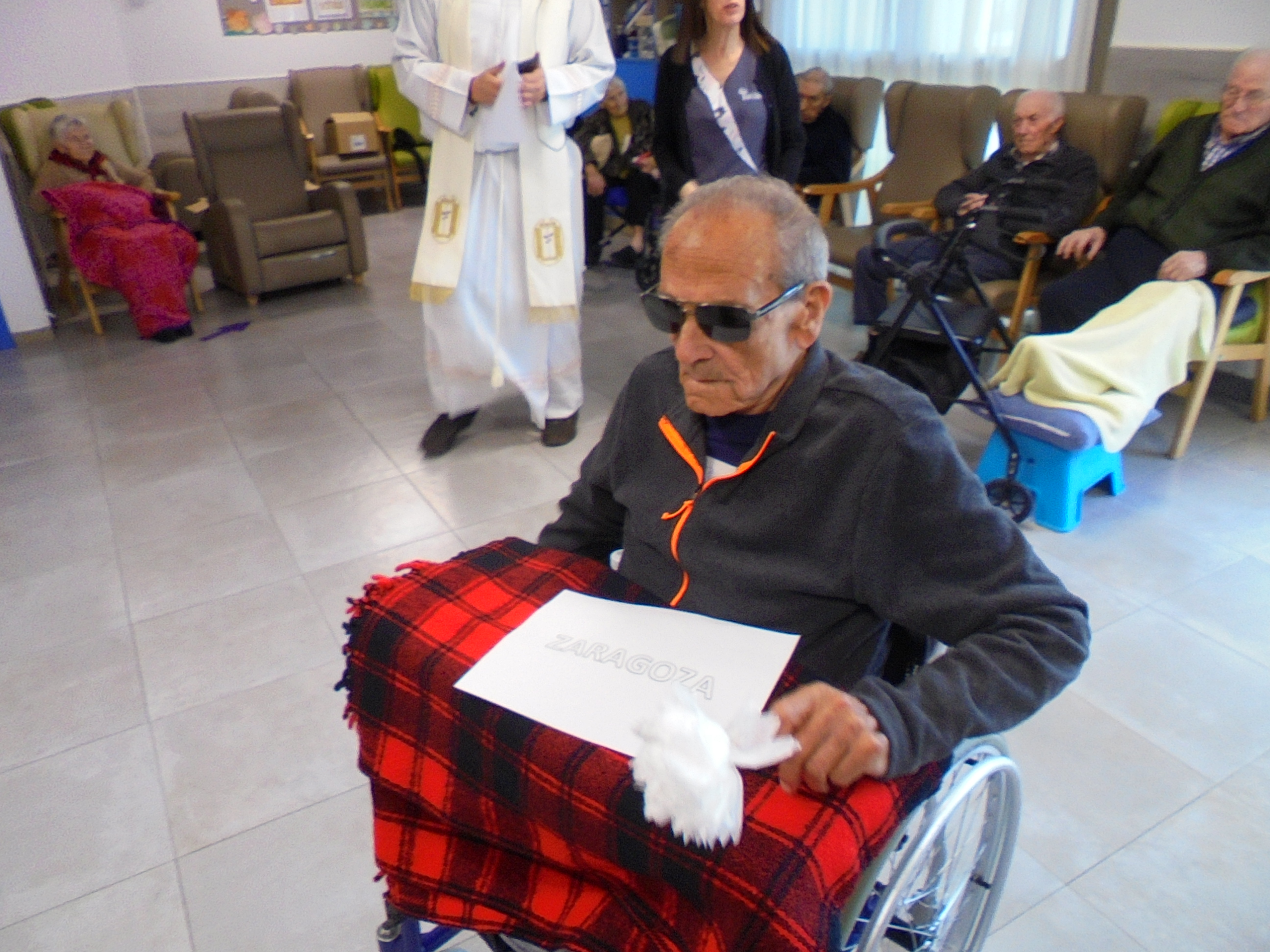 Terminamos este mes de octubre compartiendo con todos vosotros la misa que nuestro cura  Federico celebró con nuestros mayores para la ofrenda del Pilar. Gracias Federico por hacerles tan felices esa mañana!! Además disfrutaron de una comida especial: chuletas de ternasco con patatas a la panadera, ensalada variada y un delicioso flan de postre!!!
