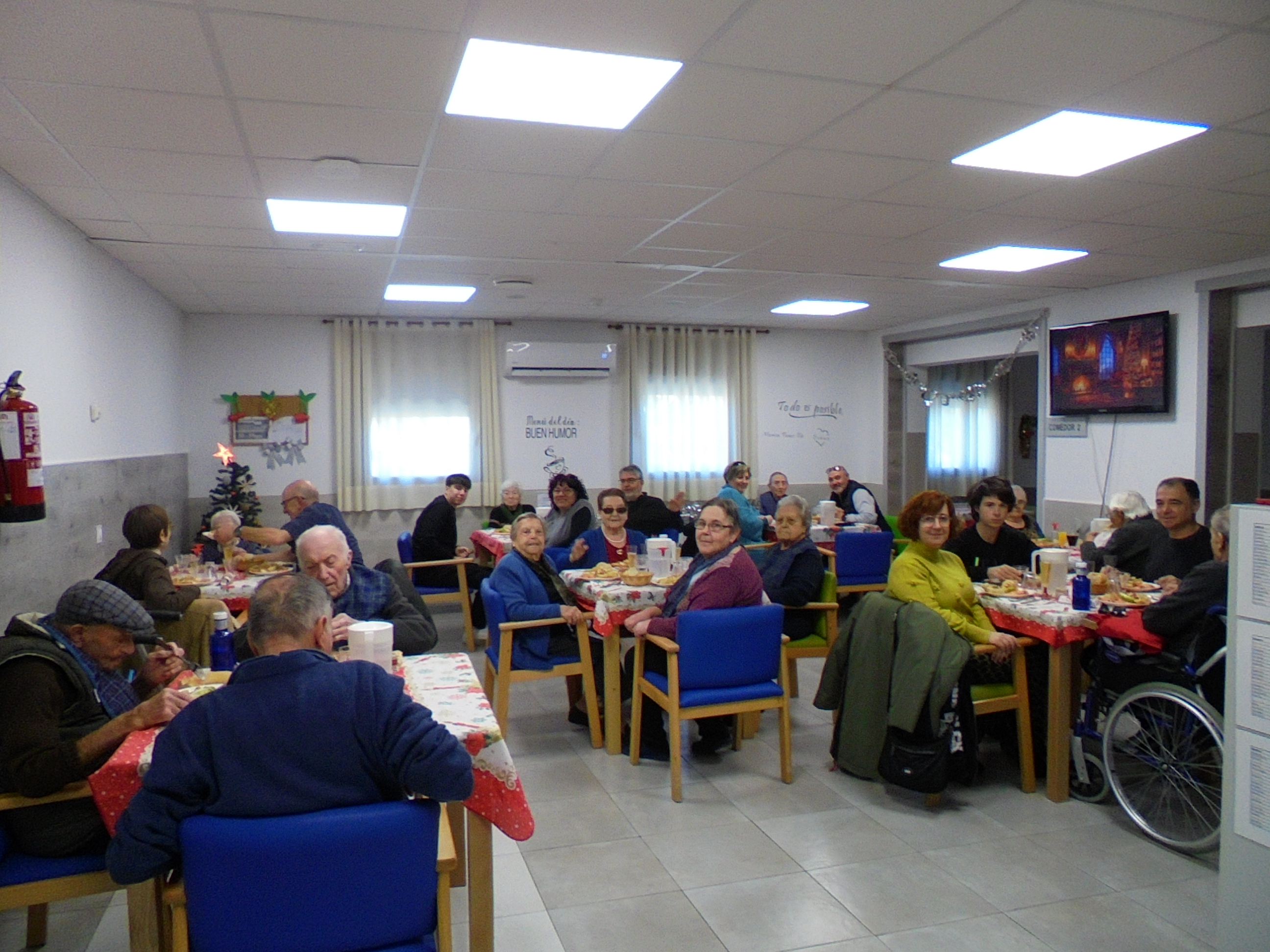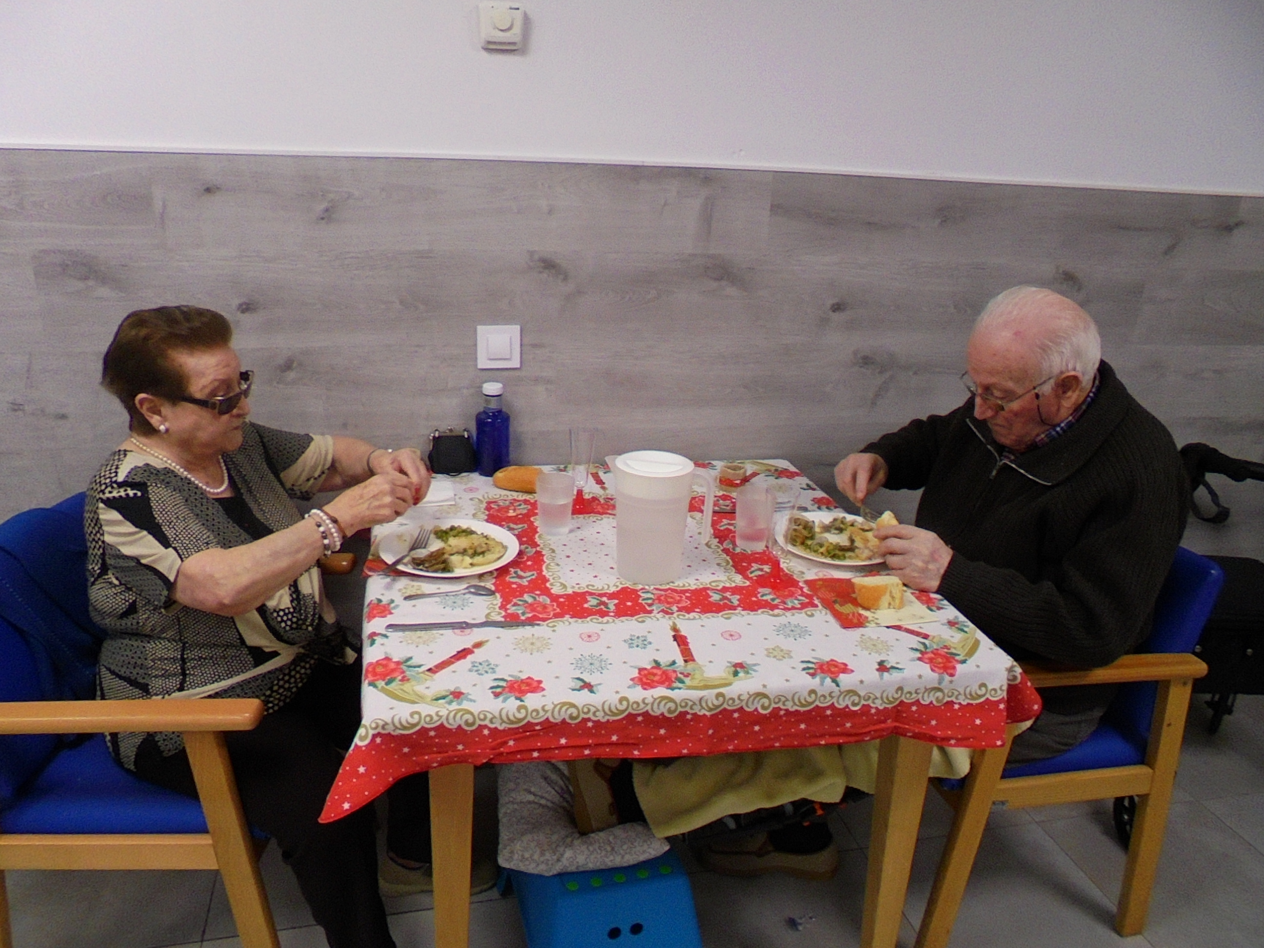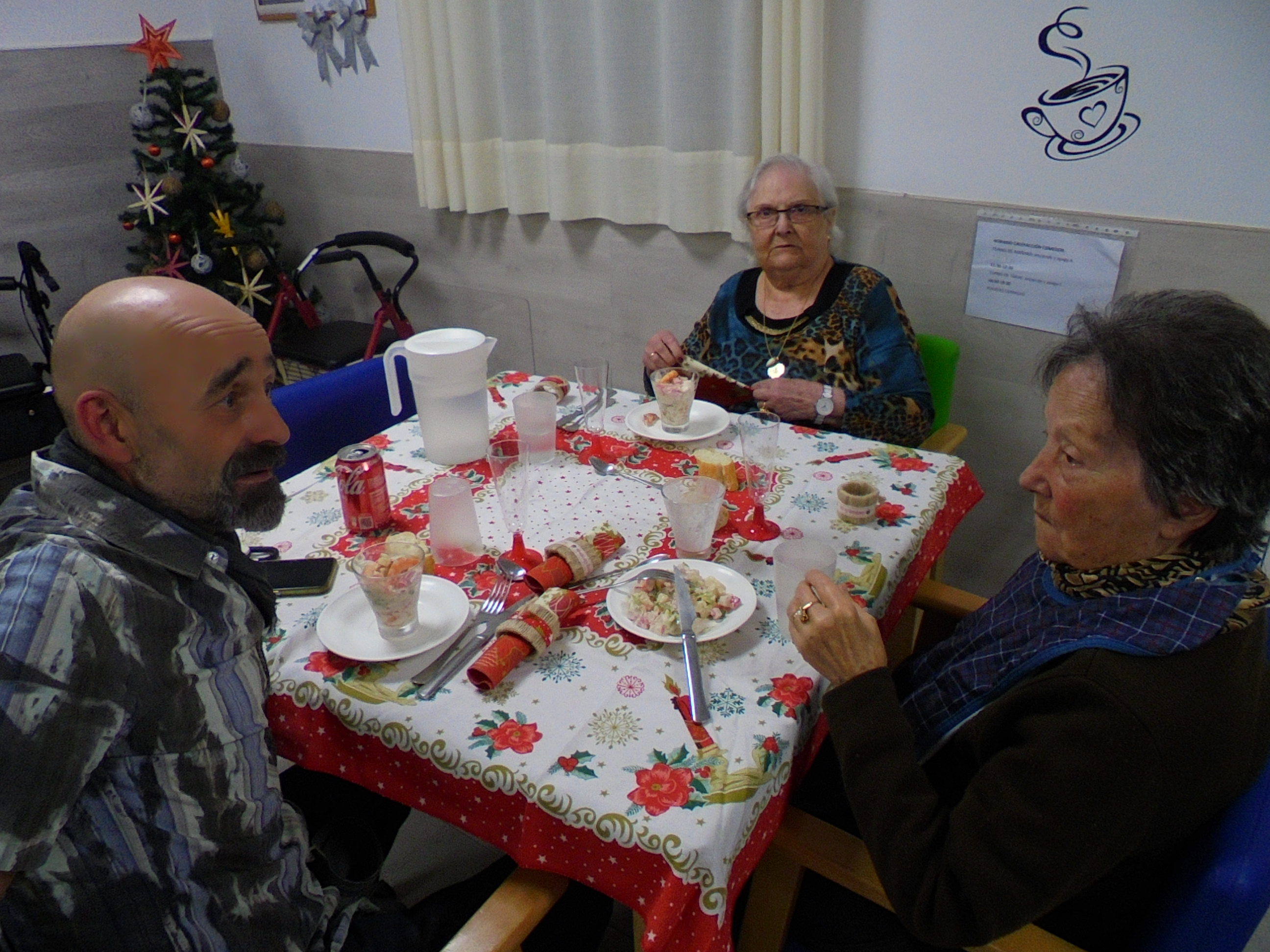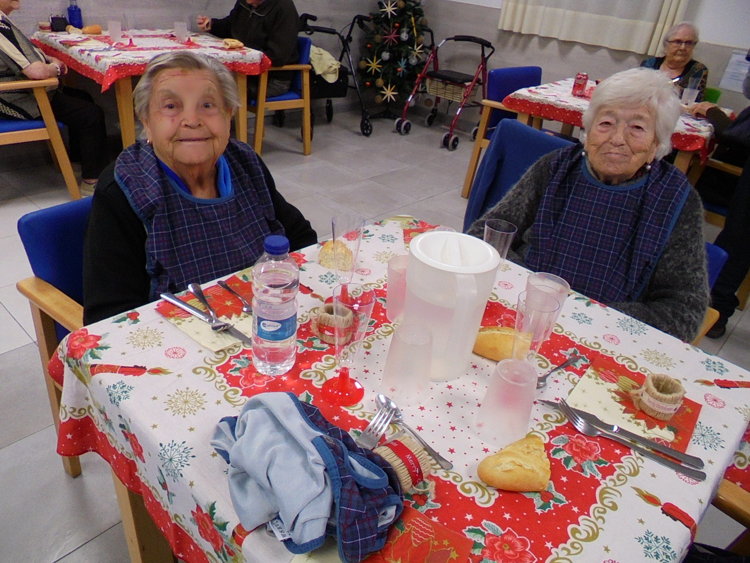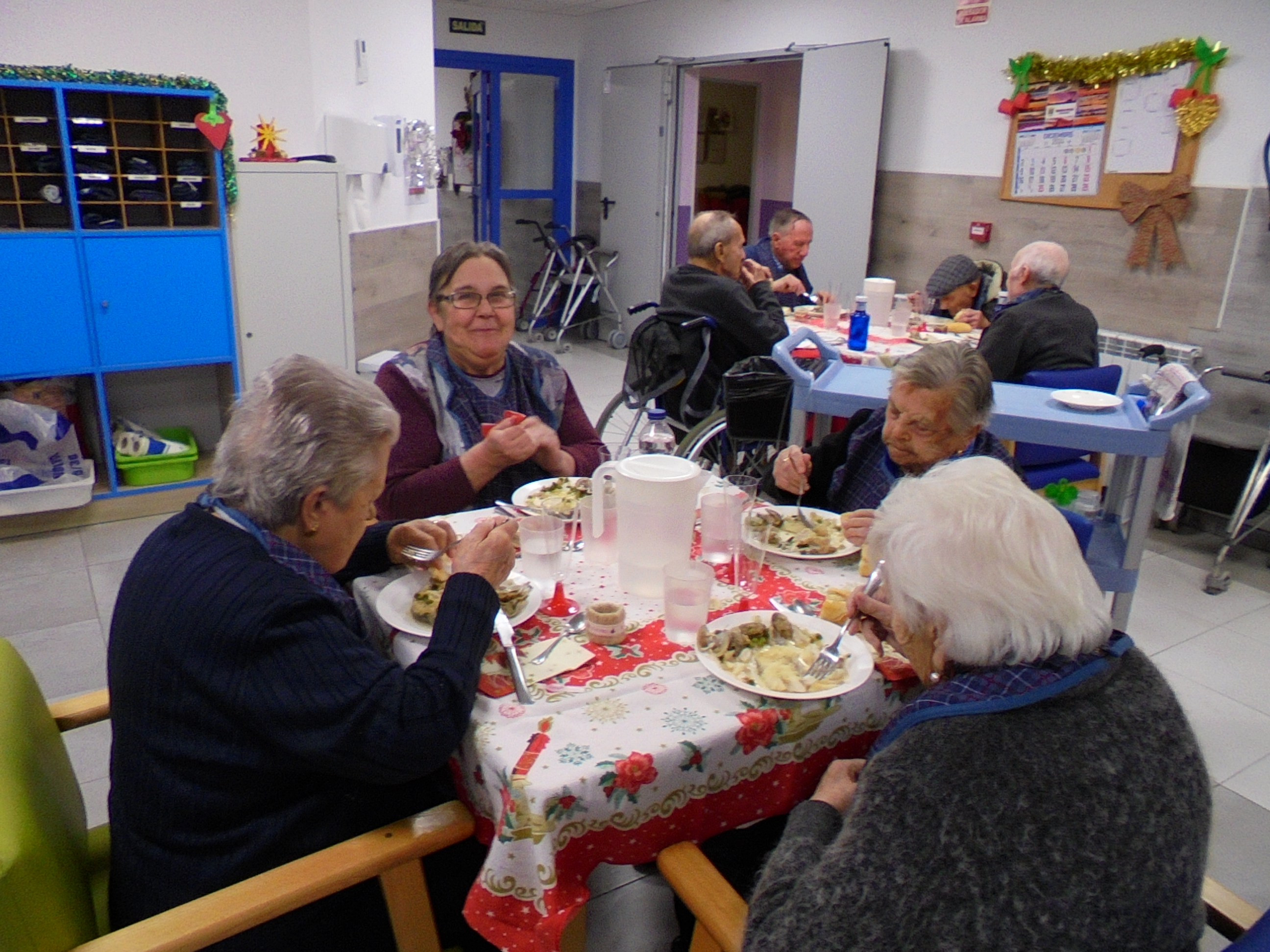 Todos emocionados con la misa de Navidad que nuestro cura Federico nos ofreció en estos días, pudieron besar al Niño Jesús y pasar una mañana muy agradable. Muchas gracias Federico por tu disponibilidad!!! Hemos tenido para la cena de Nochebuena: cóctel de langostinos, merluza en salsa verde, macedonia de frutas al ron y turrones y sidra. Para Navidad:  canapés variados y langostinos, ternasco asado con patatas panaderas, tiramisú, turrones y sidra. Los menús los hablamos con ellos antes de elegirlos y lo que más les apetecía era el ternasco como buenos maños!!!