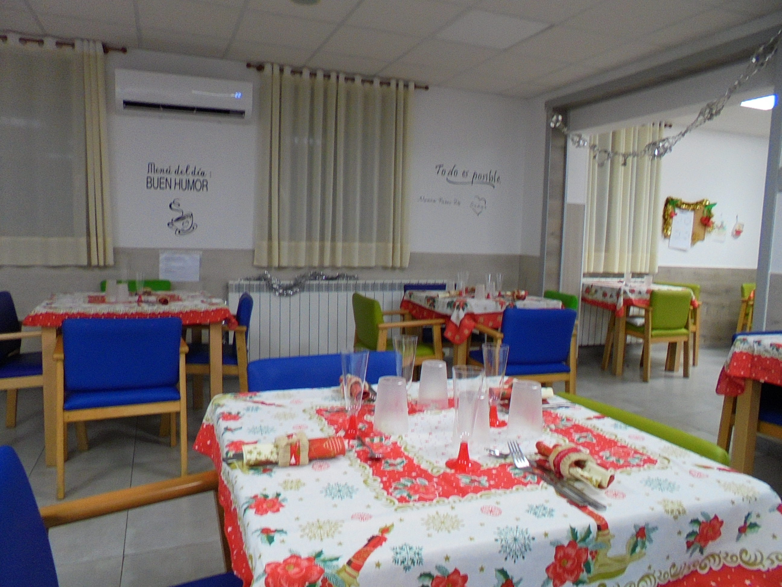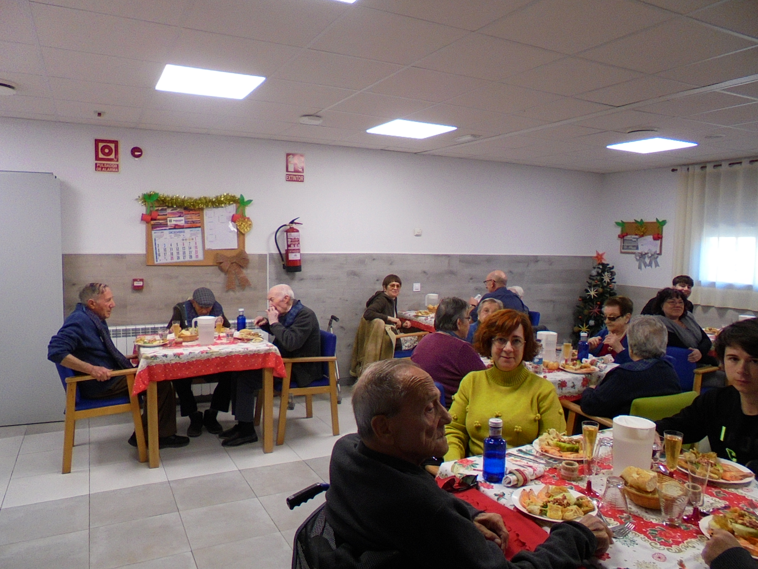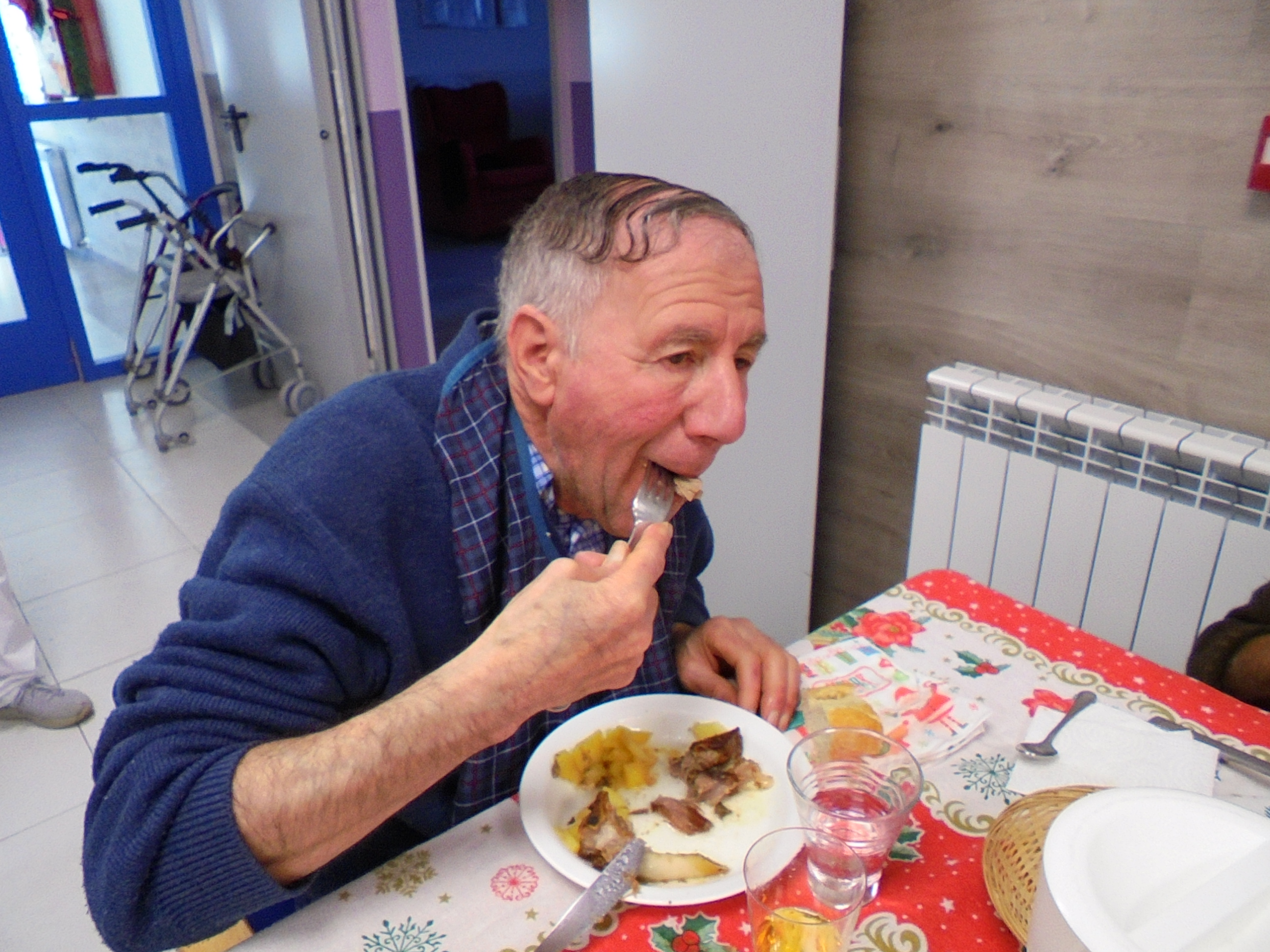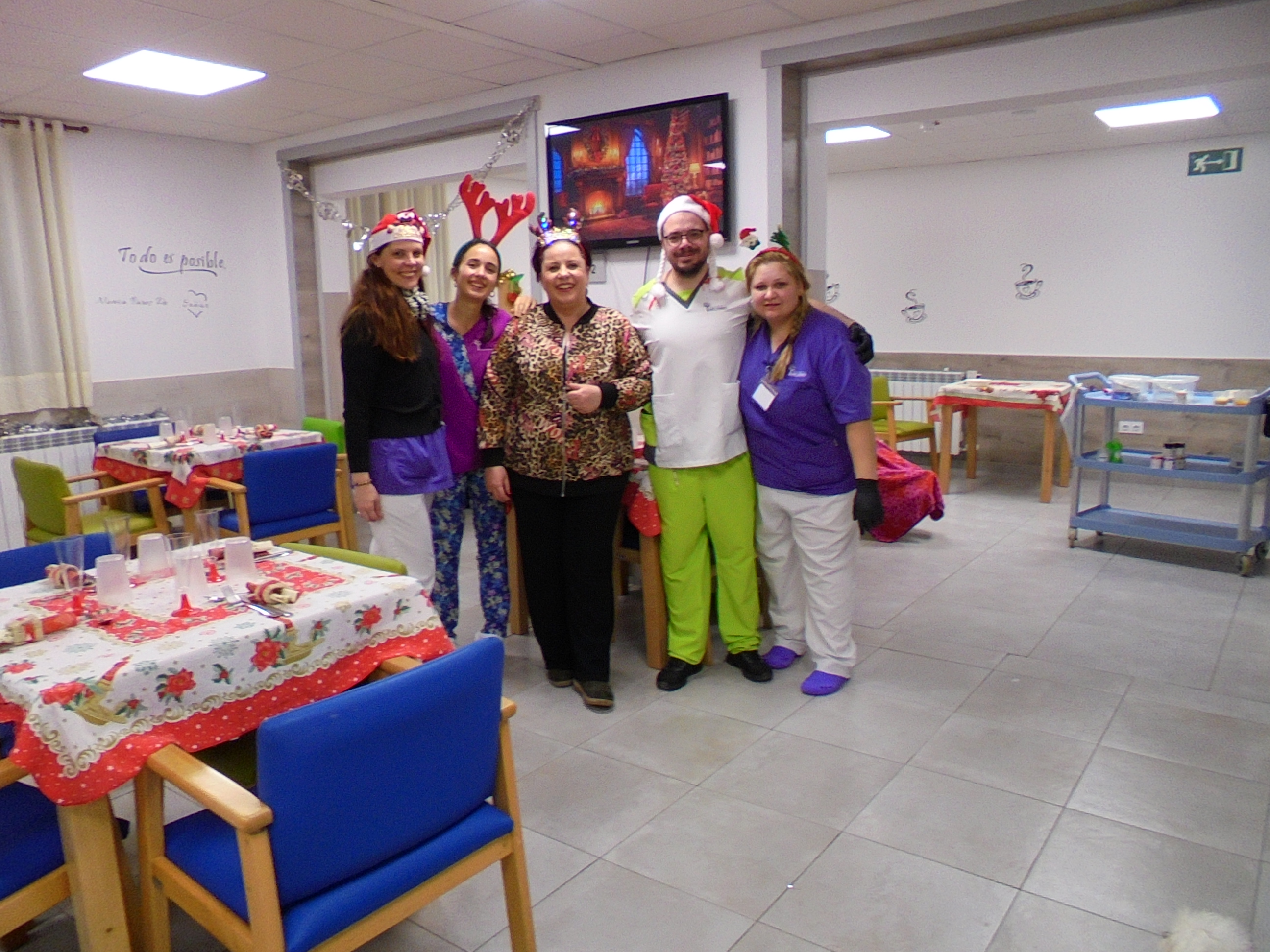Todos emocionados con la misa de Navidad que nuestro cura Federico nos ofreció en estos días, pudieron besar al Niño Jesús y pasar una mañana muy agradable. Muchas gracias Federico por tu disponibilidad!!! Hemos tenido para la cena de Nochebuena: cóctel de langostinos, merluza en salsa verde, macedonia de frutas al ron y turrones y sidra. Para Navidad:  canapés variados y langostinos, ternasco asado con patatas panaderas, tiramisú, turrones y sidra. Los menús los hablamos con ellos antes de elegirlos y lo que más les apetecía era el ternasco como buenos maños!!!