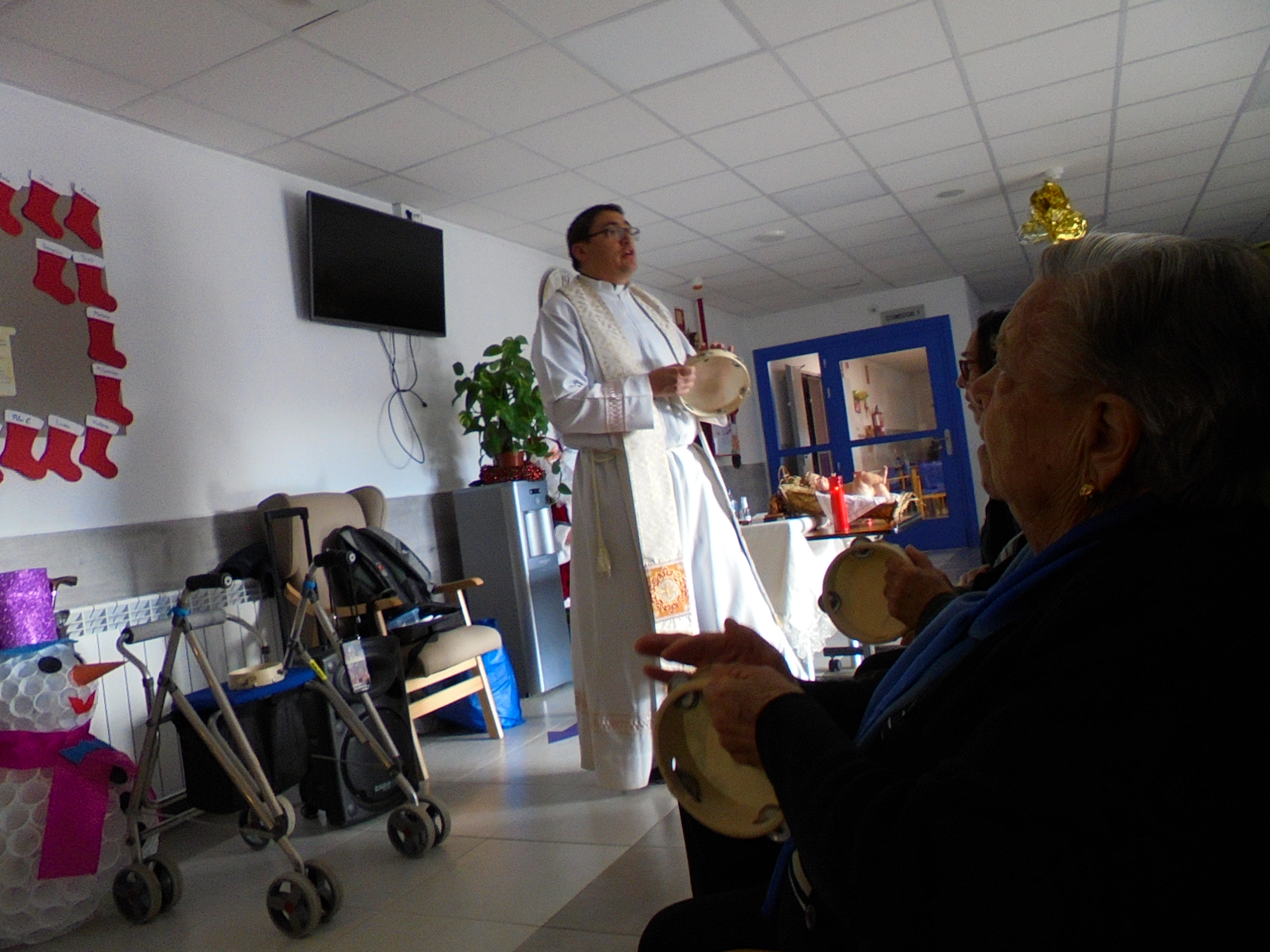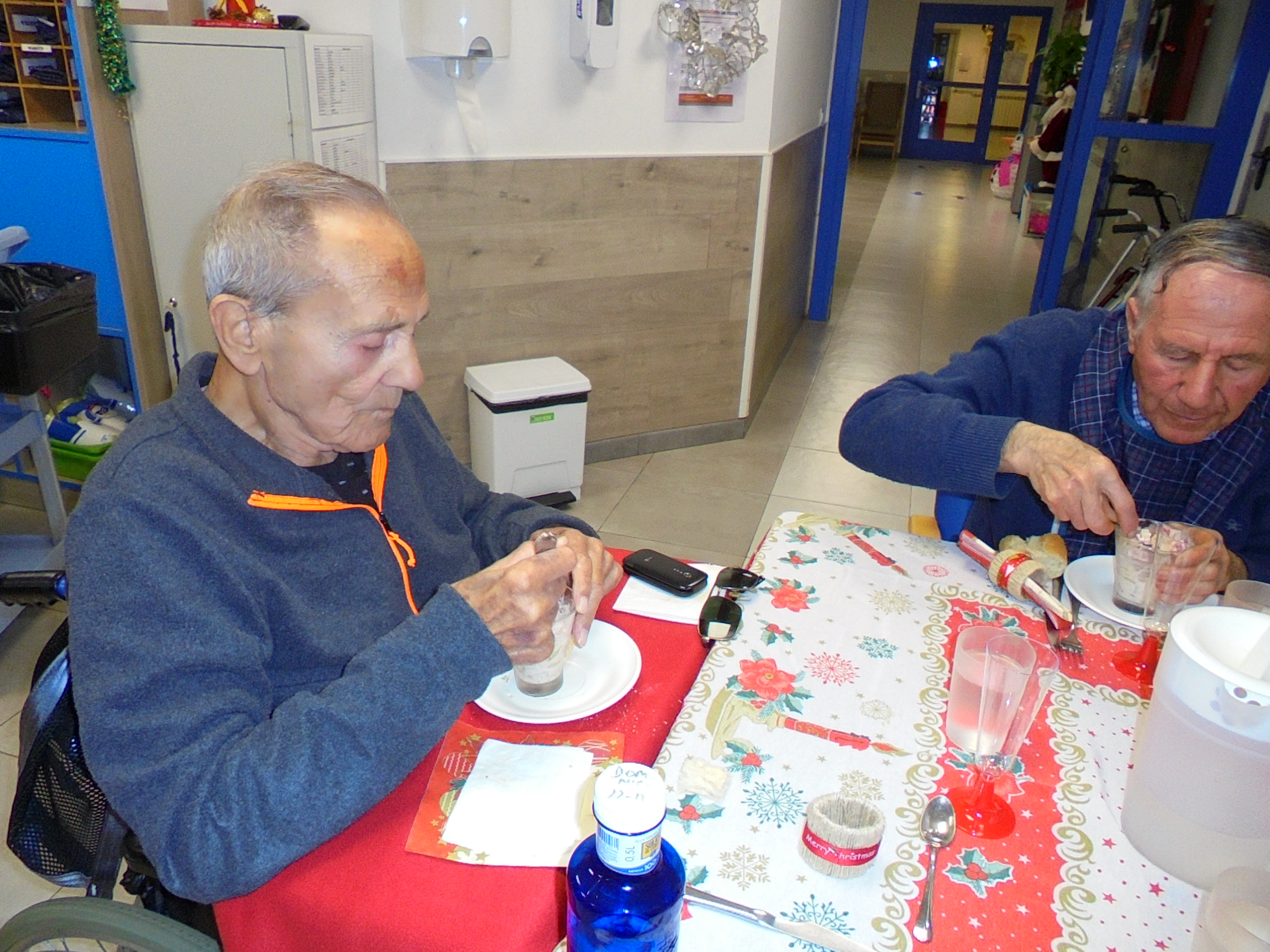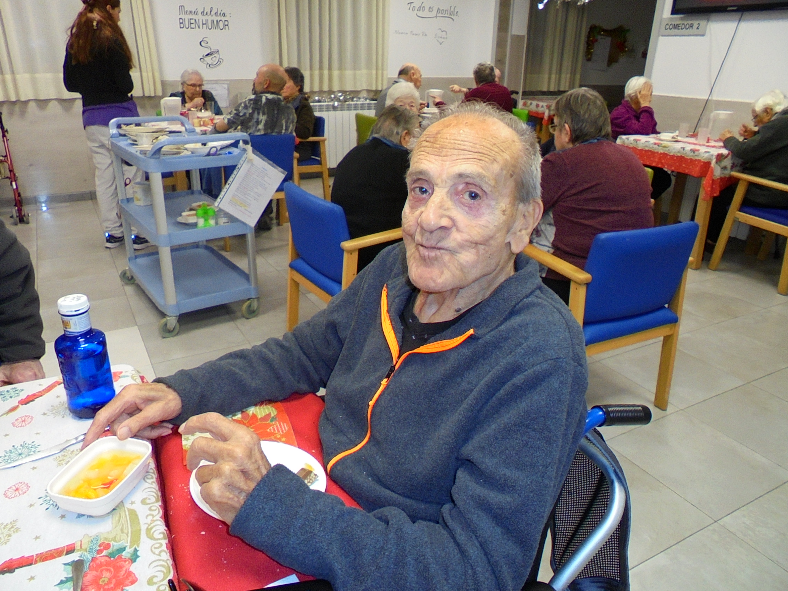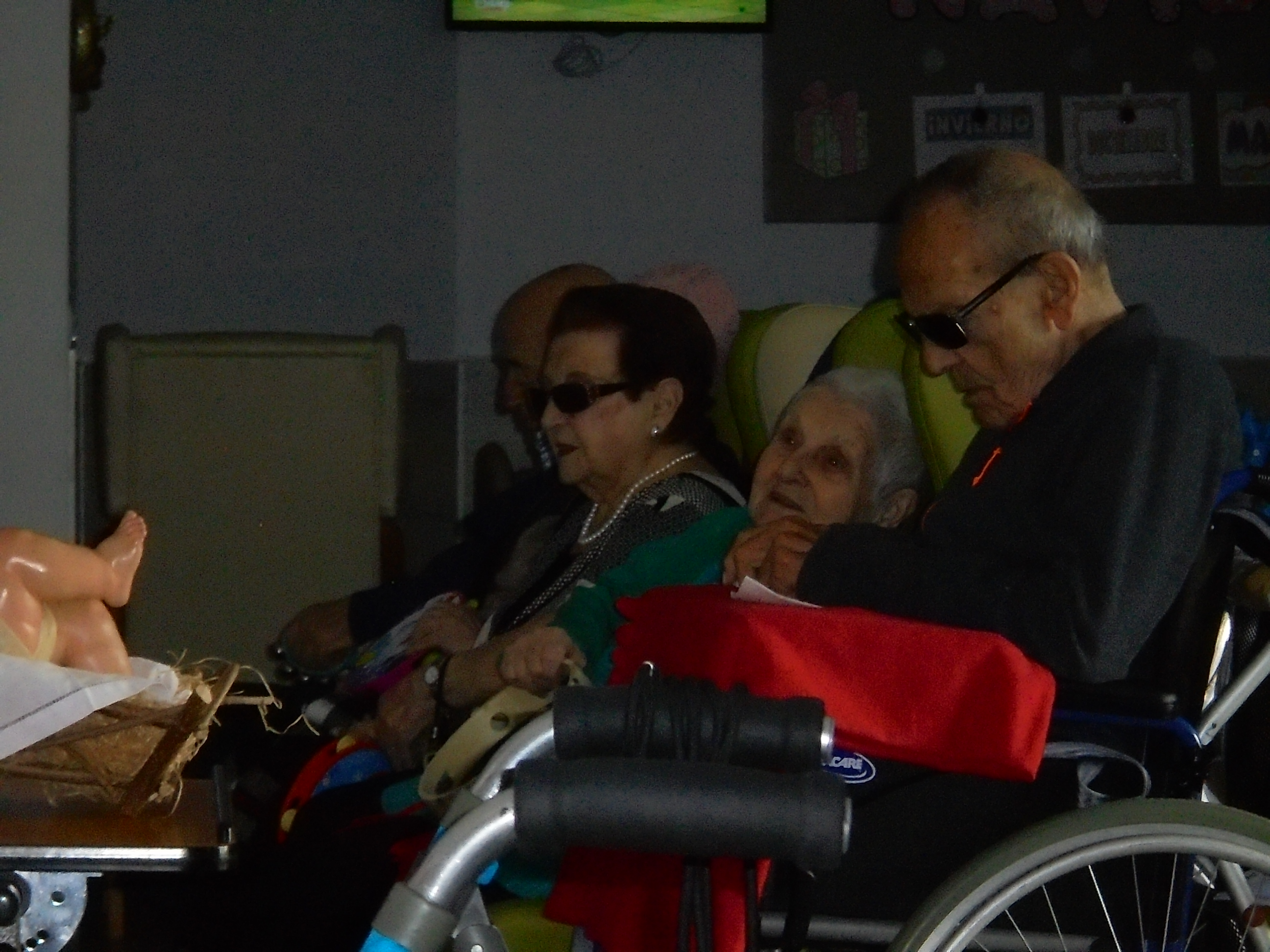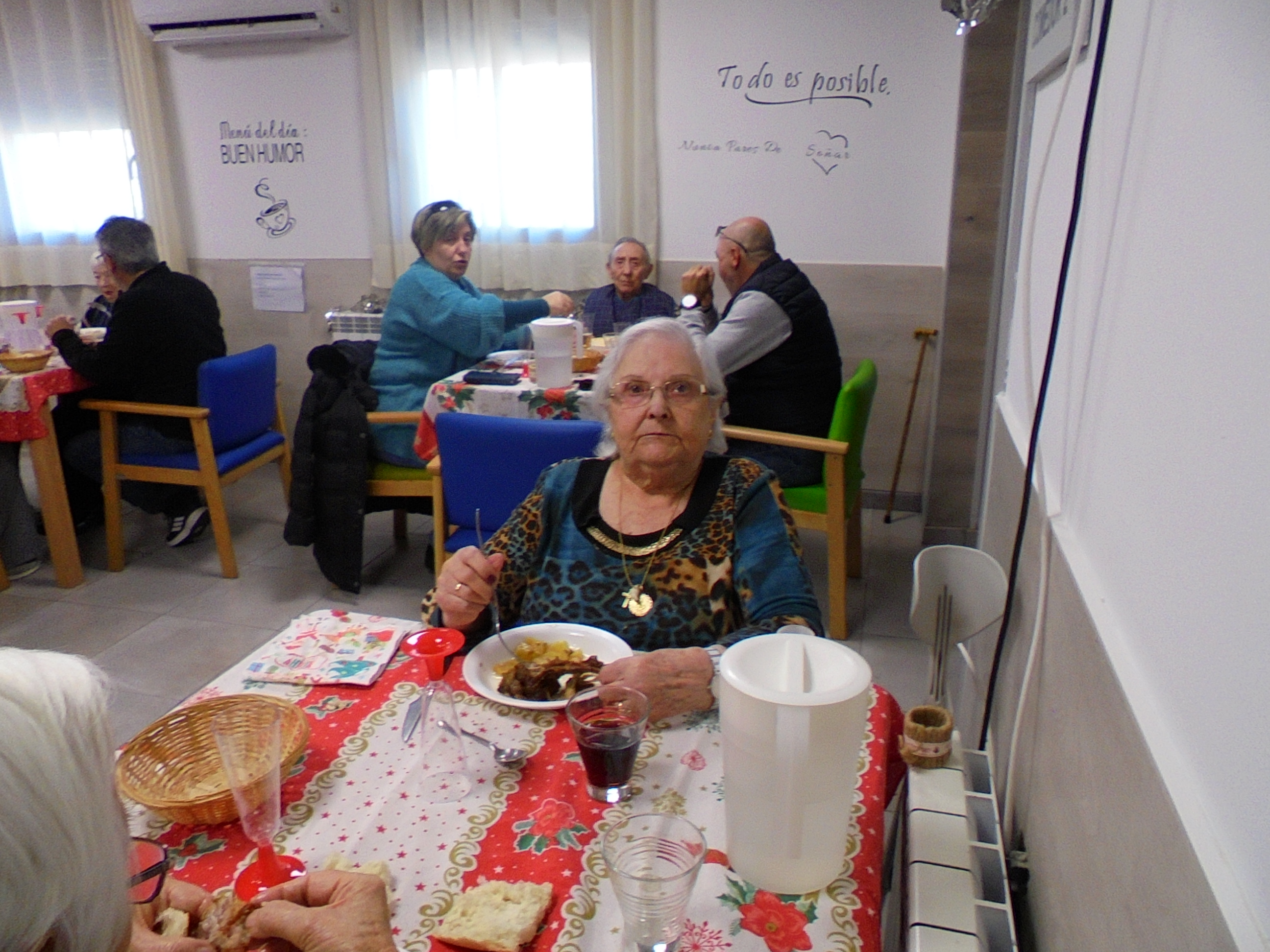 Todos emocionados con la misa de Navidad que nuestro cura Federico nos ofreció en estos días, pudieron besar al Niño Jesús y pasar una mañana muy agradable. Muchas gracias Federico por tu disponibilidad!!! Hemos tenido para la cena de Nochebuena: cóctel de langostinos, merluza en salsa verde, macedonia de frutas al ron y turrones y sidra. Para Navidad:  canapés variados y langostinos, ternasco asado con patatas panaderas, tiramisú, turrones y sidra. Los menús los hablamos con ellos antes de elegirlos y lo que más les apetecía era el ternasco como buenos maños!!!