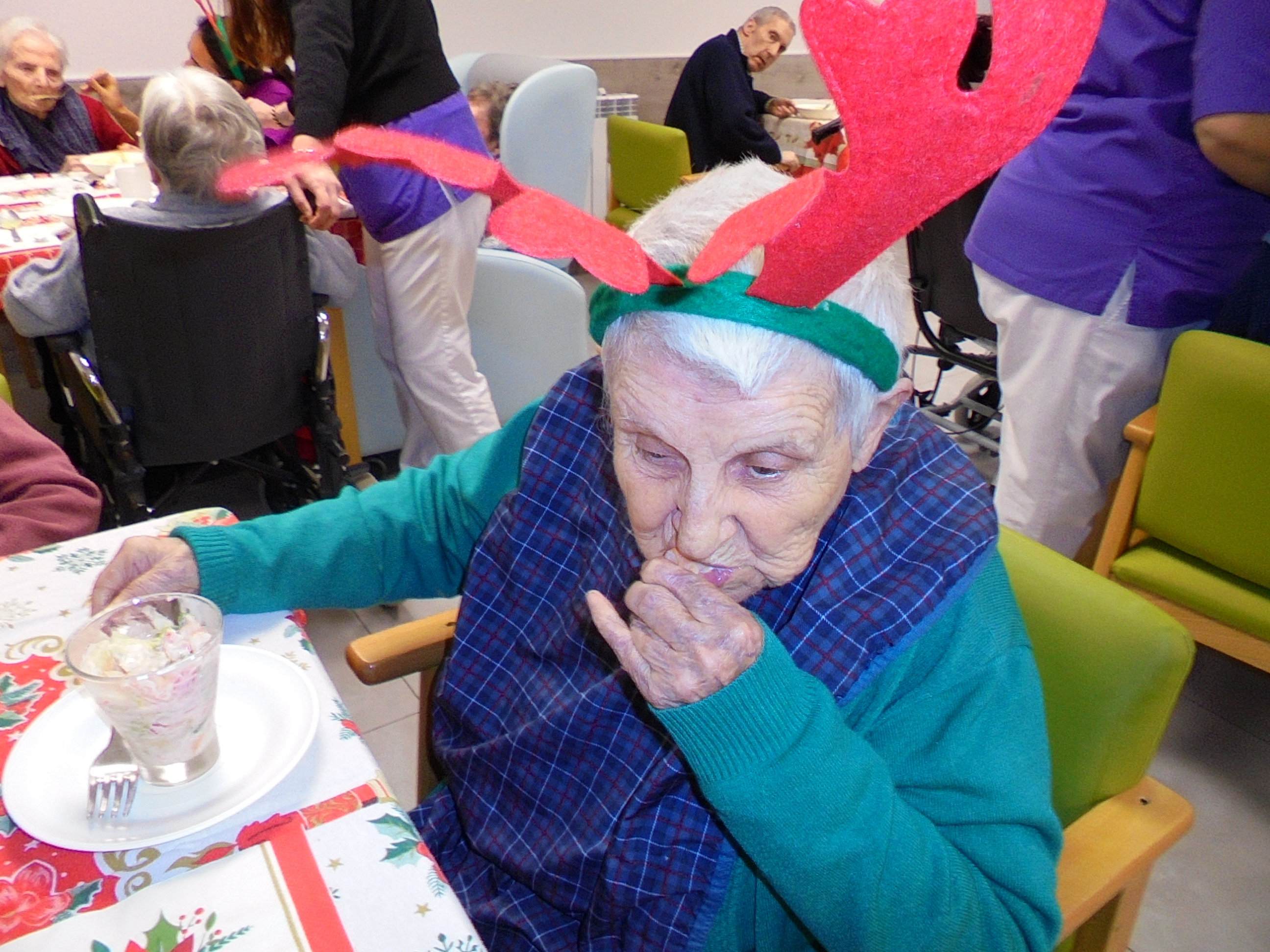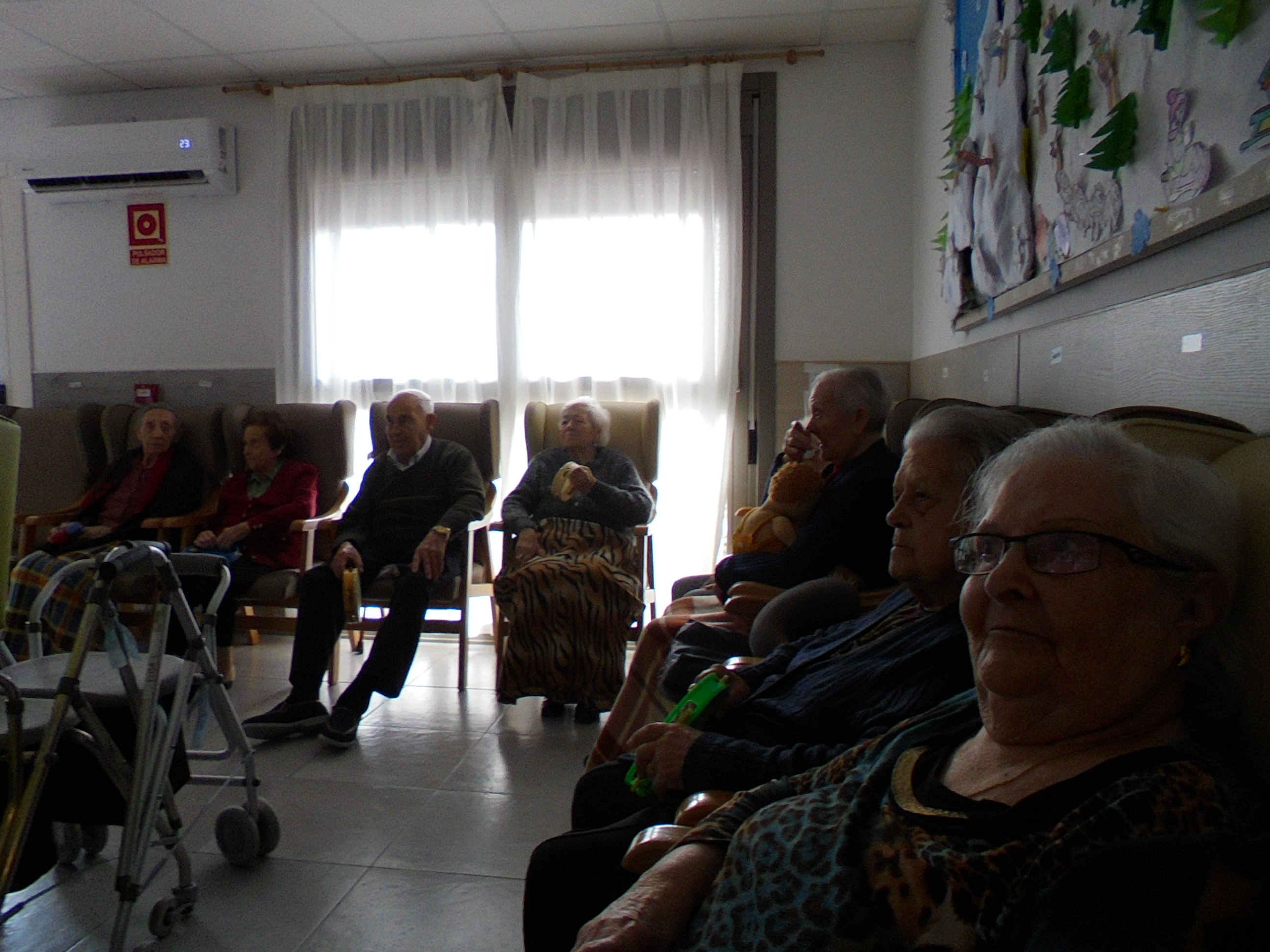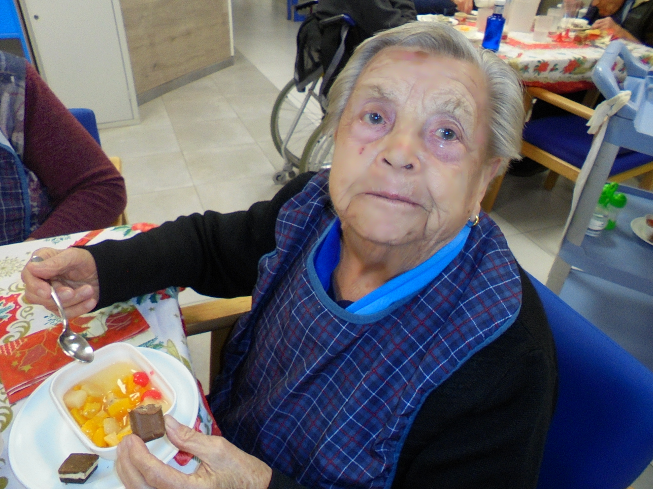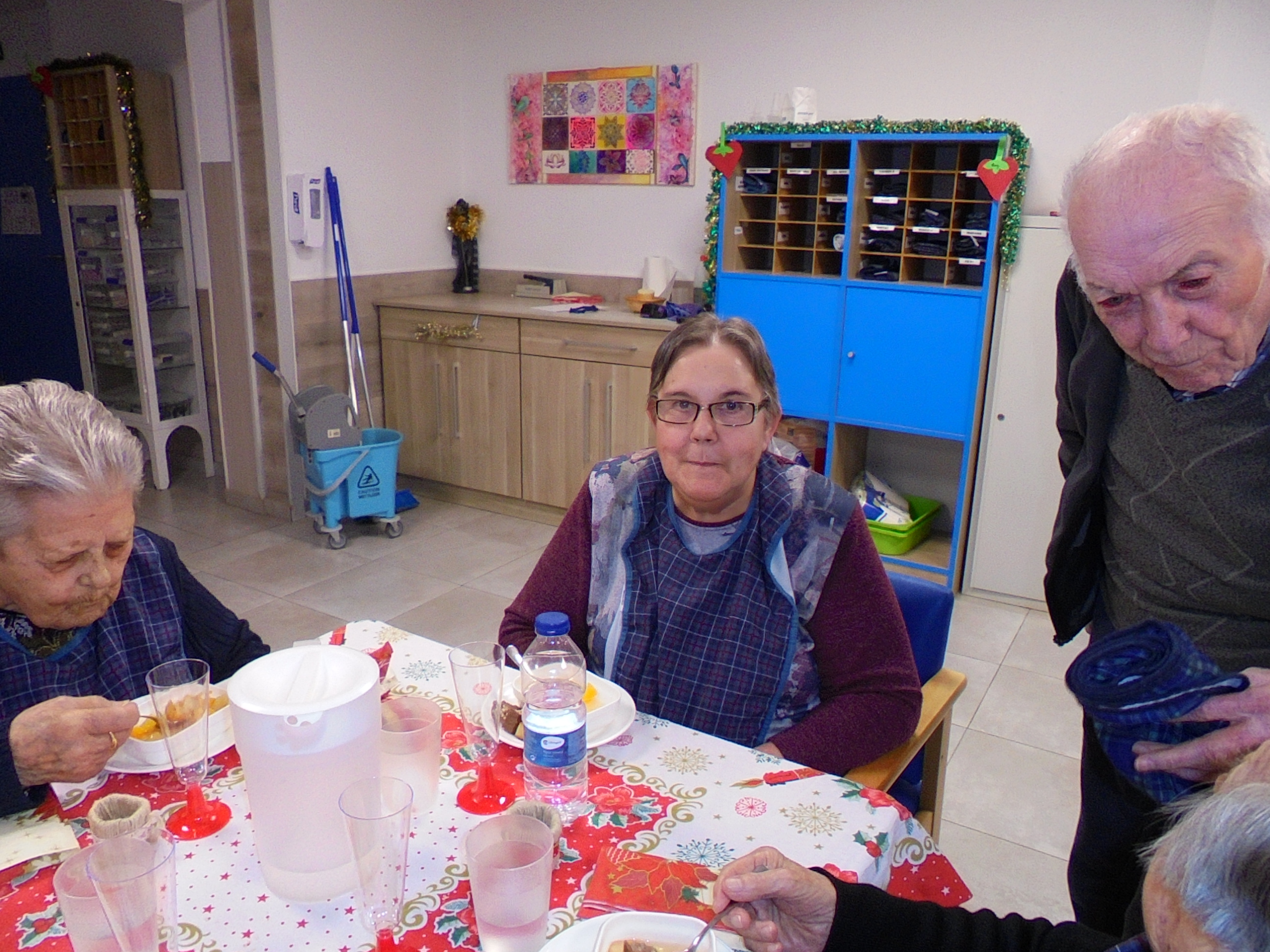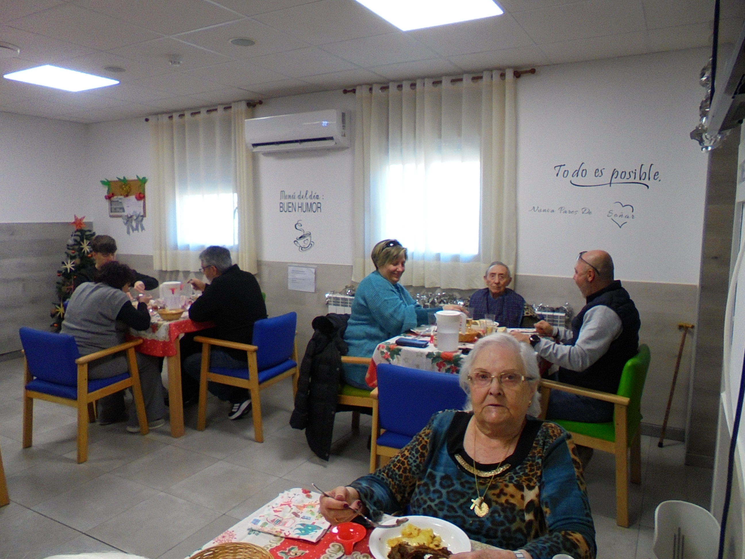 Todos emocionados con la misa de Navidad que nuestro cura Federico nos ofreció en estos días, pudieron besar al Niño Jesús y pasar una mañana muy agradable. Muchas gracias Federico por tu disponibilidad!!! Hemos tenido para la cena de Nochebuena: cóctel de langostinos, merluza en salsa verde, macedonia de frutas al ron y turrones y sidra. Para Navidad:  canapés variados y langostinos, ternasco asado con patatas panaderas, tiramisú, turrones y sidra. Los menús los hablamos con ellos antes de elegirlos y lo que más les apetecía era el ternasco como buenos maños!!!