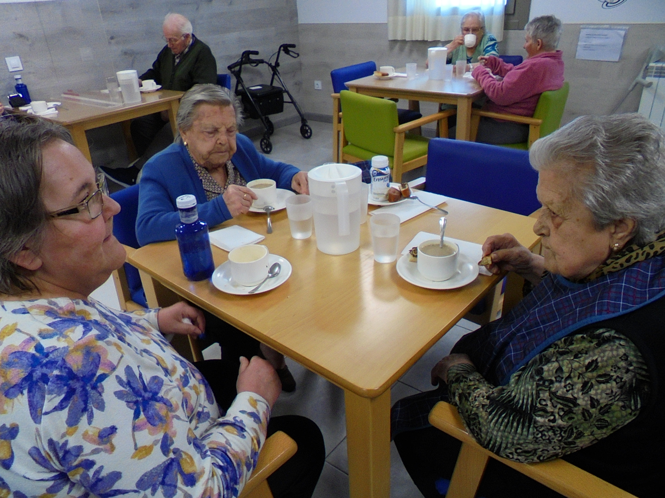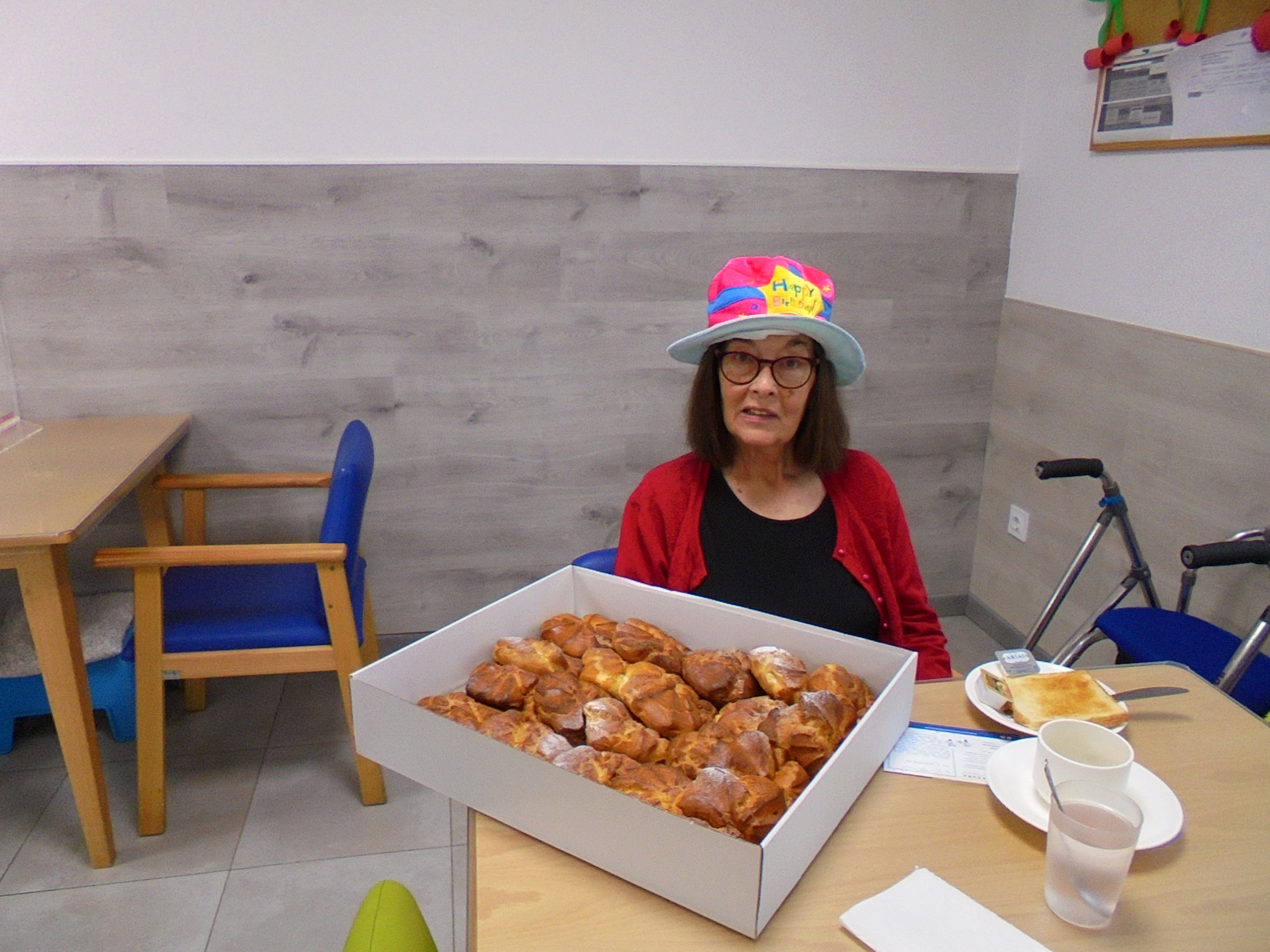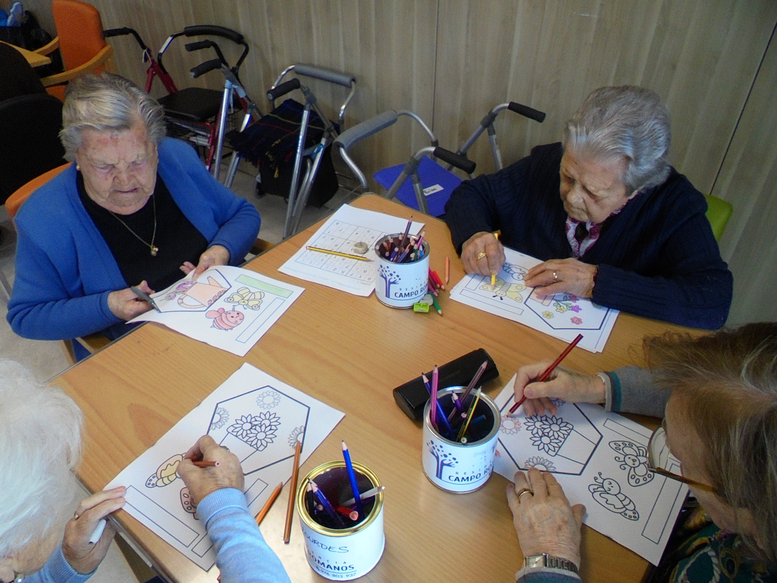 Les encanta hacer los murales de los cambios de estación y participar para cambiarlos, primavera y verano quedó fenomenal!! Han cumplido años Carmen que trajo unos pasteles de Manuel Segura e Isidro invitó a bizcocho con chocolate de la panadería Pascual.