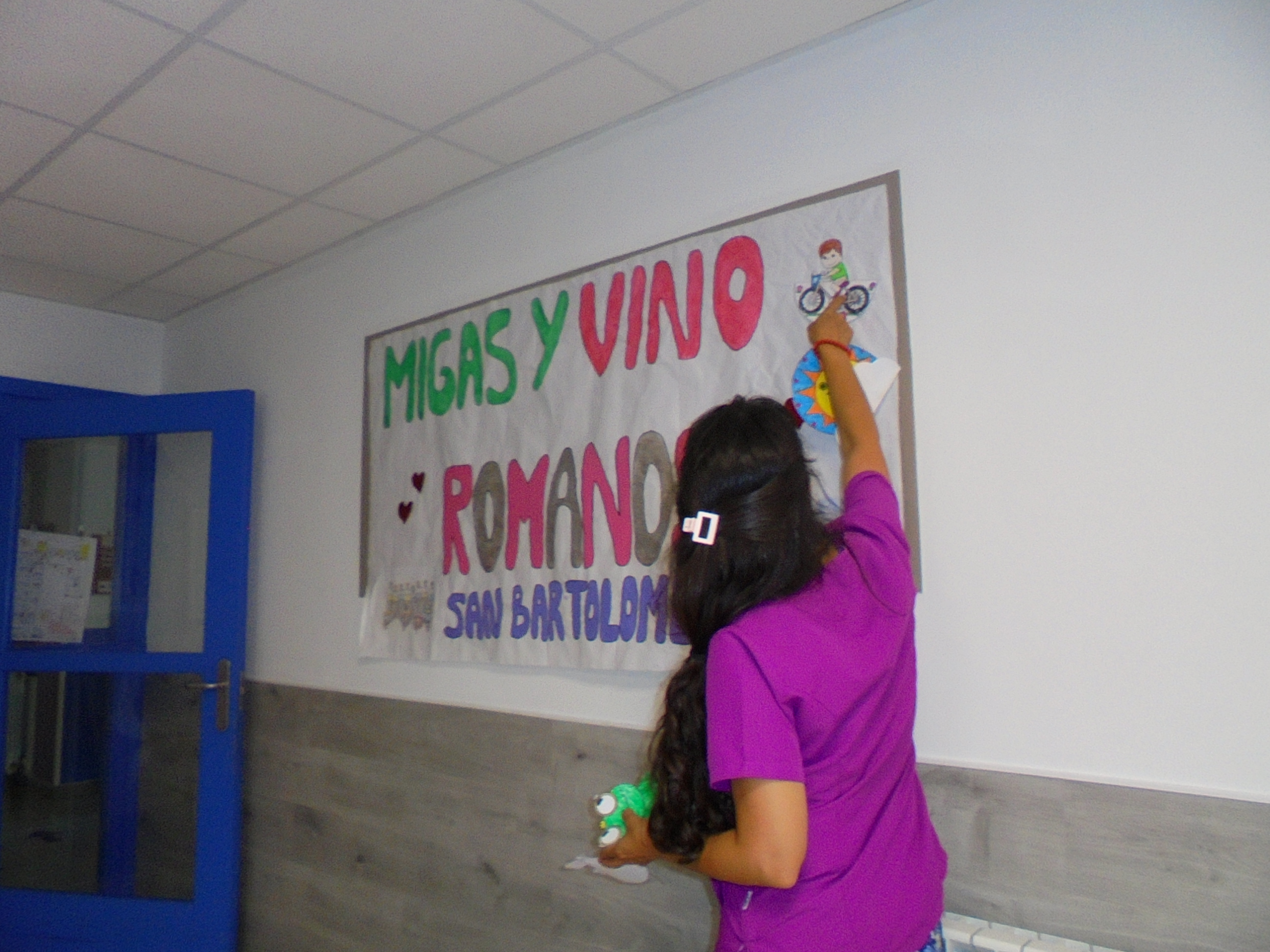 Se nos había olvidado enseñaros el cartel que preparamos para la Migas de Romanos y son nuestras fiestas!! También compartimos una comida con vosotros como es el ternasco asado, que también haremos para estos Pilares!! . Elena hizo un taller con vasos de plástico que les tuvo muy concentrados para evitar que se cayesen al suelo y también pintaron flores para el cartel.