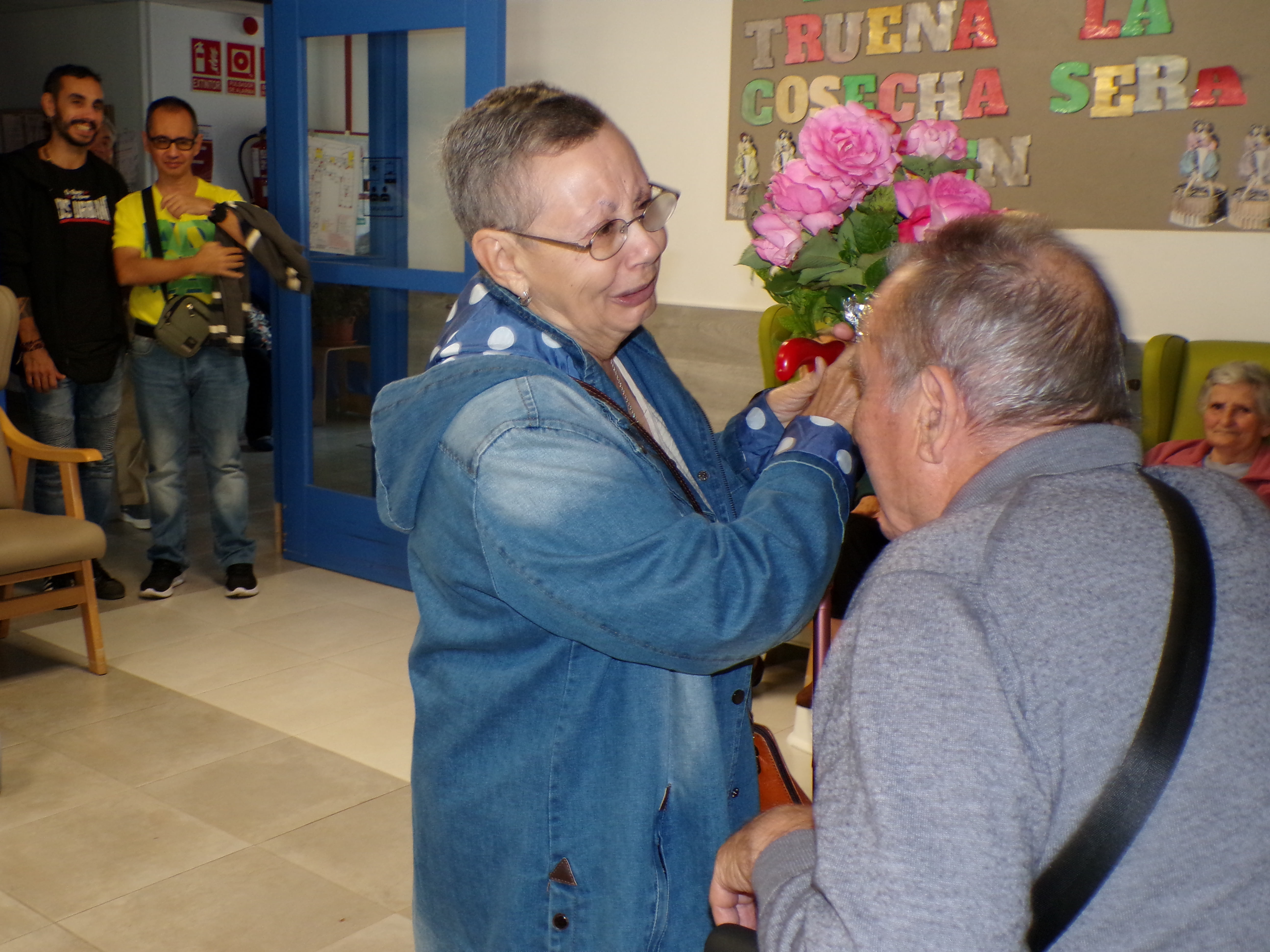 Uno de nuestros residentes, Juan, como meta a conseguir en un futuro nos propuso que quería montarse en una cosechadora John Deere. Y este verano hablamos con dos agricultores de la zona y lo conseguimos!!!!!!!! la comunidad se ha involucrado con la residencia para ello y la experiencia ha sido enriquecedora para todos. También vamos a compartir con vosotros el reencuentro de un matrimonio en la residencia y le hicimos una fiesta sorpresa a Dorita cuando volvió a ver a Eugenio, pues no pudieron ocupar plaza a la vez.... es especial ya que es difícil que lleguen juntos a envejecer en los centros sociosanitarios, normalmente llegan viudos y es gratificante verles.