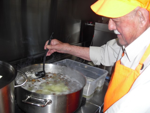 Este domingo he estado de pinche de cocina de Luis, el nuevo residente, que le encanta la cocina y nos ha hecho un rancho de caracoles con conejo de monte exquisito y cardo en ensalada. El sábado estuvo lavando los caracoles y preparándolos, dejamos las patatas peladas en agua, sofrito troceado…todo lo que pudimos dejarnos hecho. Ha sido un placer tenerlo en la cocina codo a codo conmigo…y todos hemos disfrutado de una experiencia muy agradable pues siempre se aprenden cosas.
