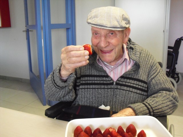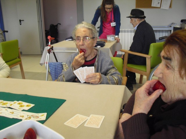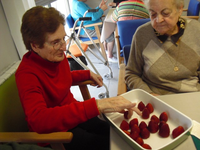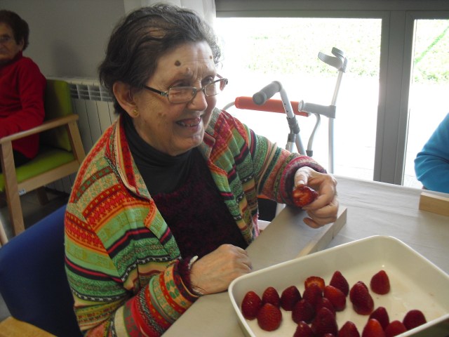 Un dia tan especial como el Dia de la Madre se merece un postre para celebrarlo: tarta de manzana y fresas buenísimas de la Frutería de Daroca. Las madres son la mejores cuidadoras porque cuidan sin esperar nada a cambio…..para todas aquellas personas que han cuidado a alguien por amor, para ellas son las fresas. Todos sabemos lo que supone saborear una fresa bien roja en la boca y ese momento quise que lo disfrutaran todos los abueletes…