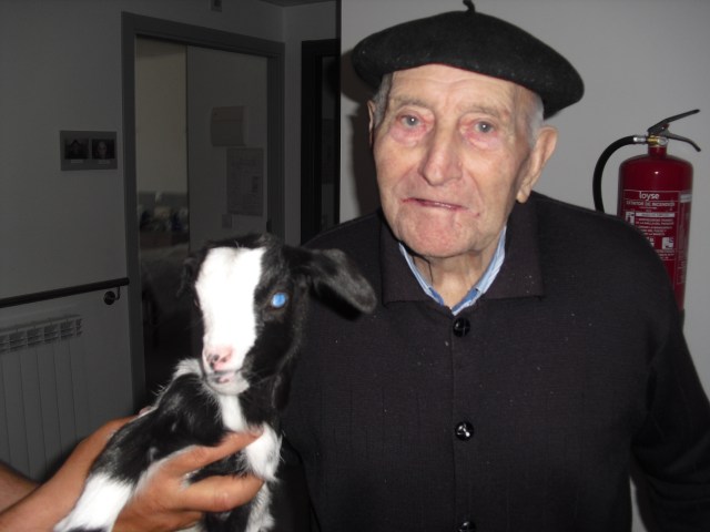 Lucy, la cabrica, ha tenido una cabrica blanca y negra preciosa  y la hemos llamado Esther. La hemos puesto nombre de persona para que se quede con nosotros siempre…los abuelicos están encantados, todos salieron a conocerla y muchos de ellos la colman a besos, y no es para menos. Sobre todo uno de ellos, Santiago, pues cuando voy a besarla yo huele a su colonia y así se que va él antes que yo. También han venido los esquiladores a esquilar ovejas al pueblo y algún abuelico se ha escapado a verlo. Y nuestro huerto empieza a cobrar vida!!! gracias a nuestro encargado Victorino, otro abuelico de la residencia.