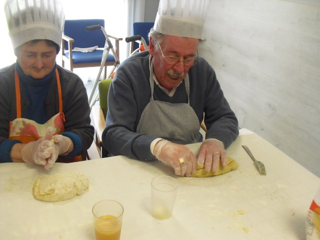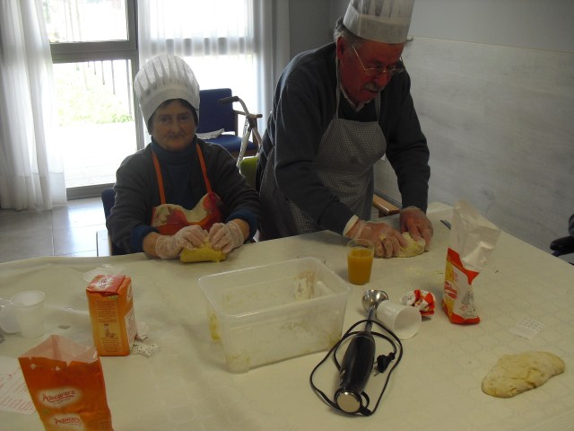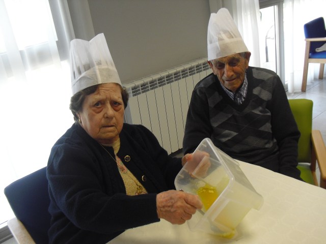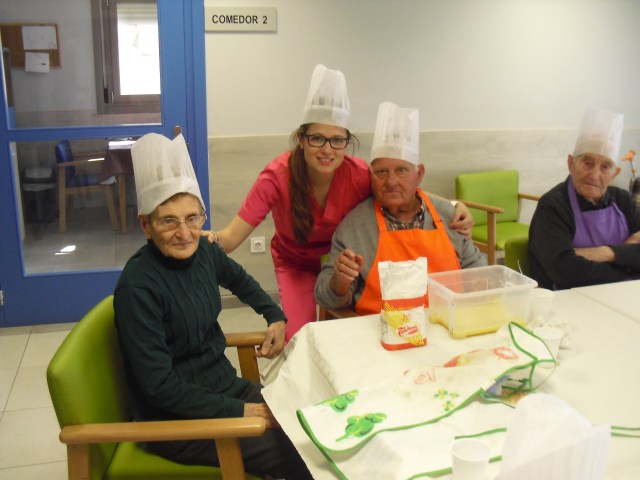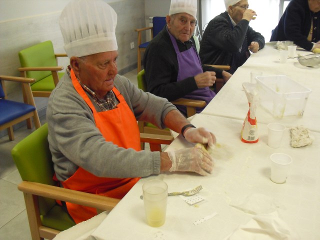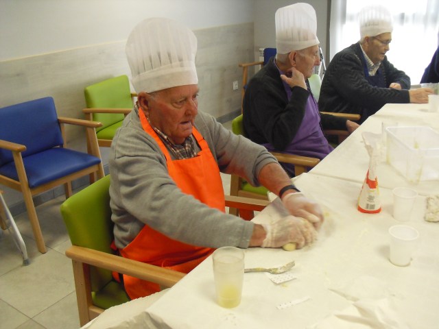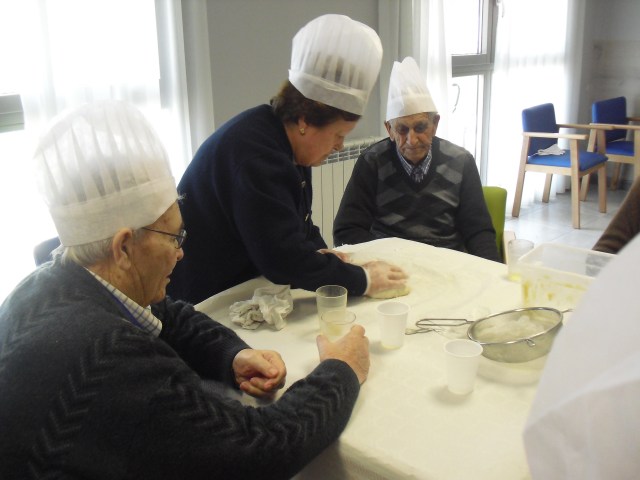 Prepararon el taller de rosquillas Beatriz, la fisioterapéuta y Laura, la terapéuta ocupacional, y colaboró una de nuestras gerocultoras, Iris. Los abuelos disfrutaron un montón mientras hacían las rosquillas pero aún más cuando se las comían!!! en las fotos lo podéis comprobar. Hemos decidido que vamos a hacer más talleres de cocina con ellos para que se sientan útiles y además con recompensa… Todos participaron y los que no lo hicieron estaban ocupados, como Luis, limpiando una gallina!!! Recordamos de nuevo que el 10 de junio viene a la residencia la Rondalla de Balsas de Ebro para amenizar con un festival de jotas a las 17:00 p.m. Los conozco hace muchos años y siempre los he llevado a las residencias donde trabajaba  y siempre les ha encantado a todos los abueletes, incluso los que están con deterioro cognitivo se emocionan. Será una agradable experiencia para todos.